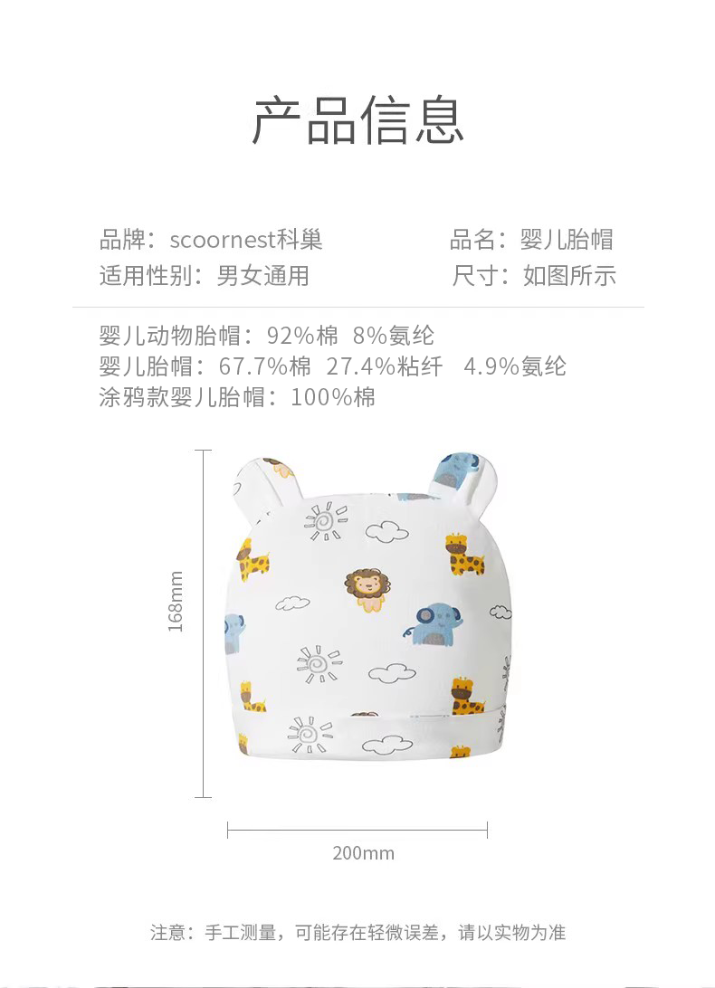 科巢婴儿帽子秋冬新生婴幼儿帽春秋薄款宝宝护卤门帽纯棉胎帽初生冬季