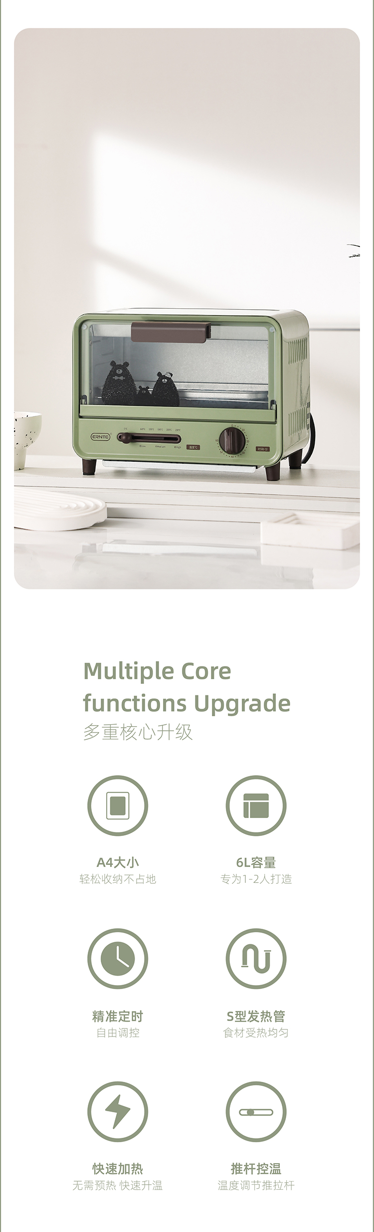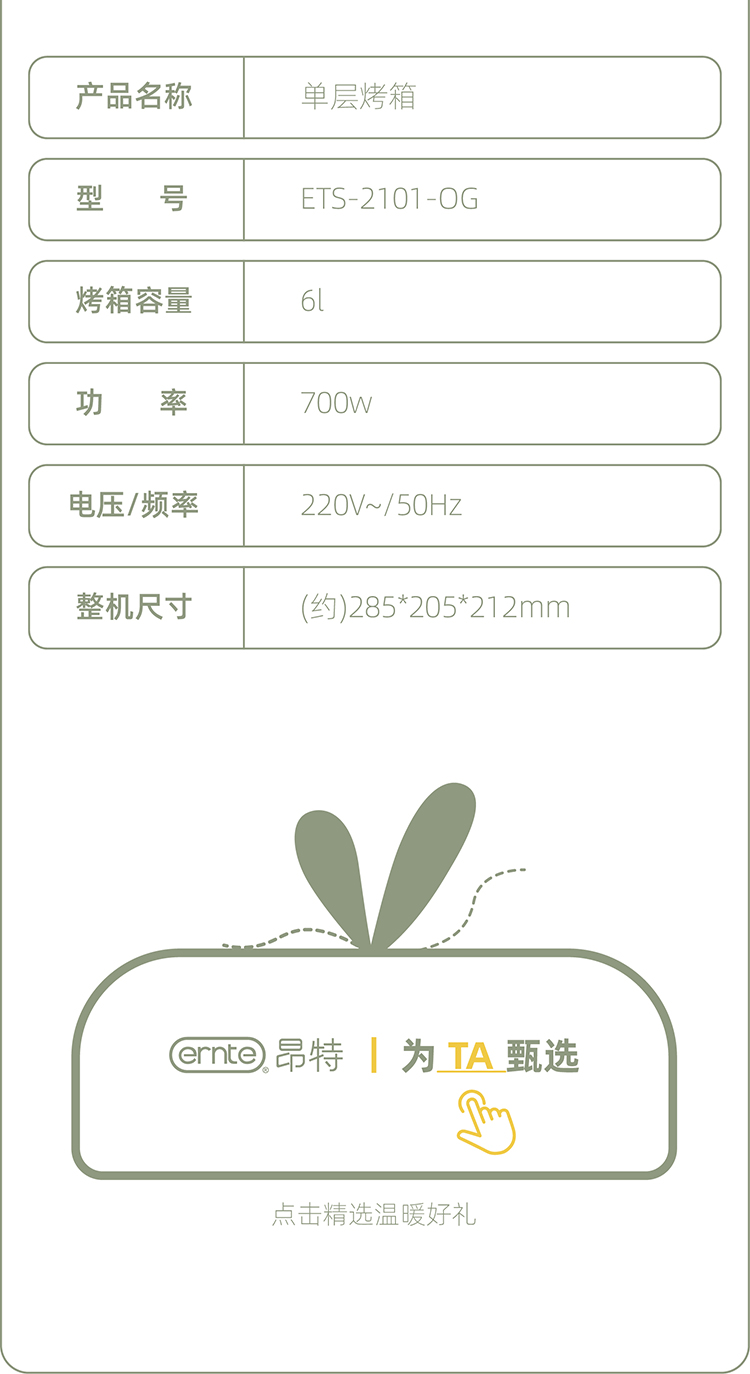 ERNTE昂特电烤箱迷你单层家用小型新款多功能台式家庭宿舍