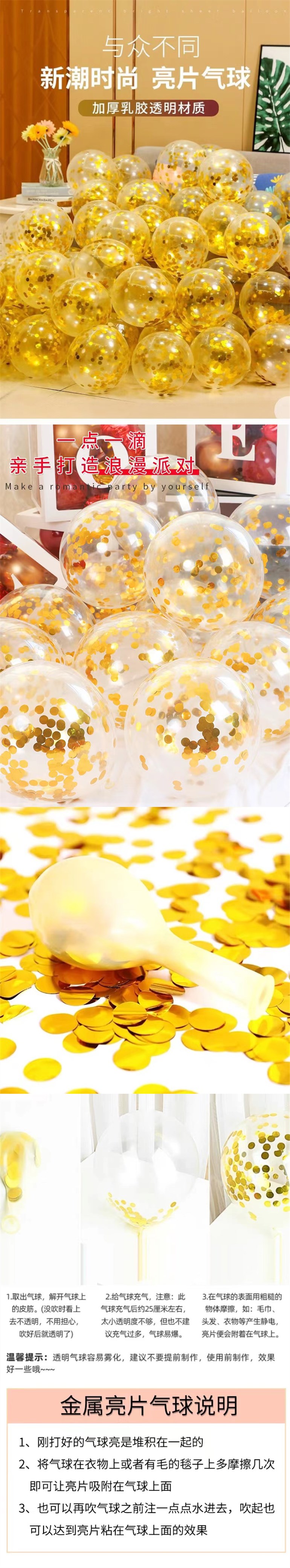 金色透明亮片气球48个/包 网红生日派对婚庆卧室装饰开业活动公司学校商场喜庆气氛布置