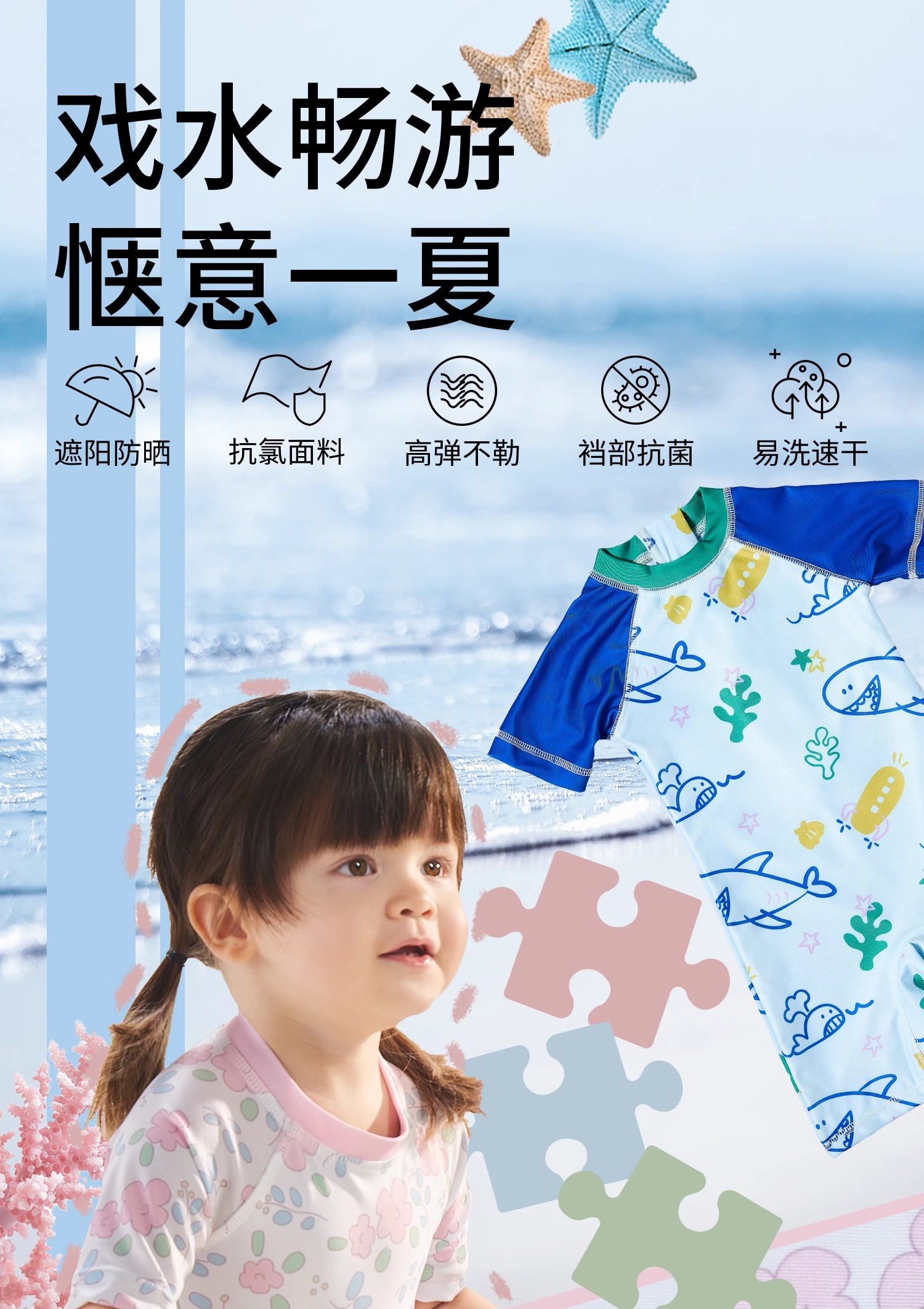 科巢儿童泳衣女孩3岁女童防晒女宝宝泳装A类男童泳衣连体夏2岁6岁洋气