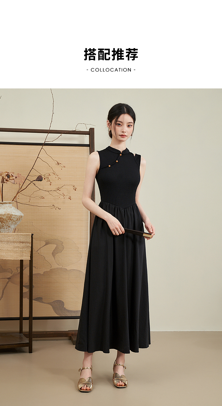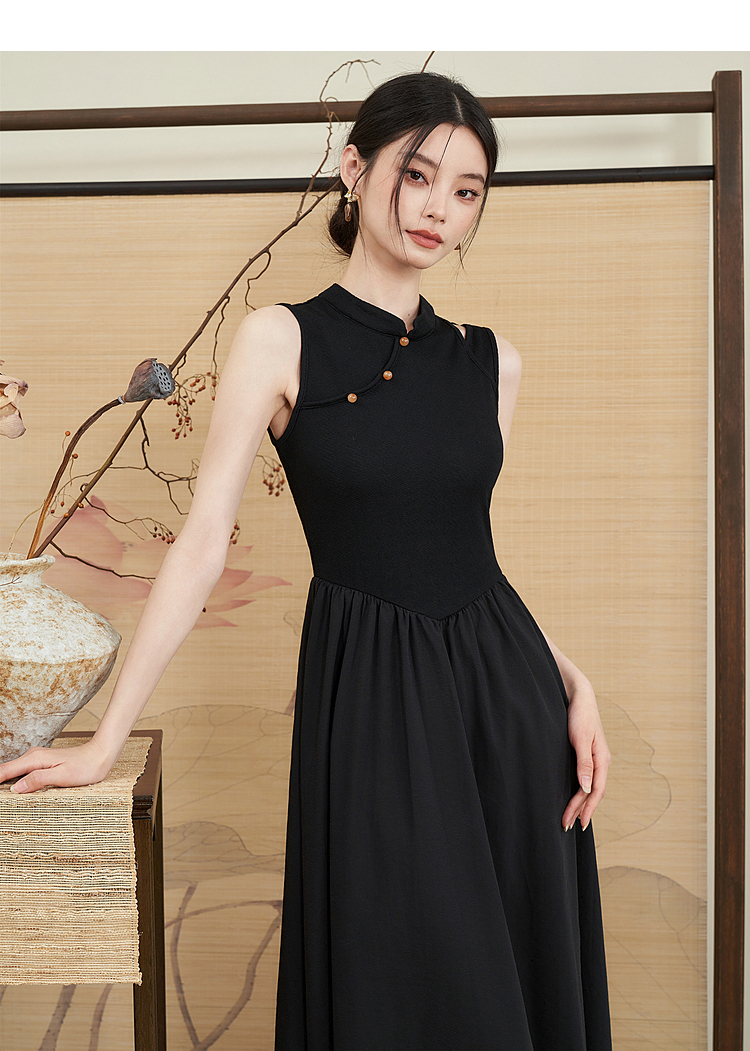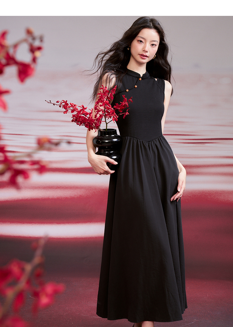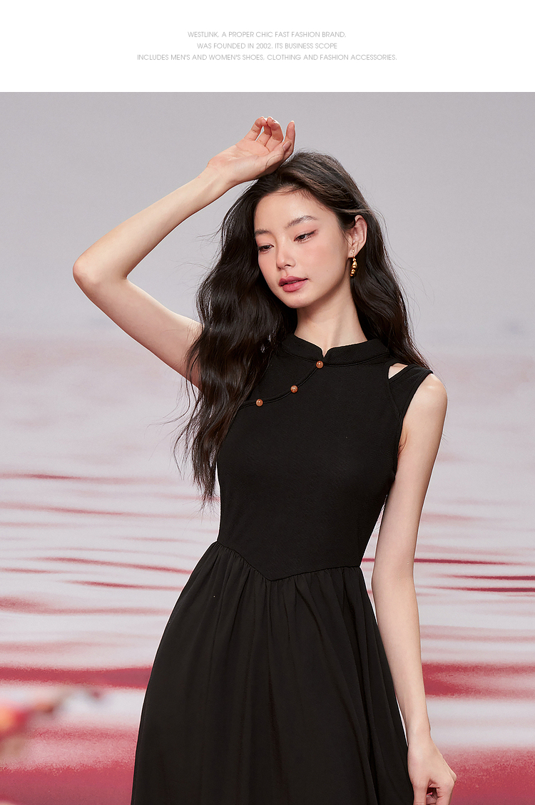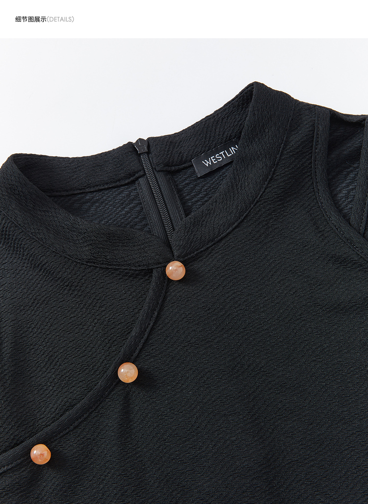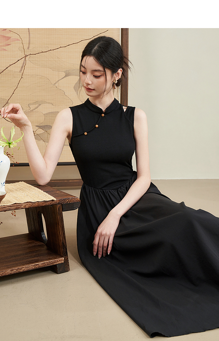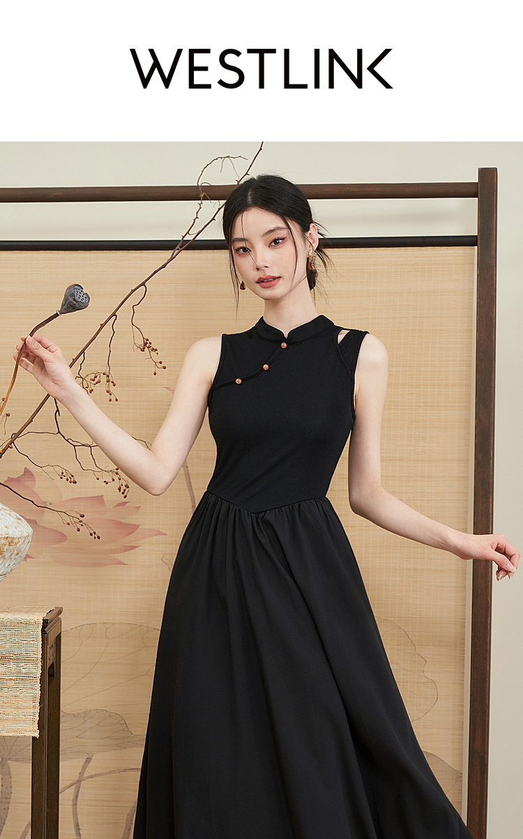 西遇新中式连衣裙女新款黑色镂空拼接国潮改良小黑裙11531698
