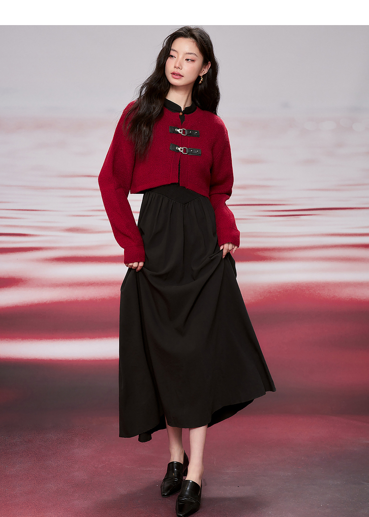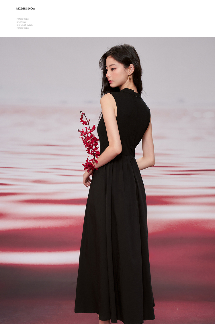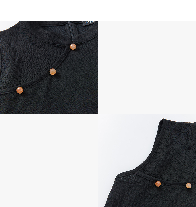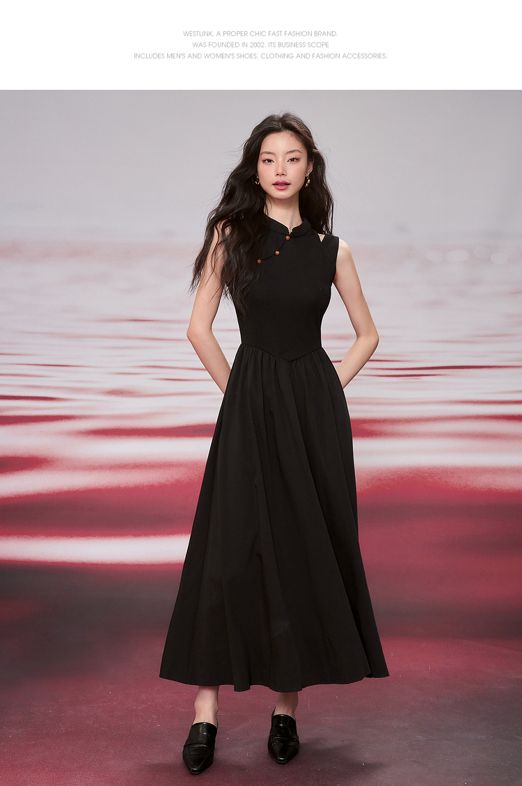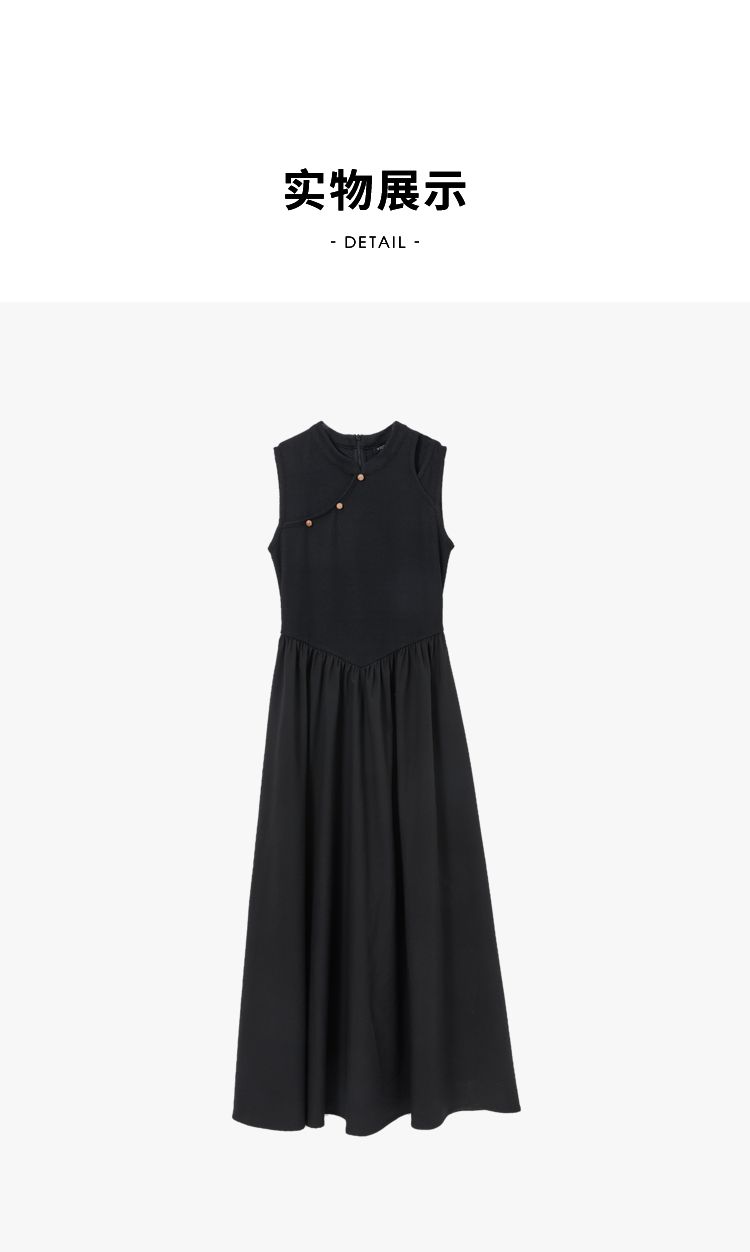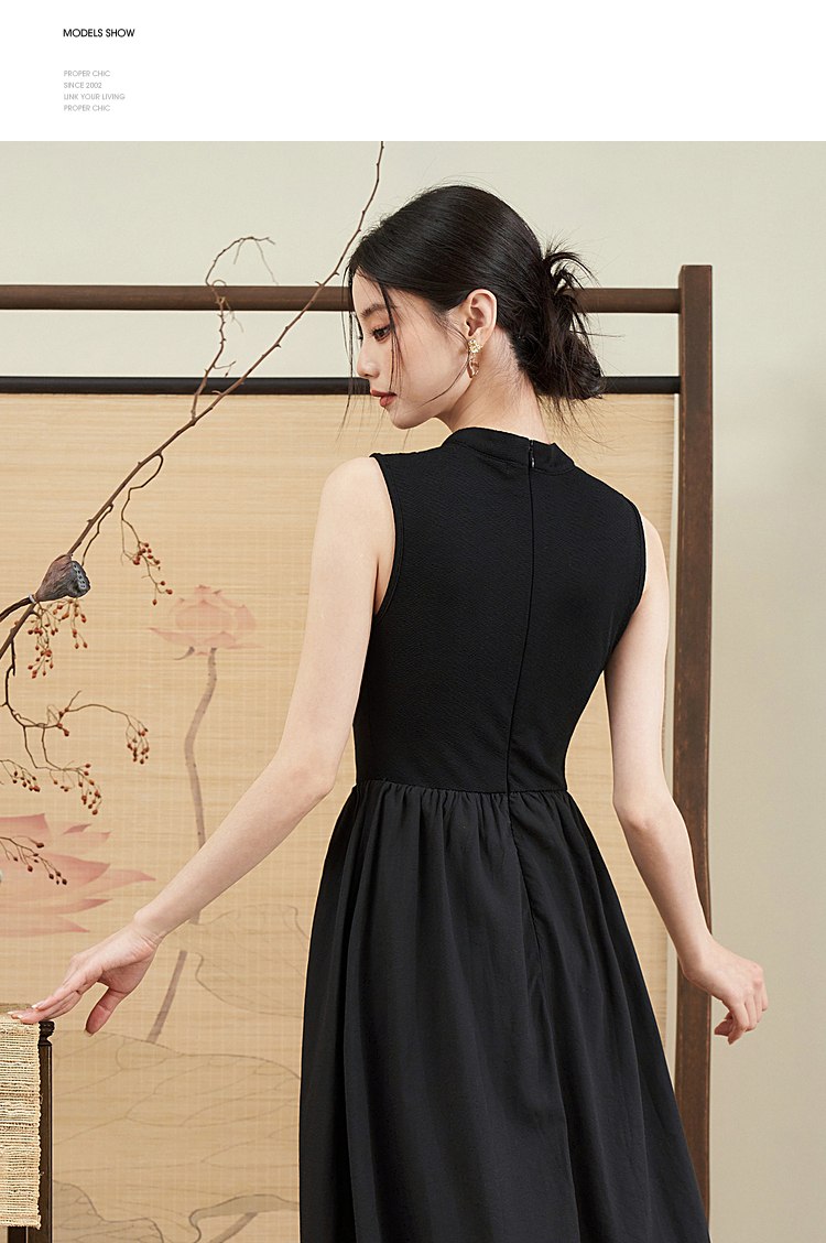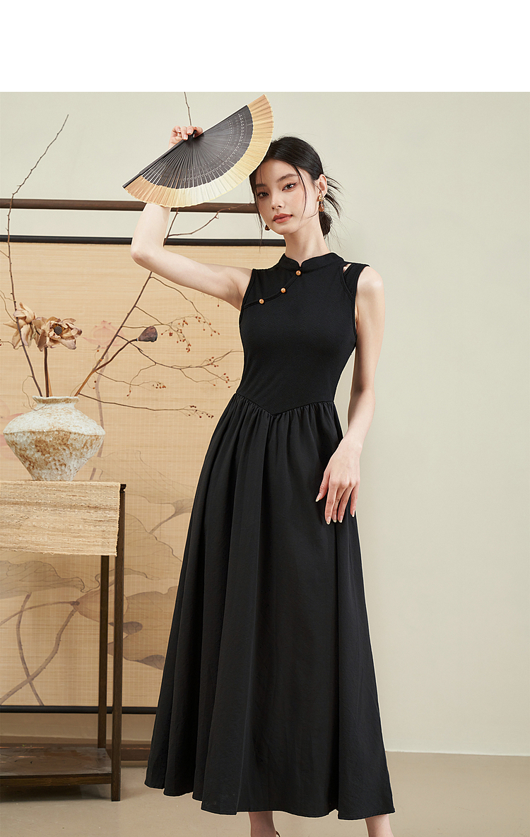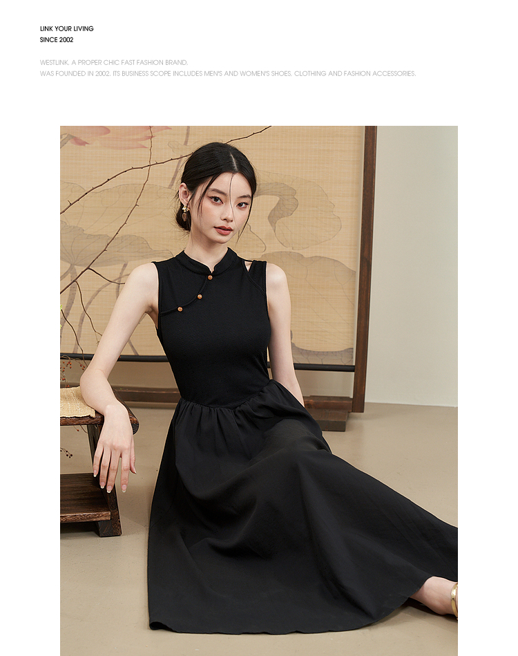 西遇新中式连衣裙女新款黑色镂空拼接国潮改良小黑裙11531698