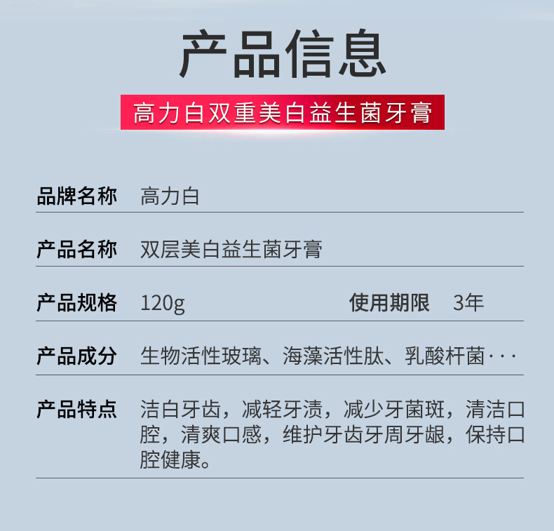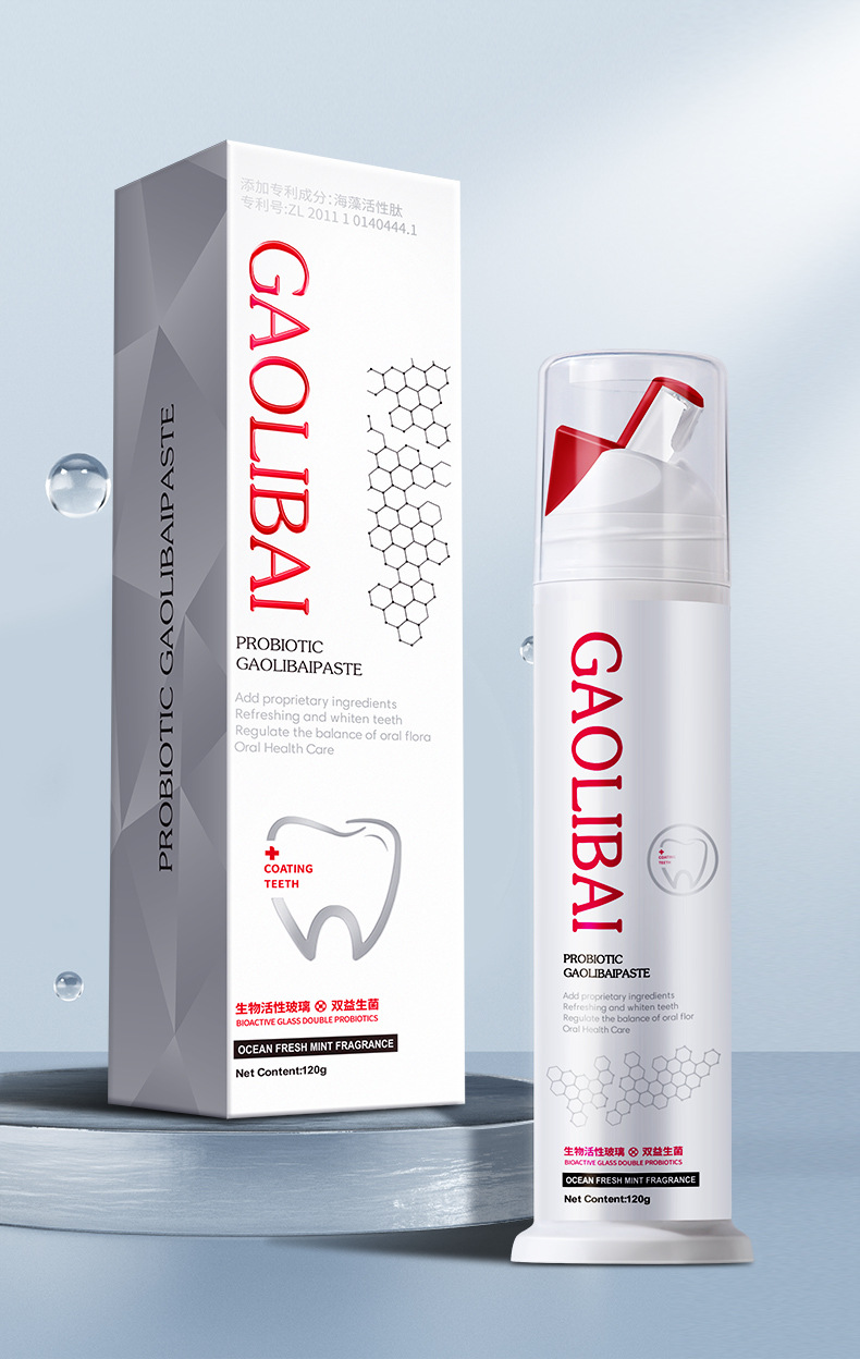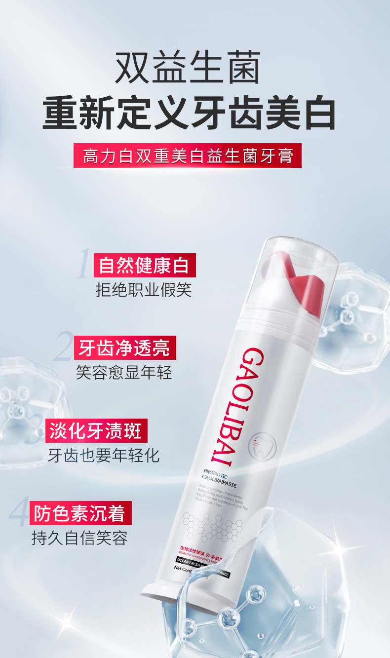 「拍1发2!益生菌美白牙膏」双重美白牙膏去烟渍生物活性玻璃清新口气口腔护理单支120g