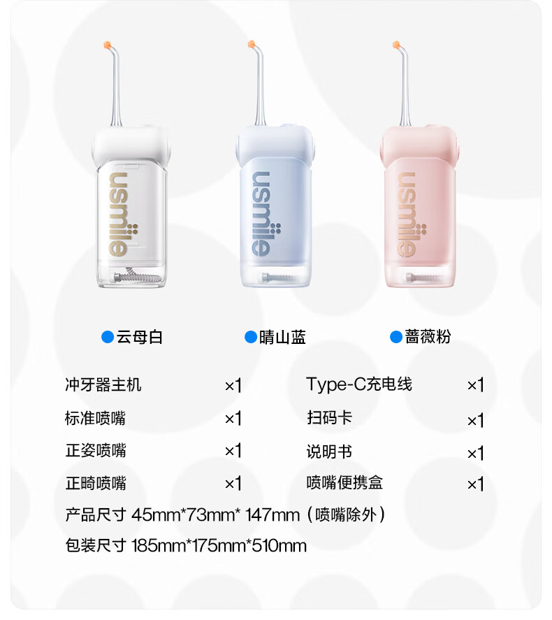 【自营】 usmile笑容加 便携冲牙器 云瀑水流 正姿喷嘴 四档模式 C10S 3色可选