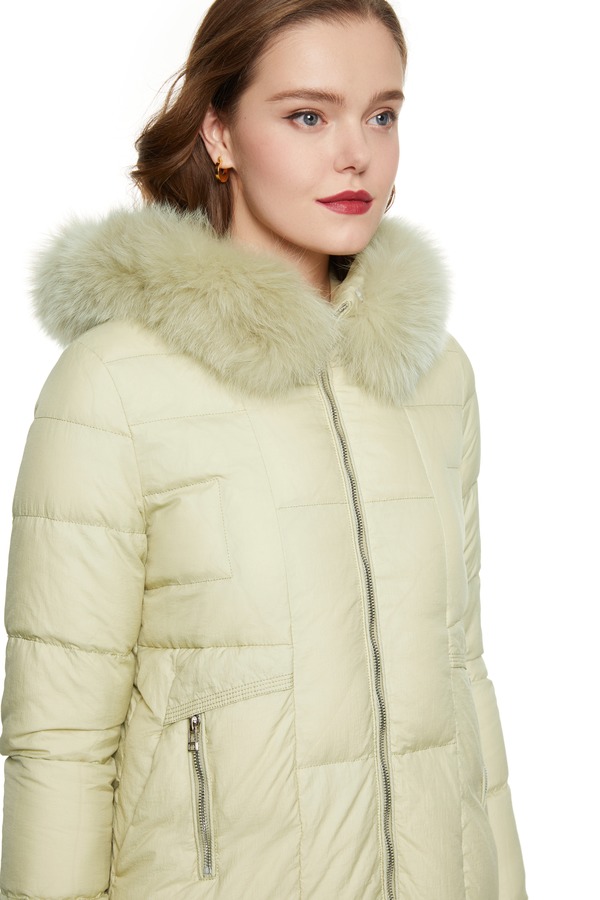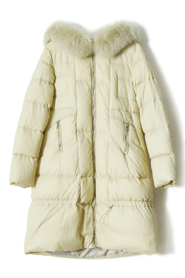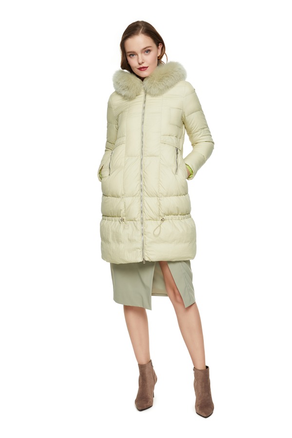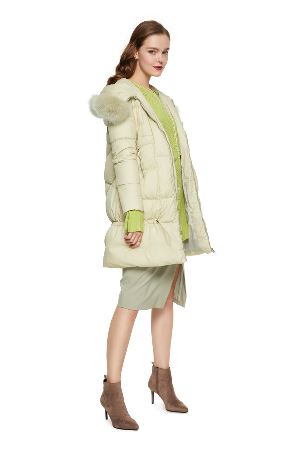 AUGUST 1 EIGHT 黄色抽绳收腰毛领羽绒服 8420
