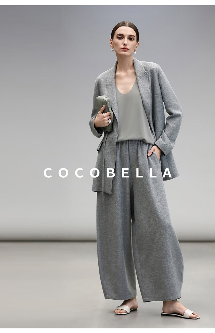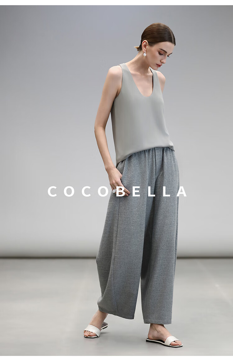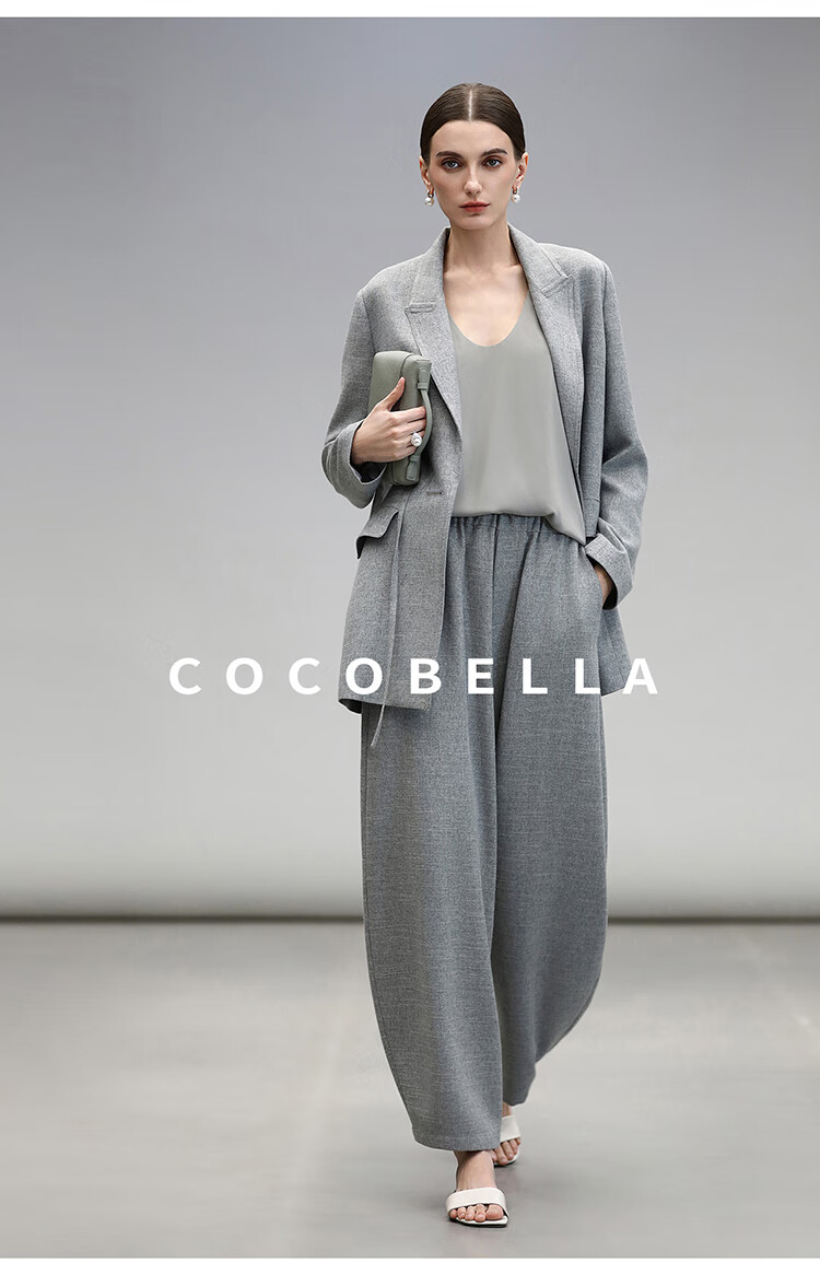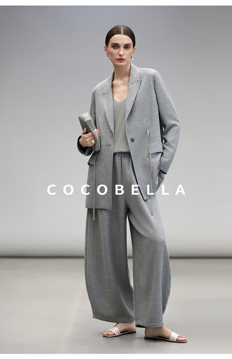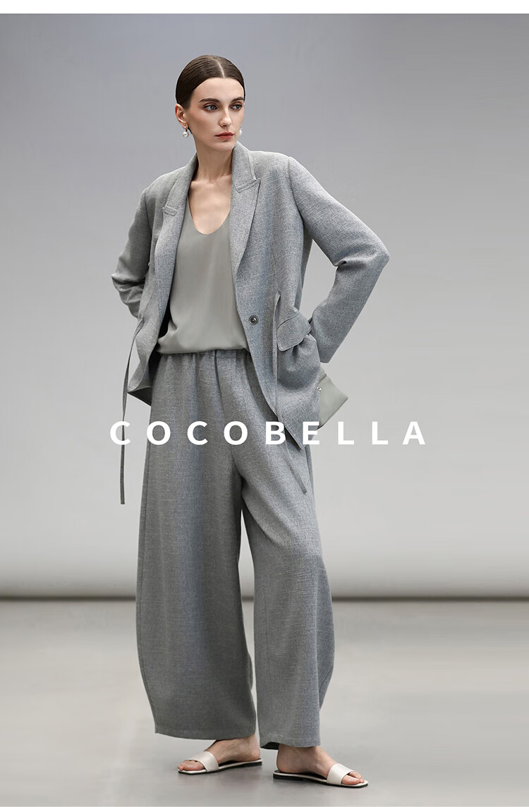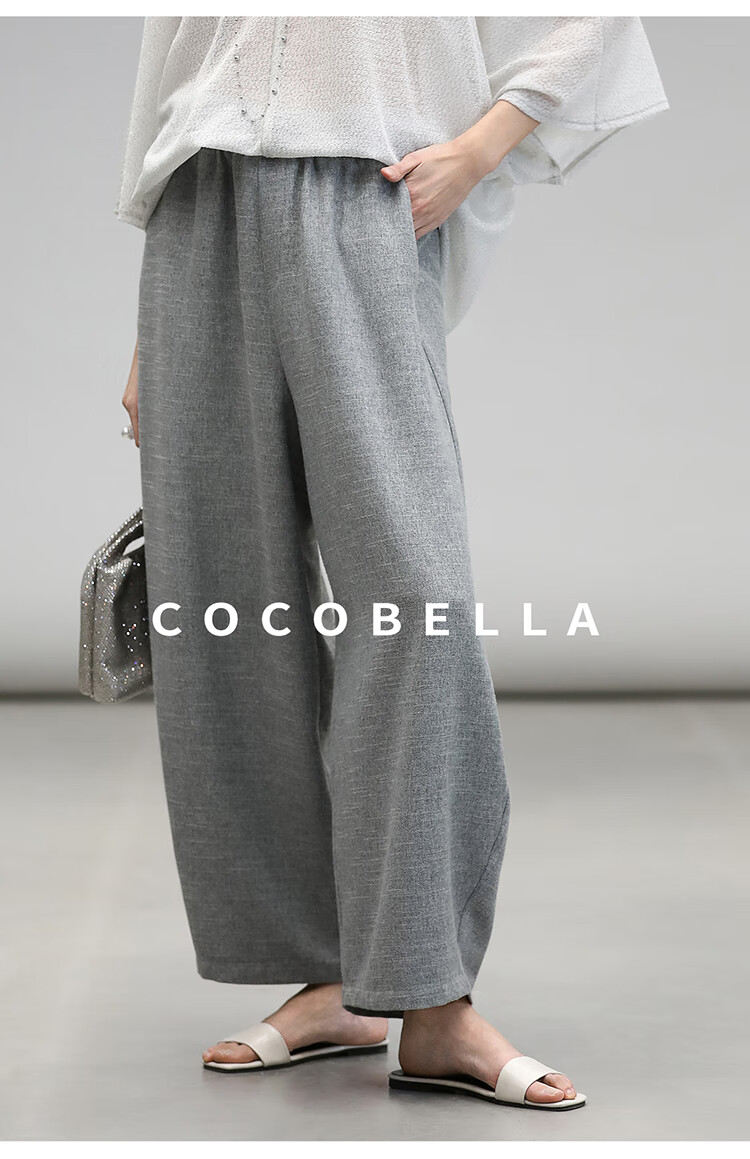 COCOBELLA格雷系穿搭气质花纱灰通勤休闲裤早春宽松香蕉裤PA7013