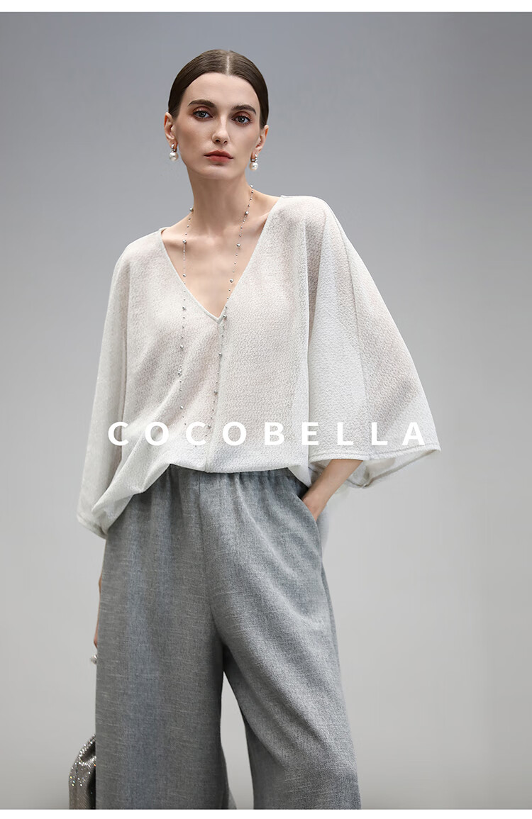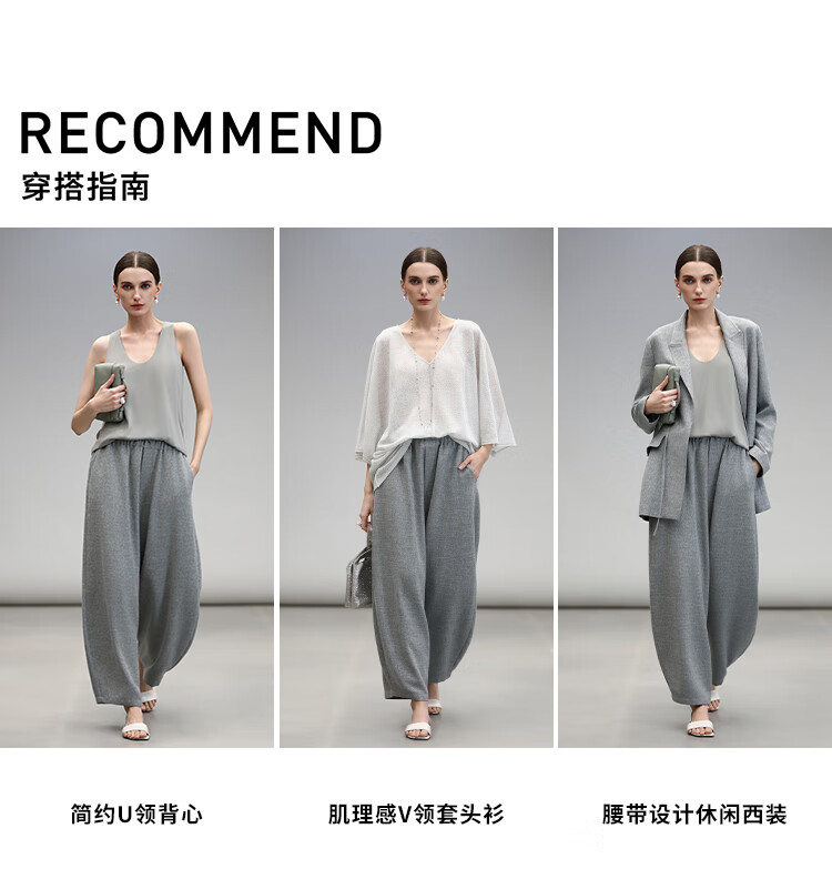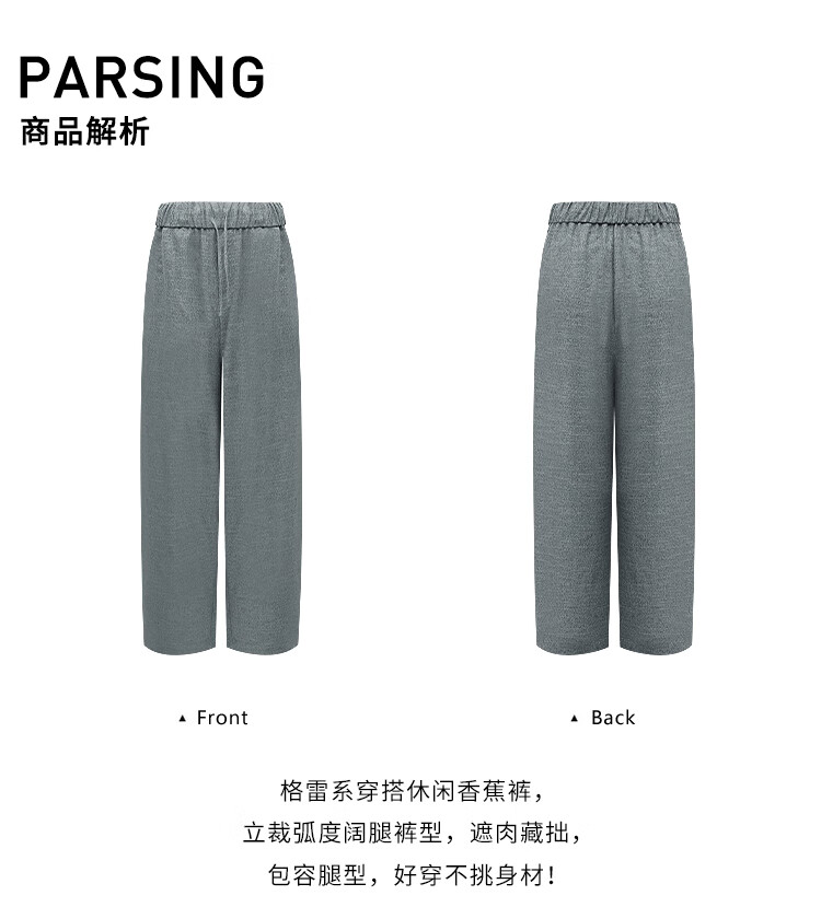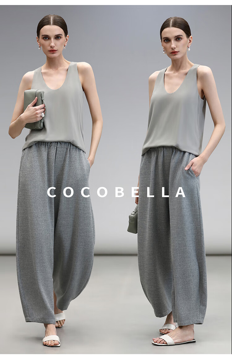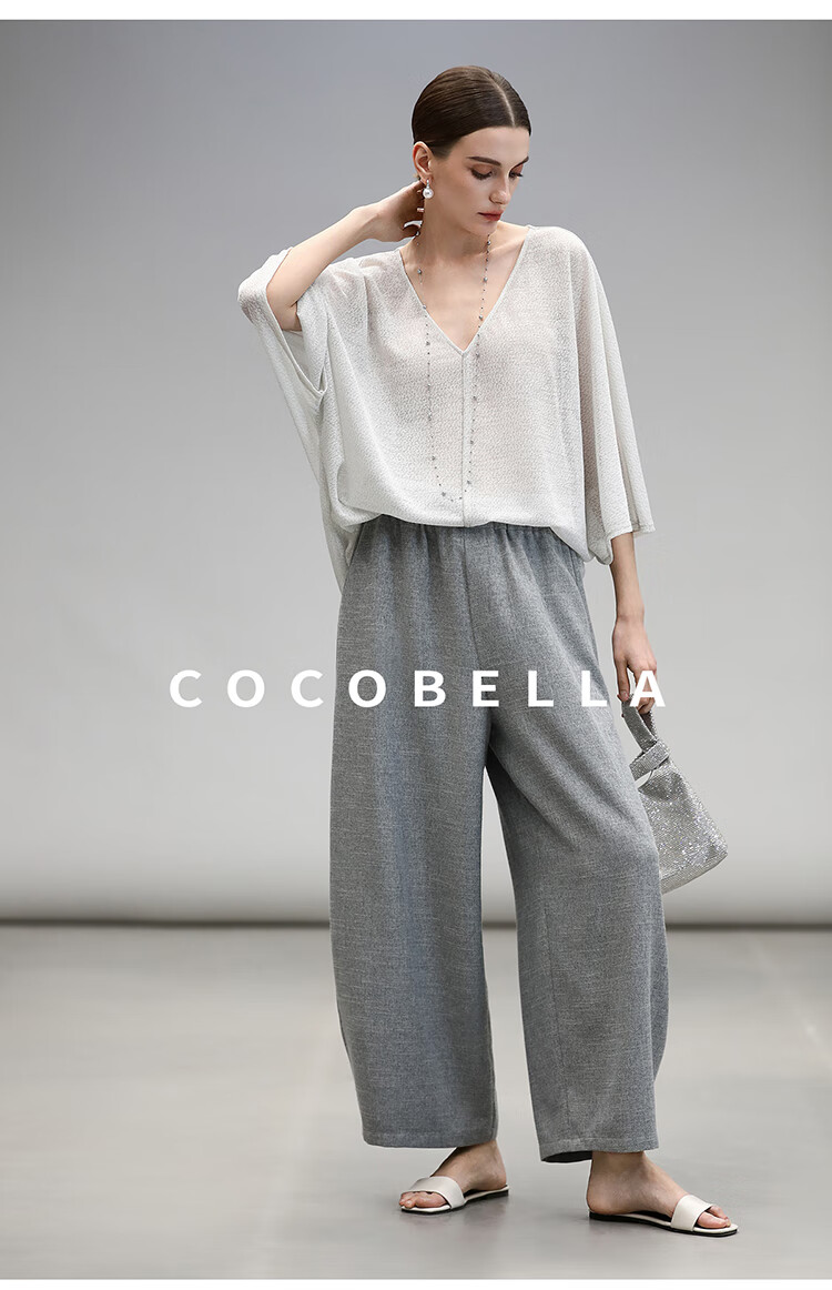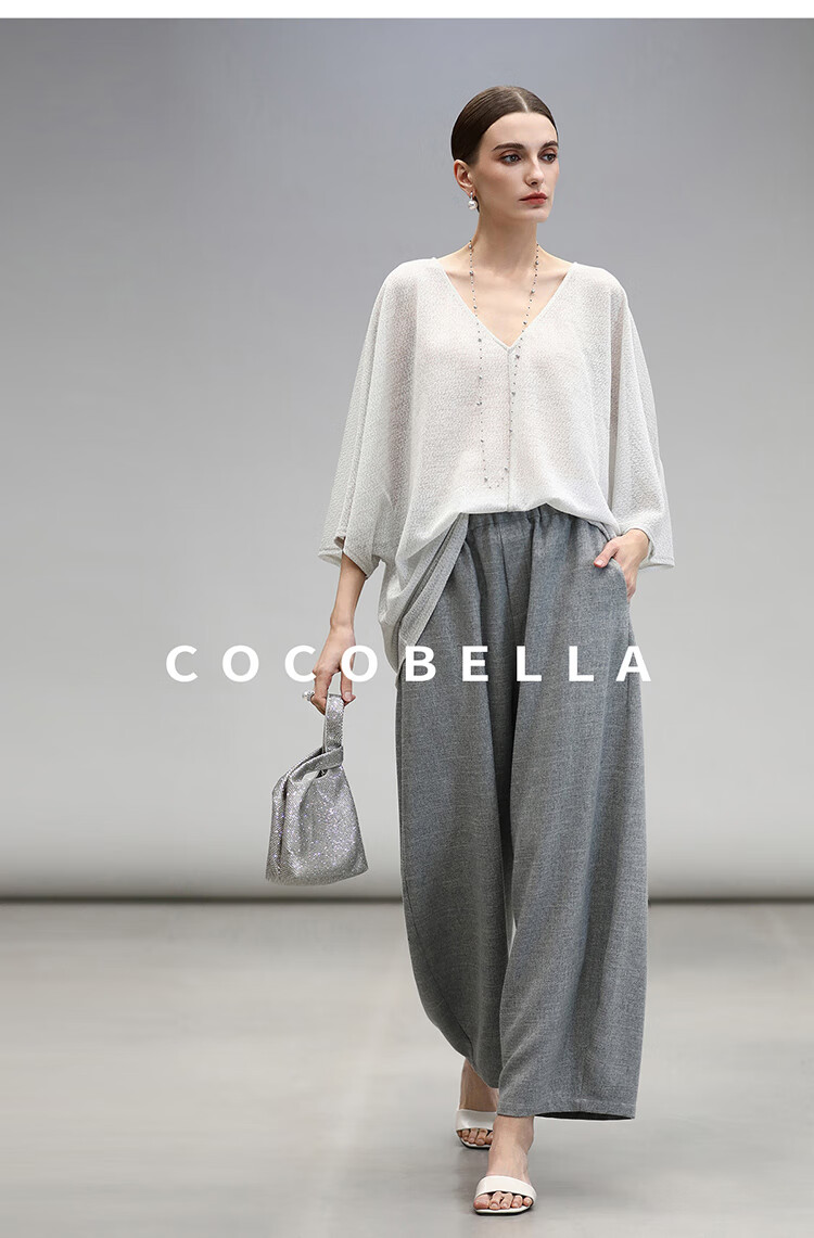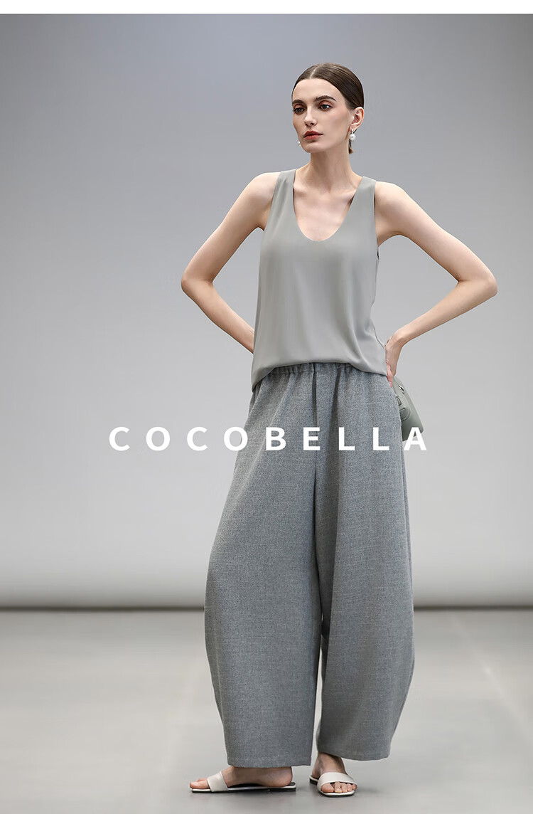 COCOBELLA格雷系穿搭气质花纱灰通勤休闲裤早春宽松香蕉裤PA7013