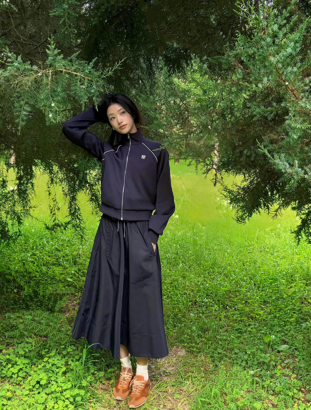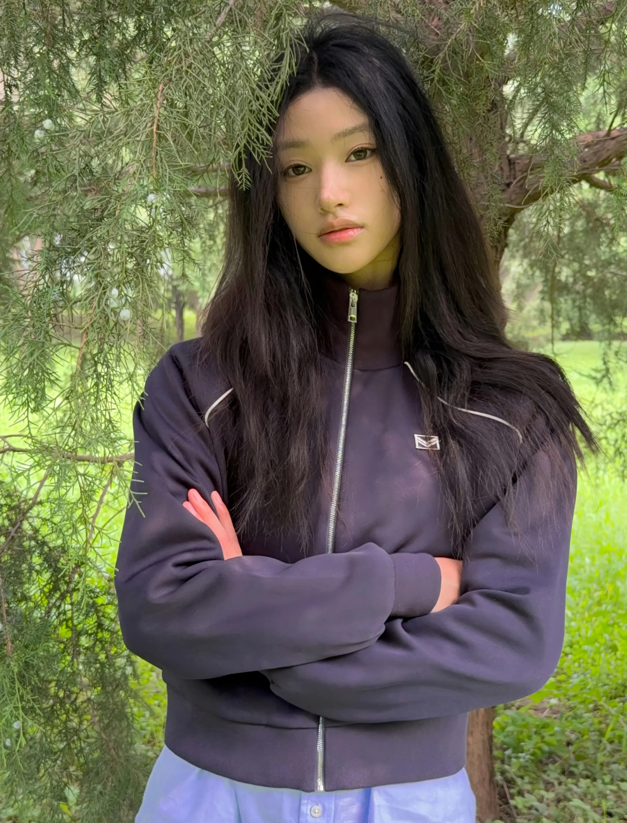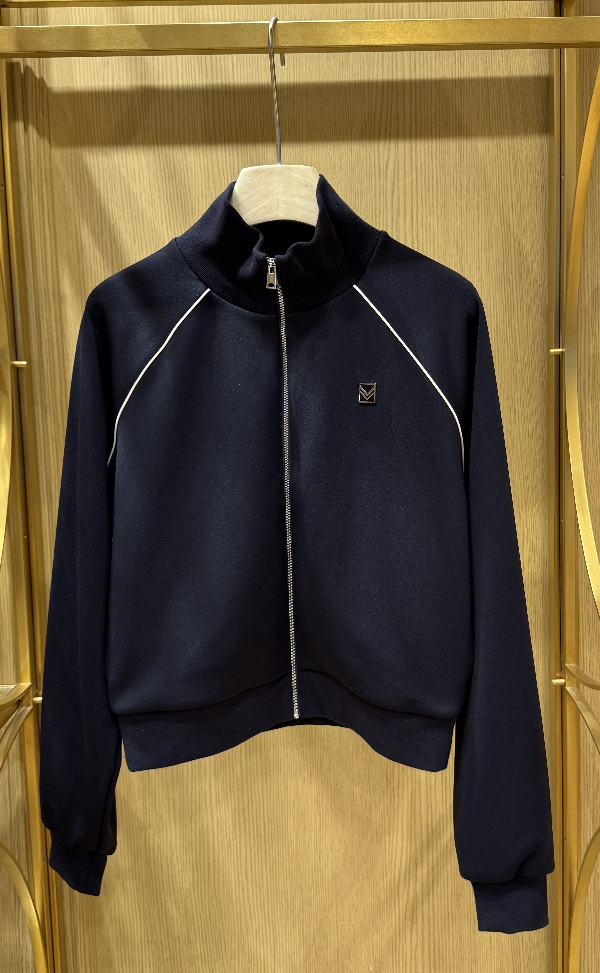 采用短款设计和方正剪裁。轻盈外套配有可调节弹性下摆,适配多种风格造型。外套两侧上臂均有刺绣