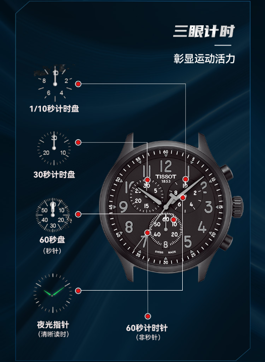 Tissot天梭速驰系列2022新款男表大表盘运动计时石英手表