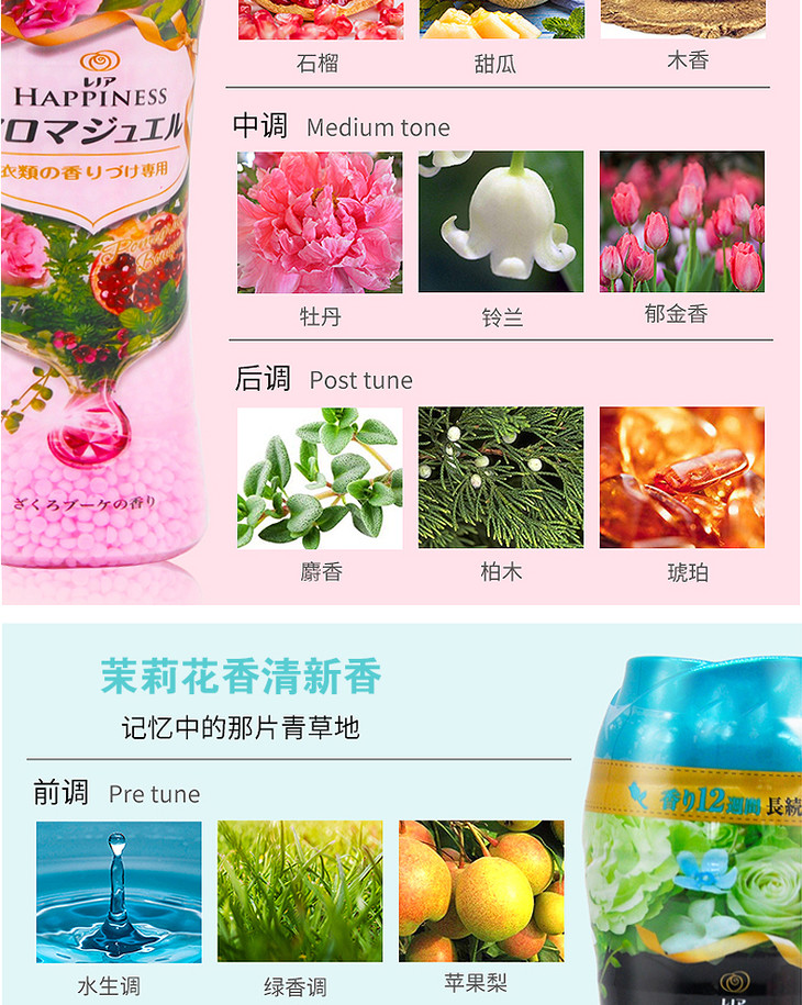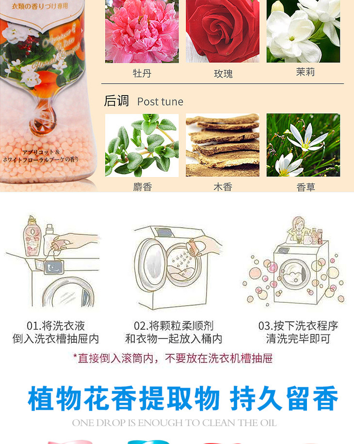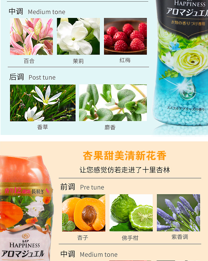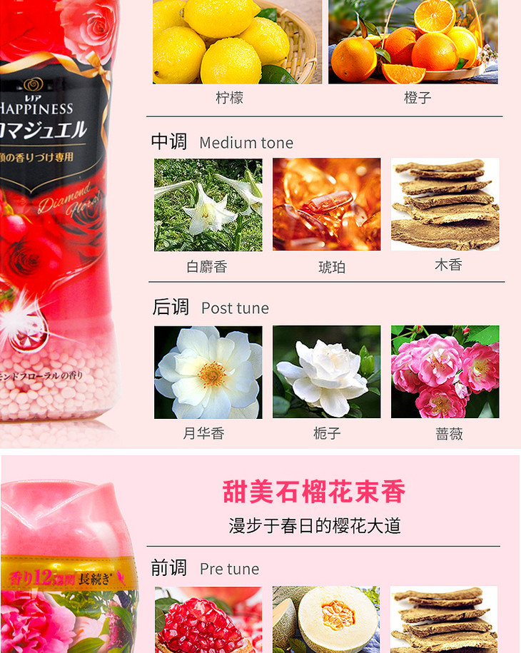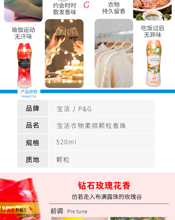 日本原装宝洁P&G留香珠持久香味含柔顺剂 石榴花香颗粒 520ml(860147)