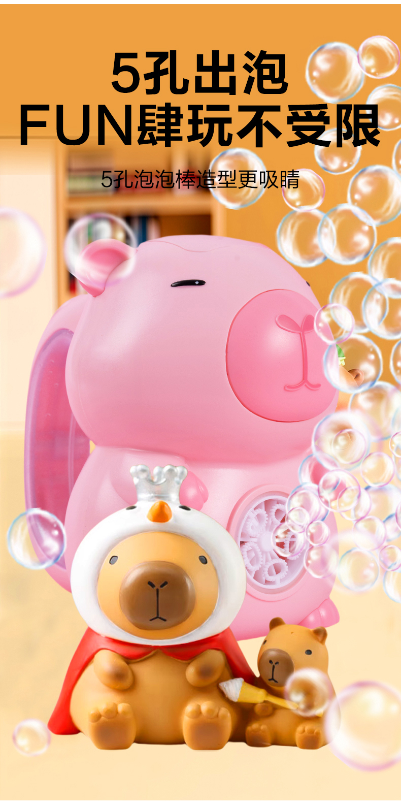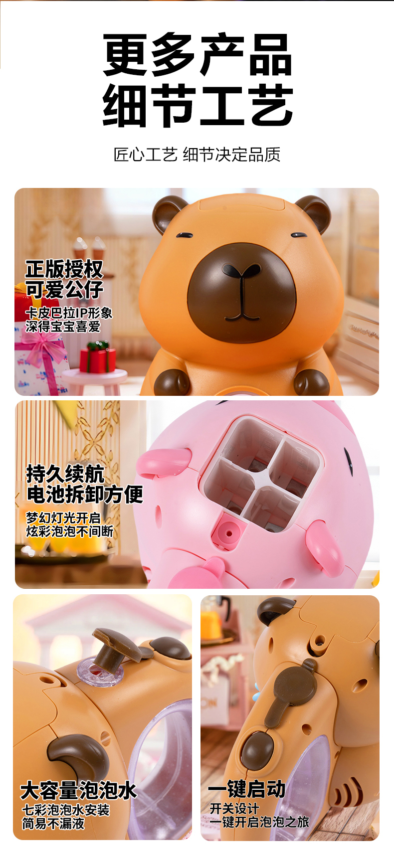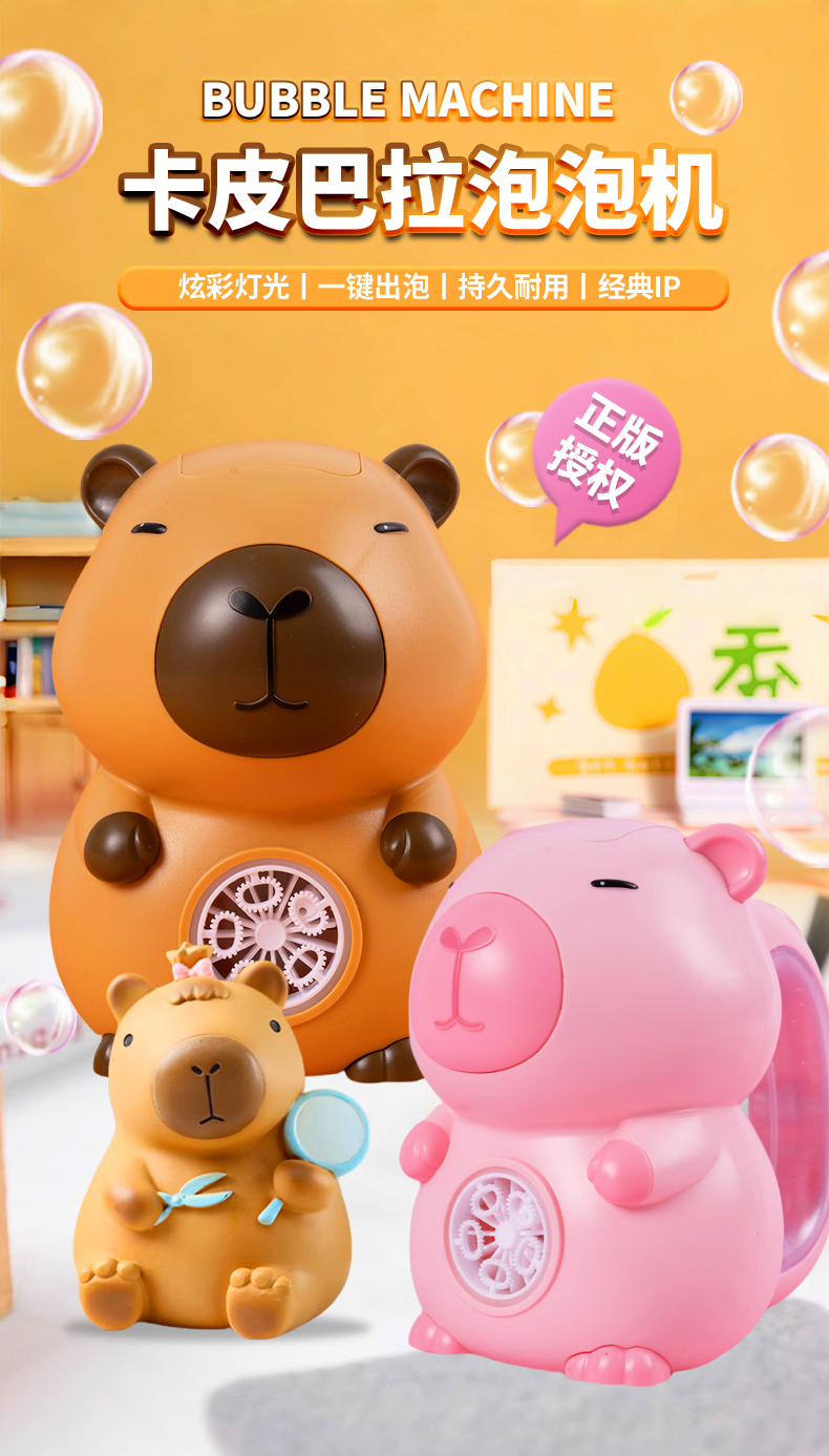 携子乐泡泡机儿童手持电动棒婴幼儿女男孩网红卡皮巴拉玩具公仔