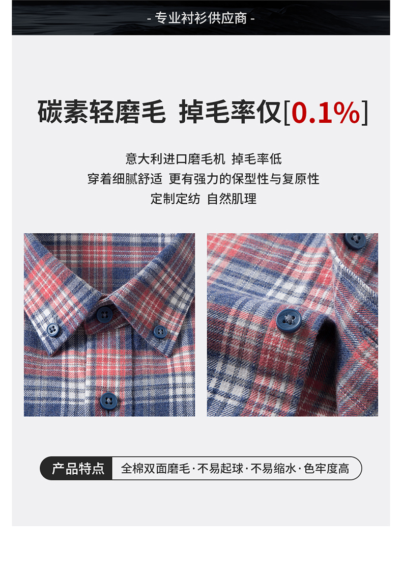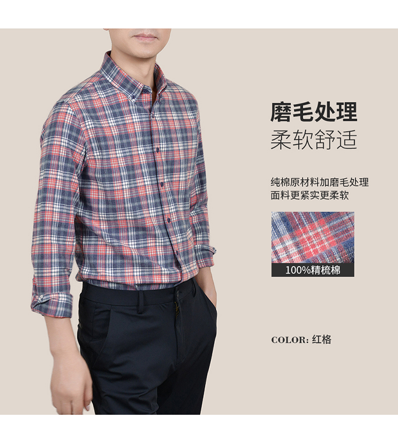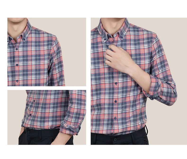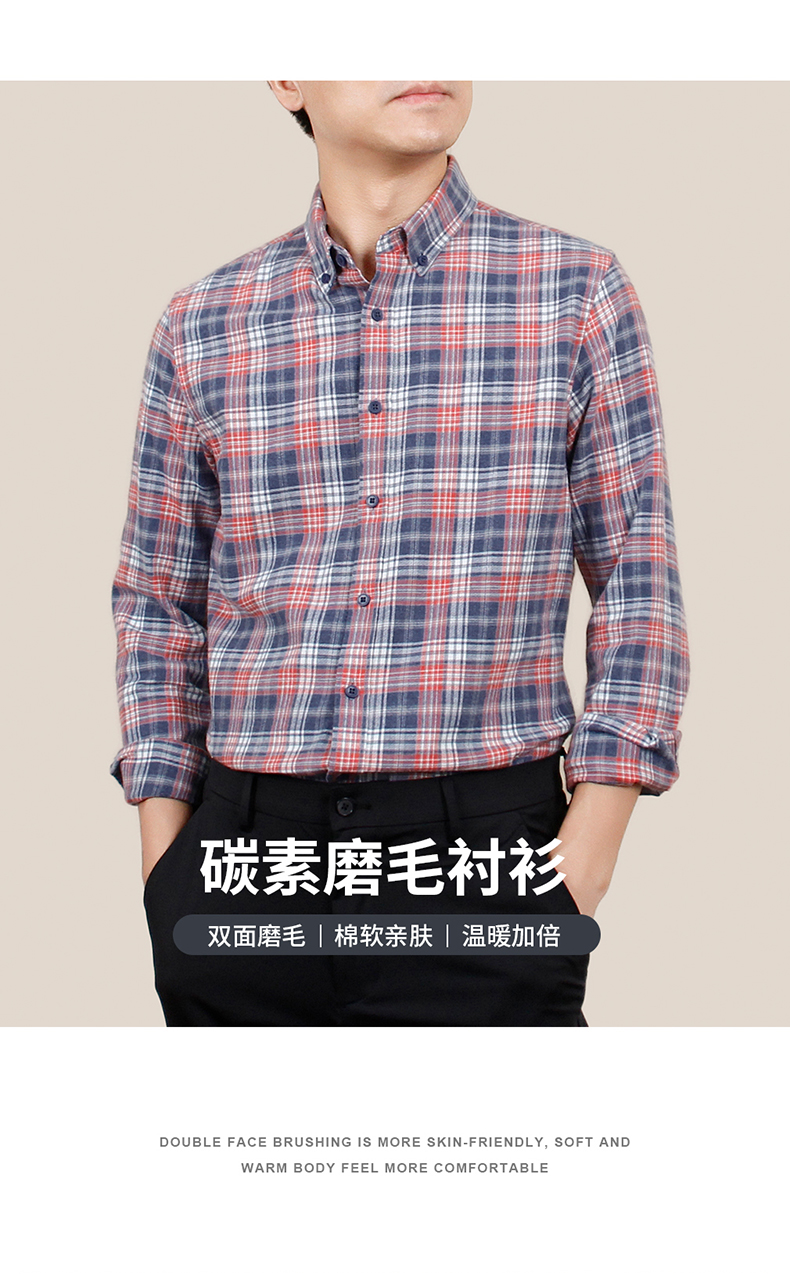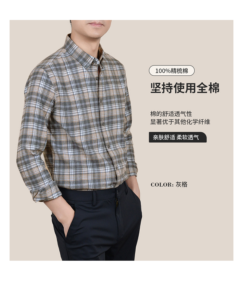 【100棉】罗蒙春秋男士格纹长袖衬衫全棉舒适百搭翻领休闲通勤衬衣