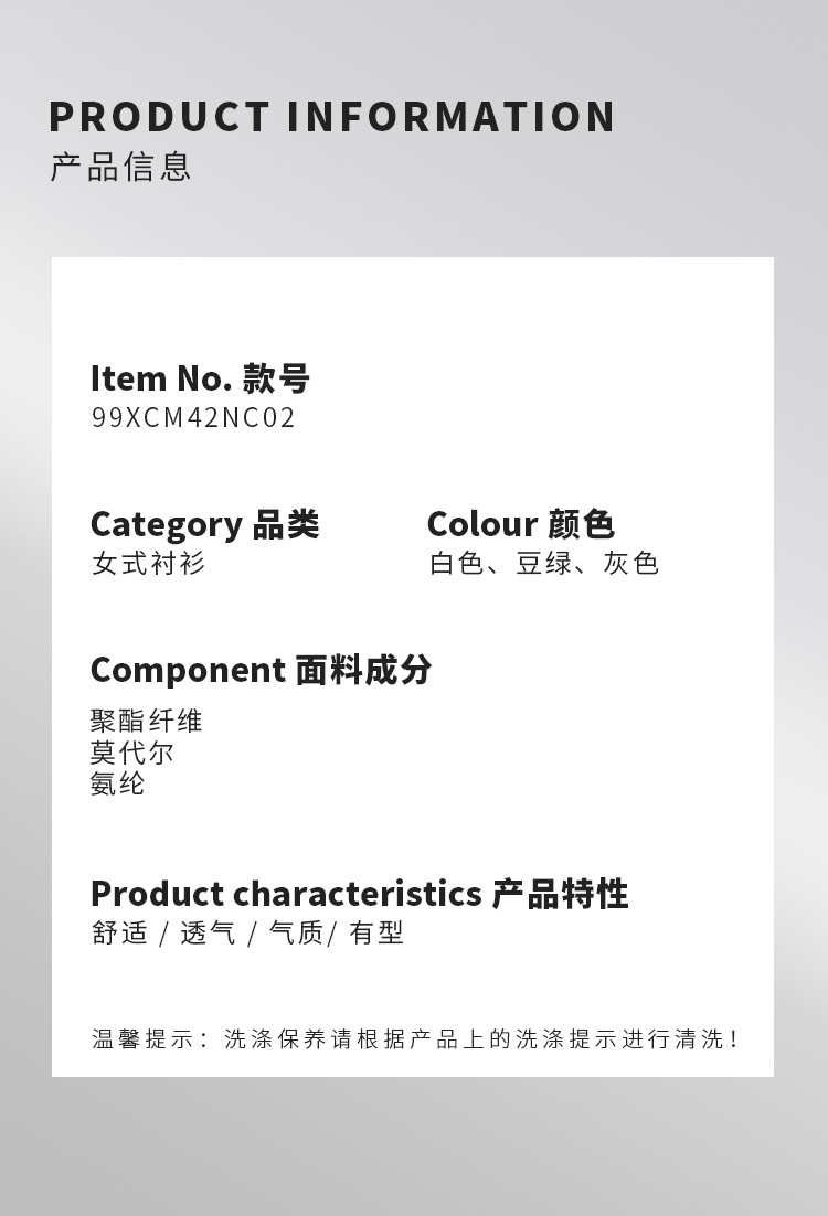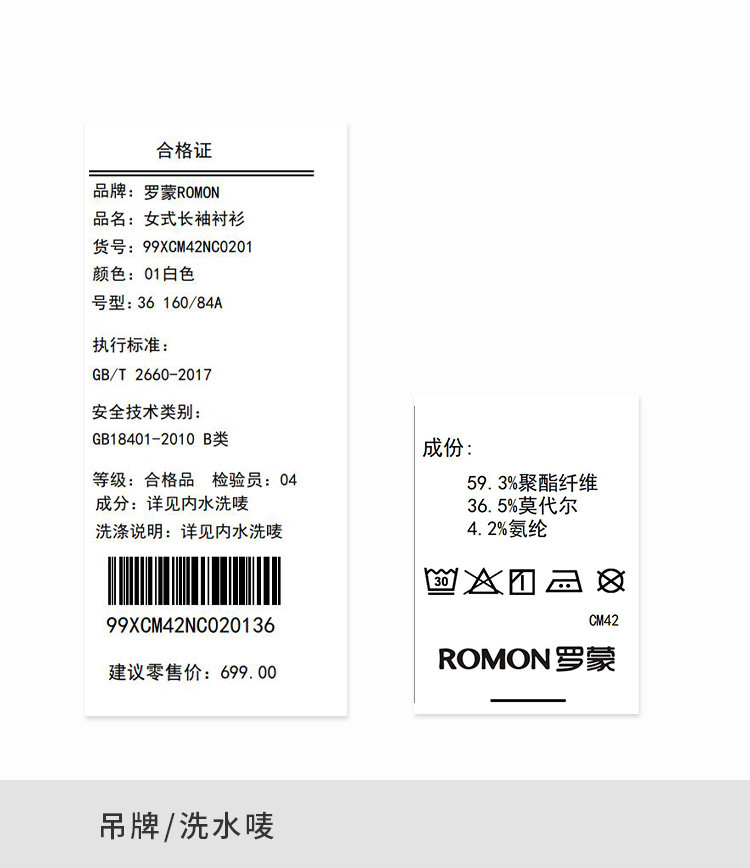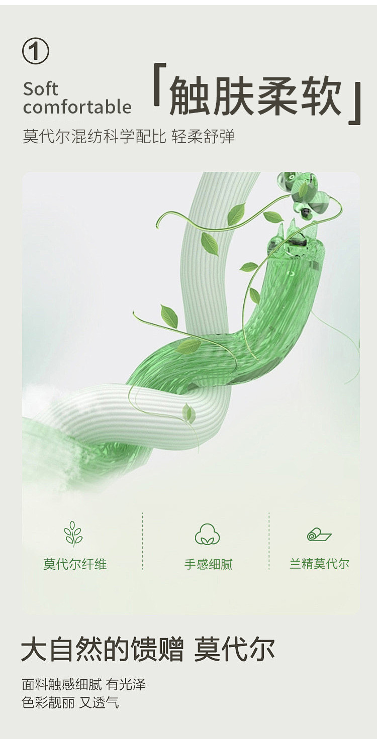 面料:59.3%聚酯纤维 36.5%莫代尔 4.2%氨纶