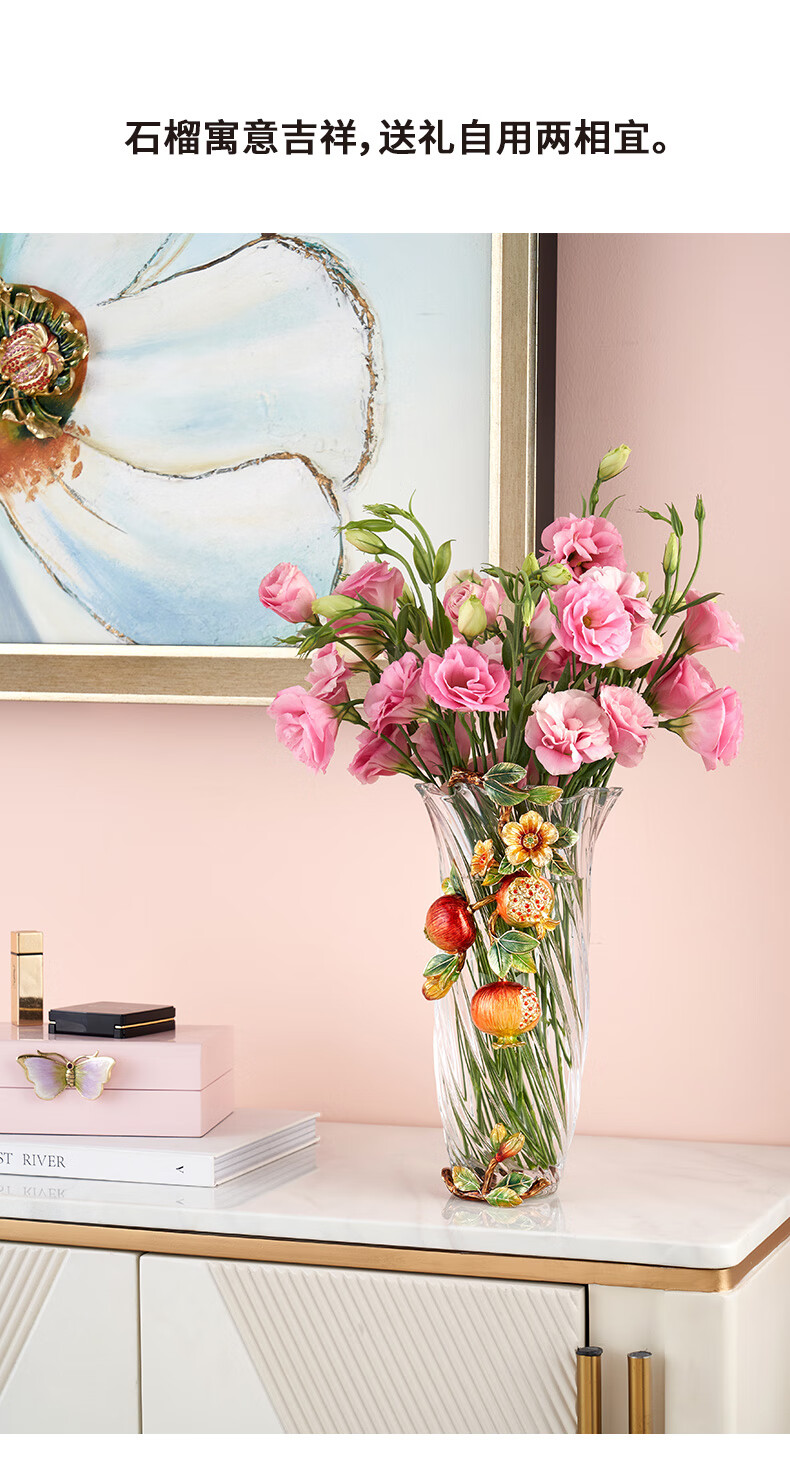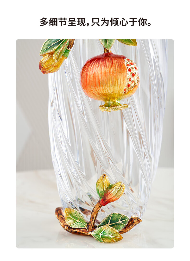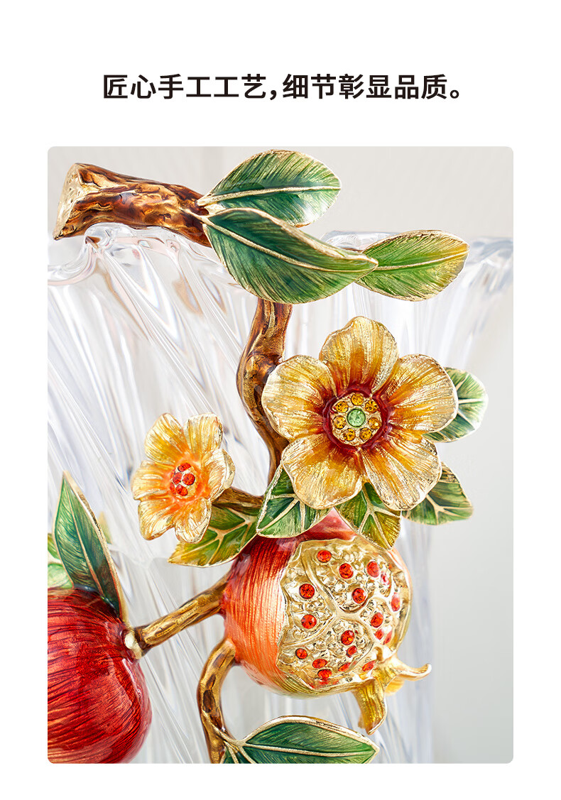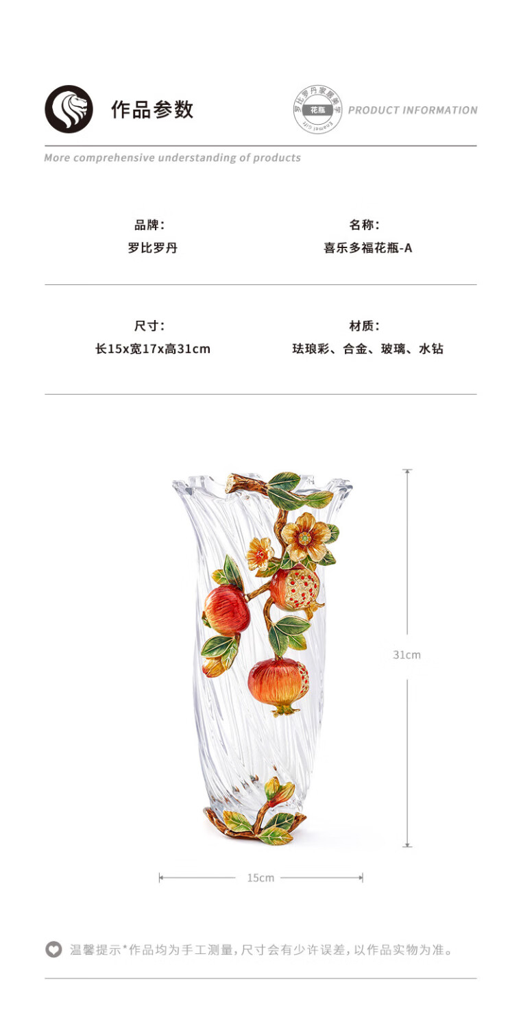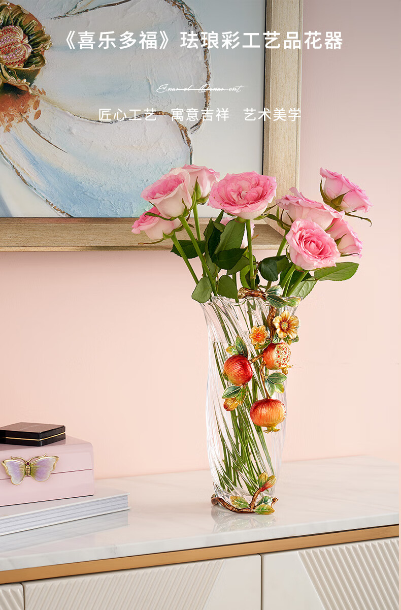 罗比罗丹喜乐多福花瓶珐琅彩工艺石榴花摆件可养真花乔迁礼物