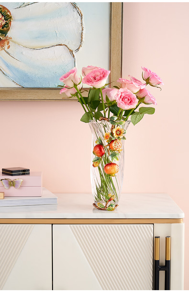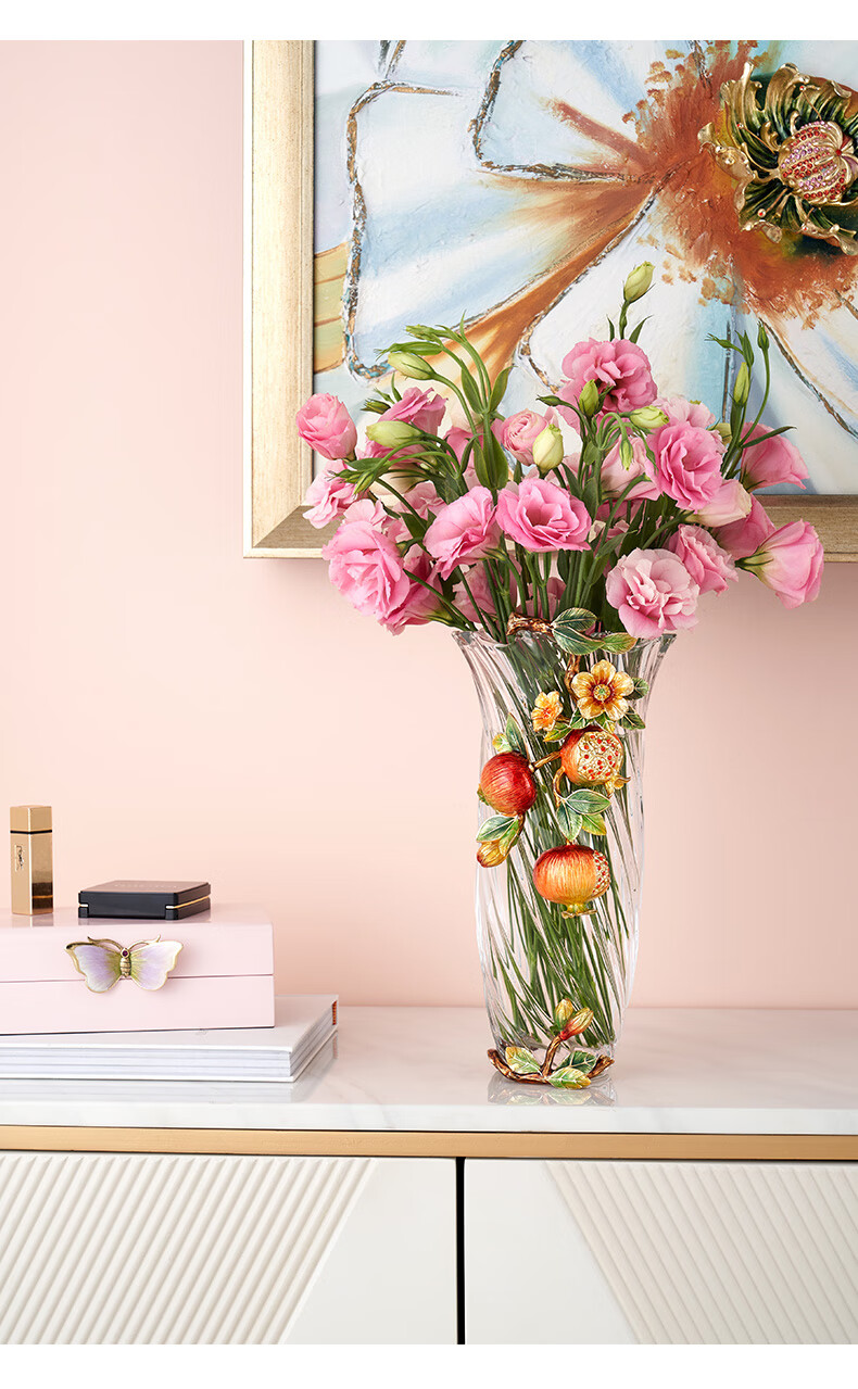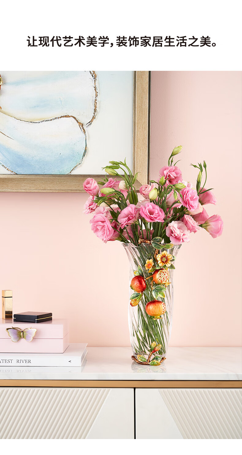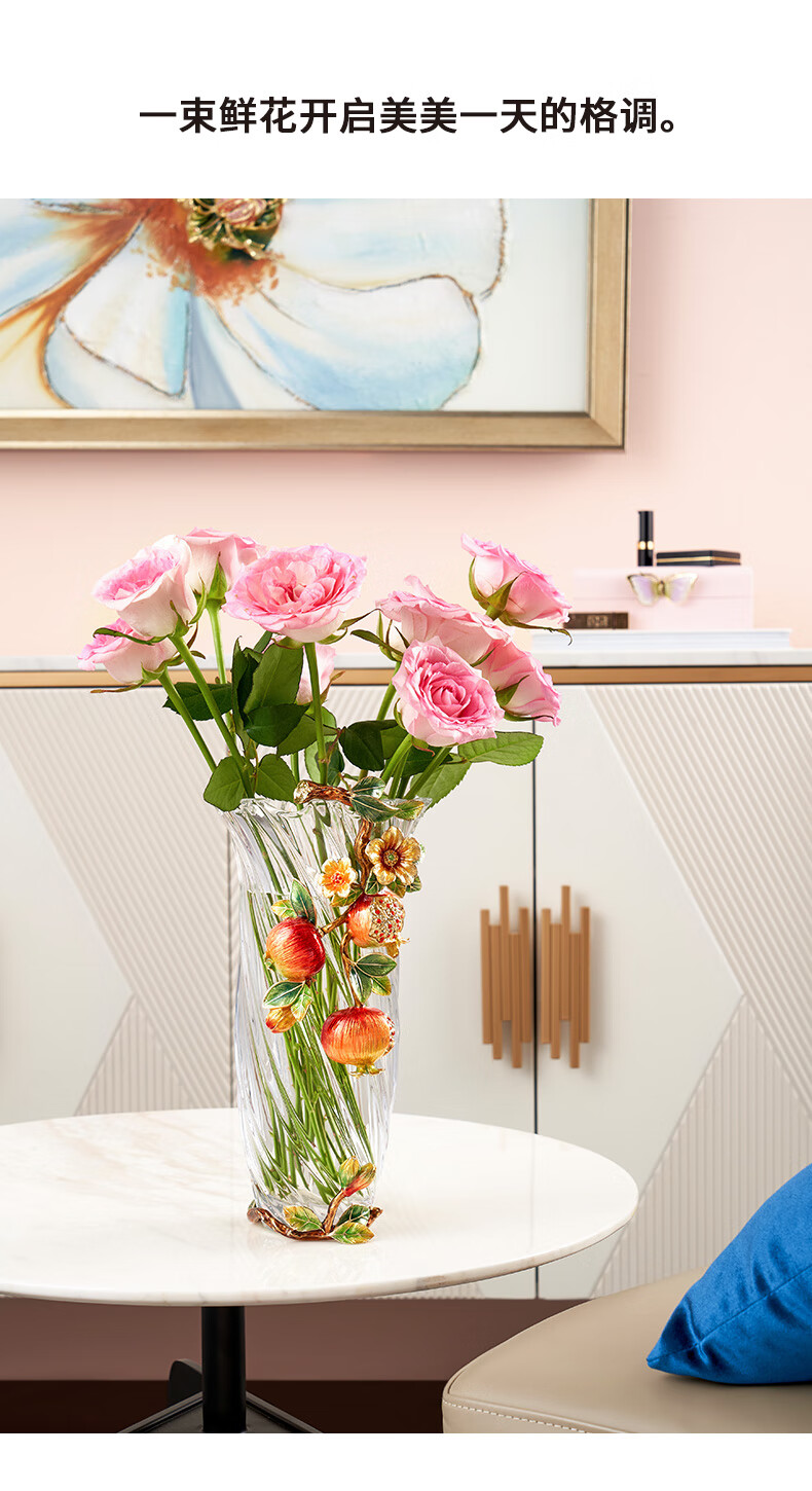 罗比罗丹喜乐多福花瓶珐琅彩工艺石榴花摆件可养真花乔迁礼物
