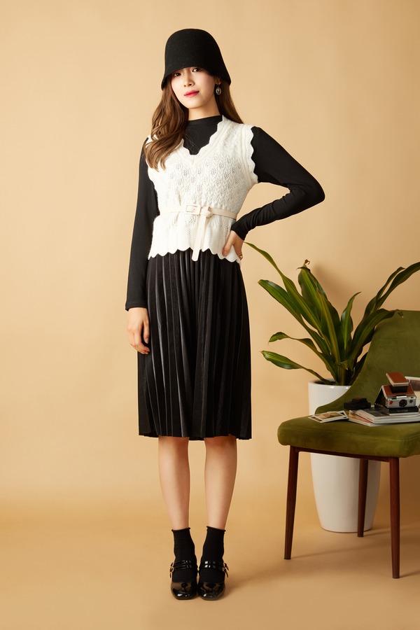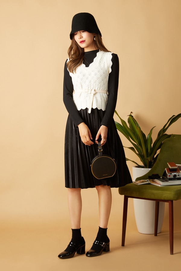 Le Malene 高级感极简风无袖马甲半裙针织套装 20215