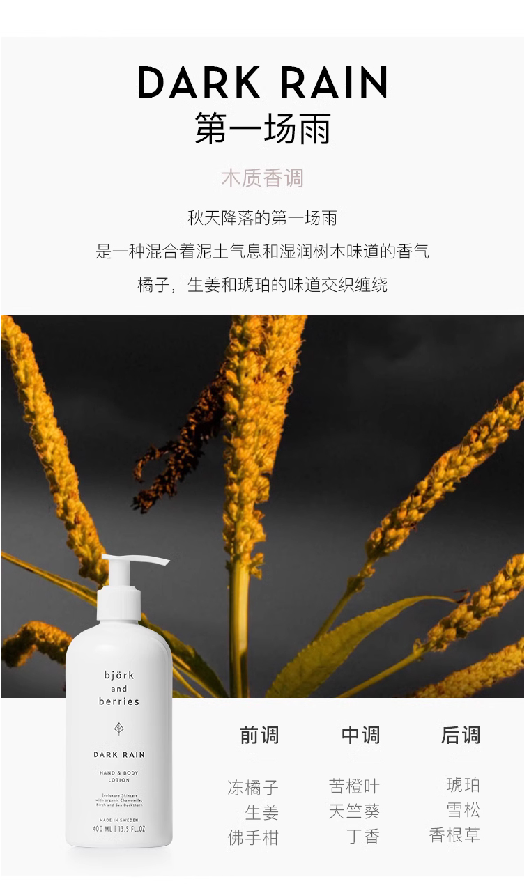 【商品名称】瑞典Bjork&Berries 比约克浆果身体乳400ml