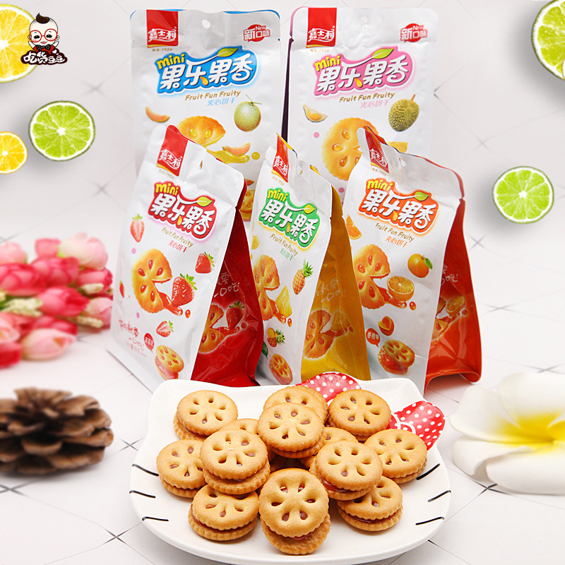 嘉士利果乐果香85g*3包营养夹心饼干迷你袋装凤梨莓香橙味