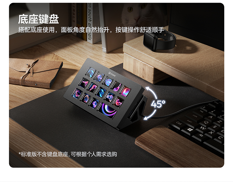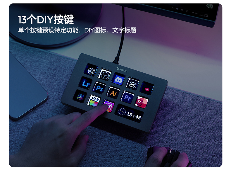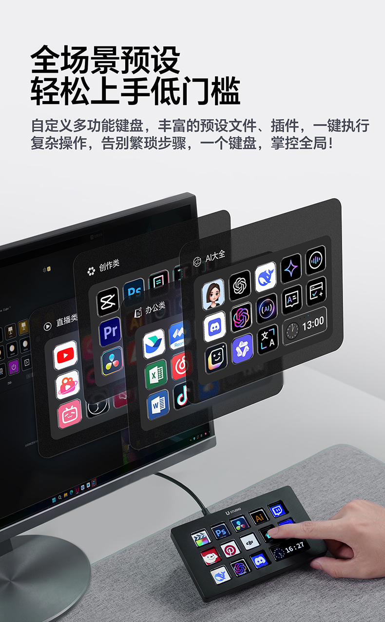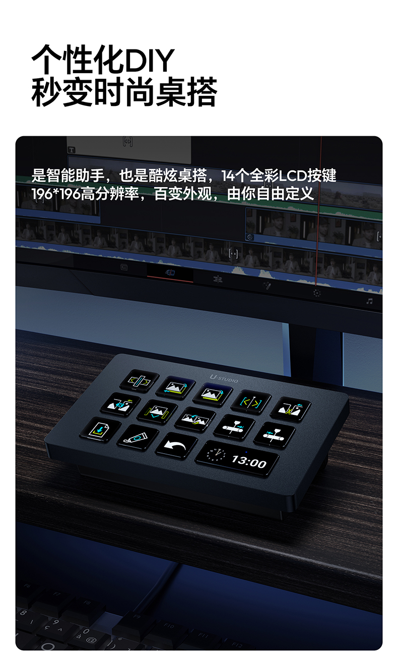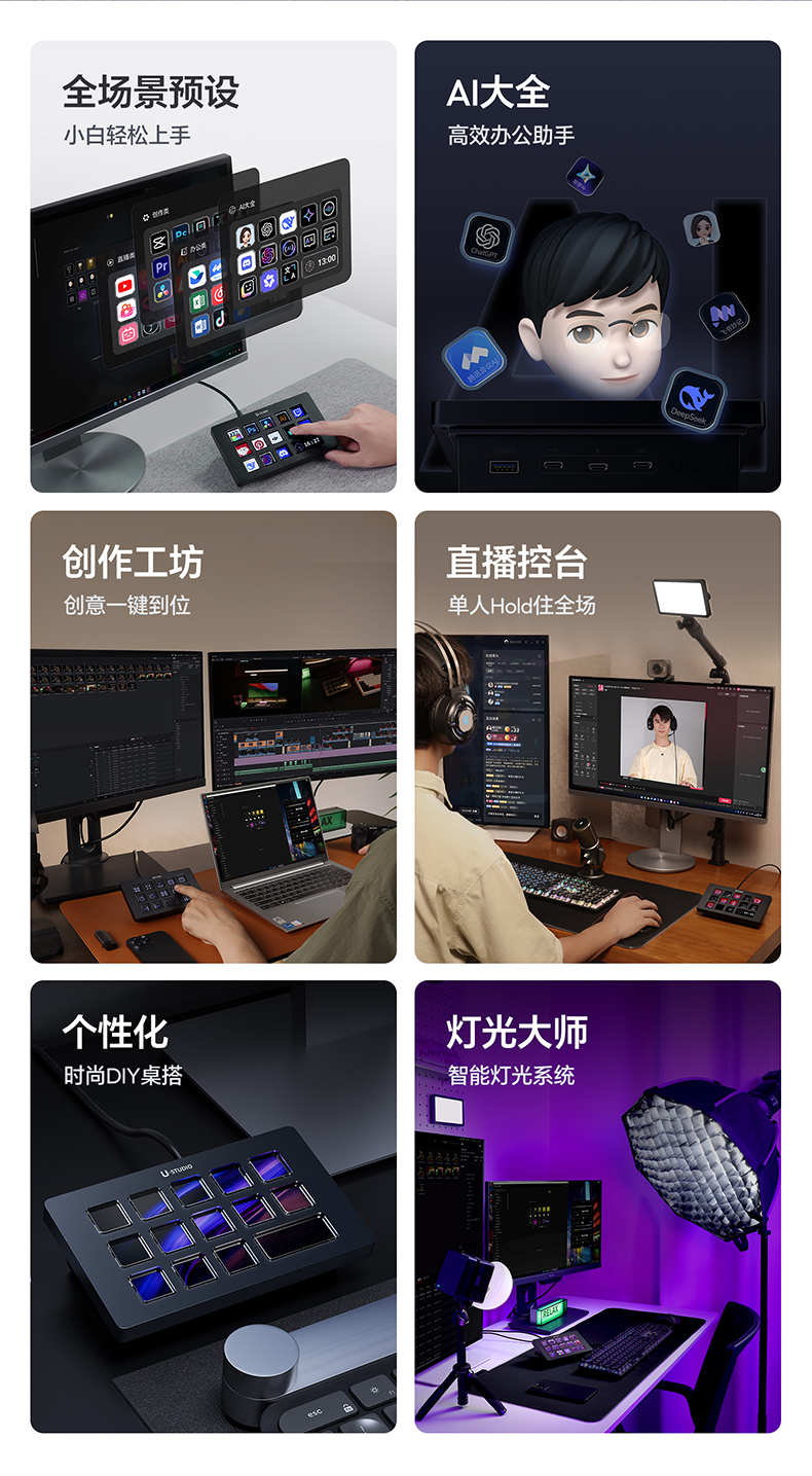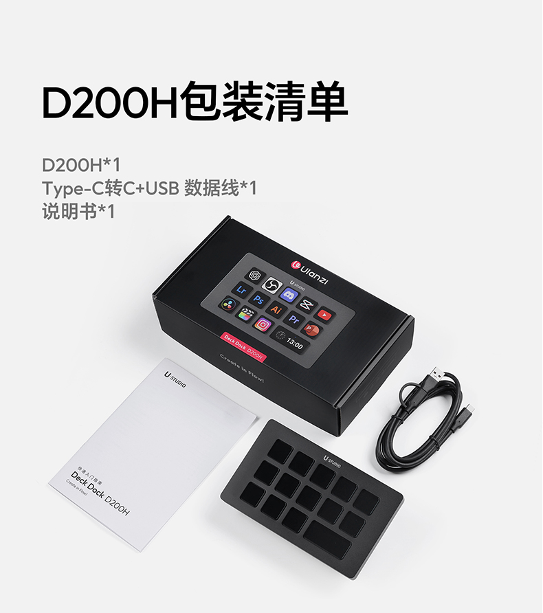 Ulanzi优篮子D200H桌面控制器带拓展坞LCD可视化内容控制台座智能AI助手电脑直播自定义键盘远程控制灯光系统