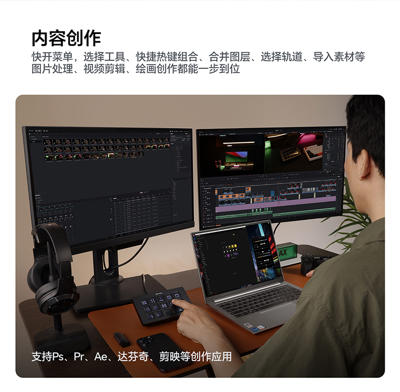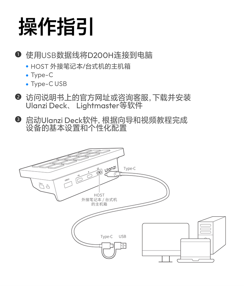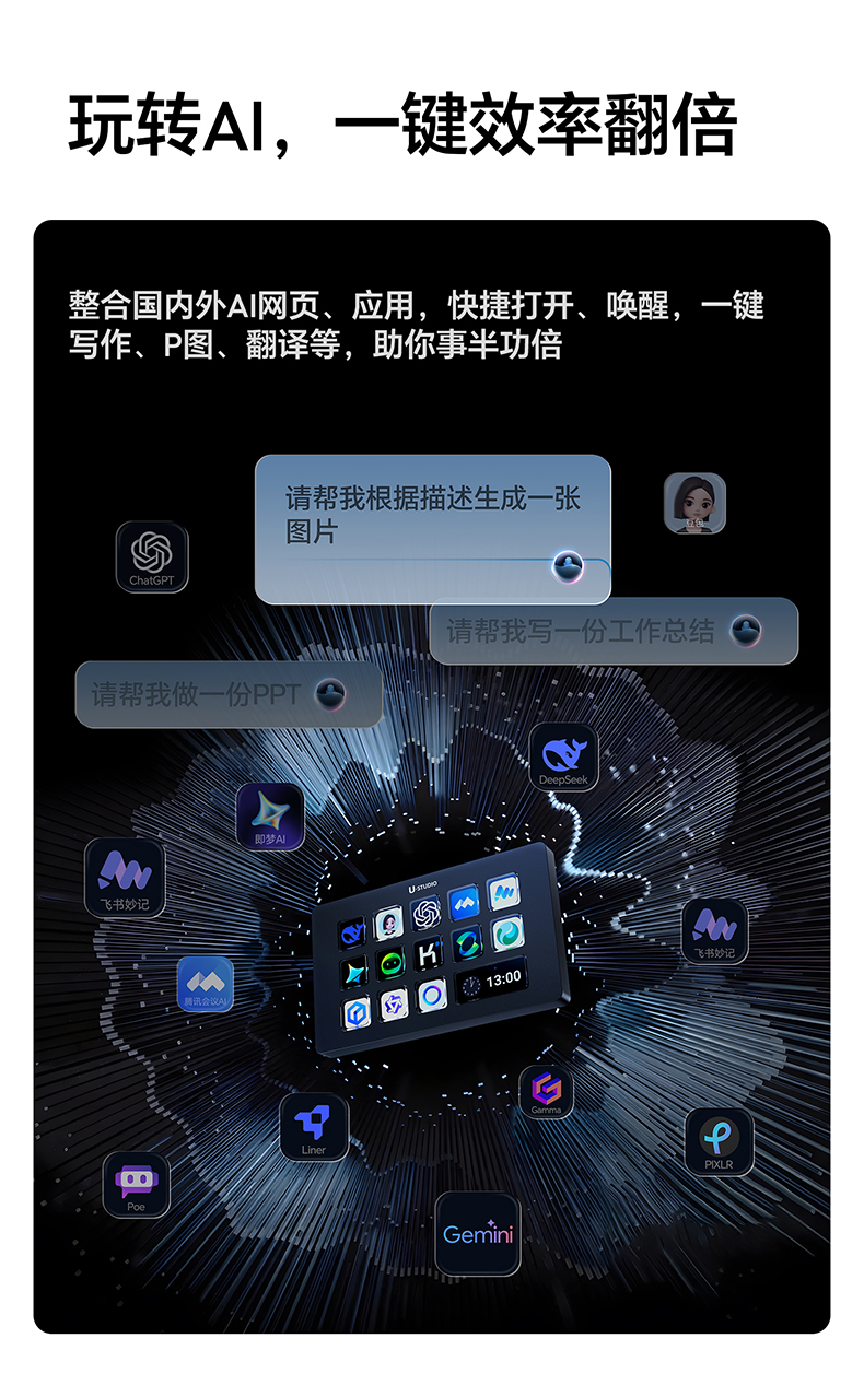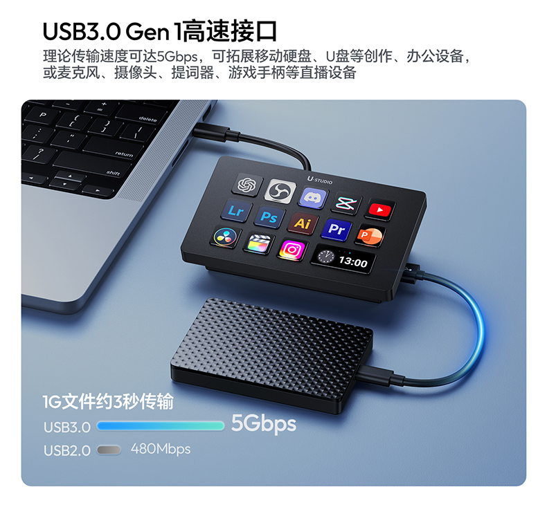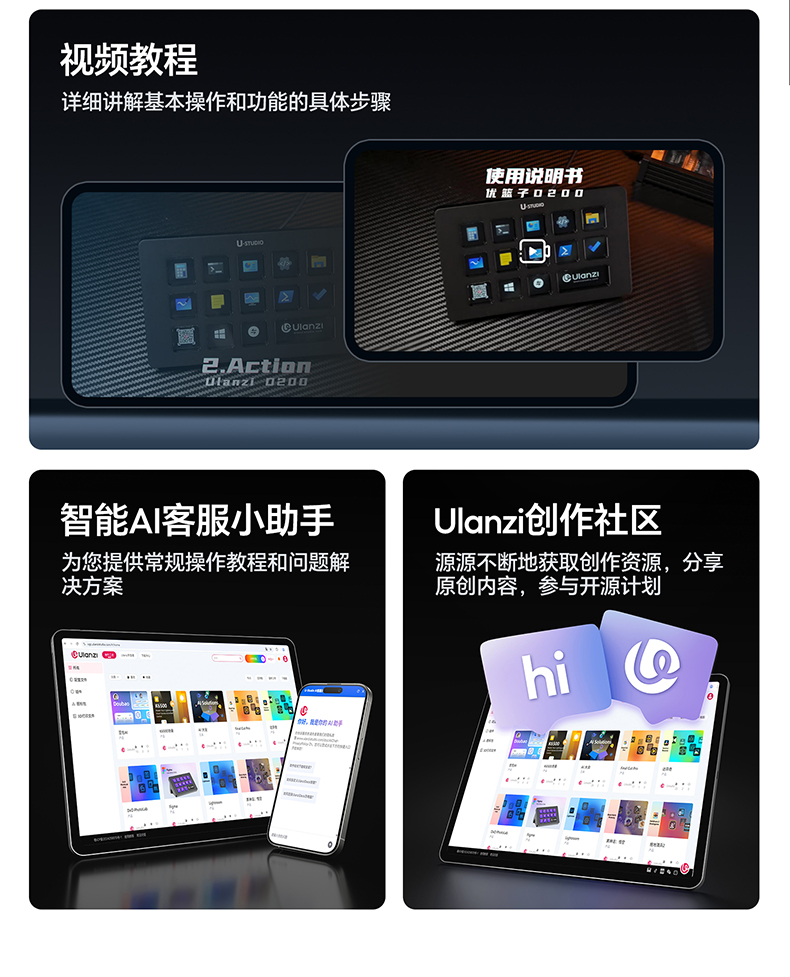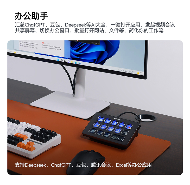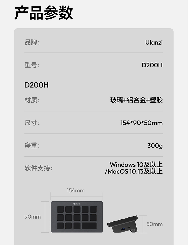 Ulanzi优篮子D200H桌面控制器带拓展坞LCD可视化内容控制台座智能AI助手电脑直播自定义键盘远程控制灯光系统