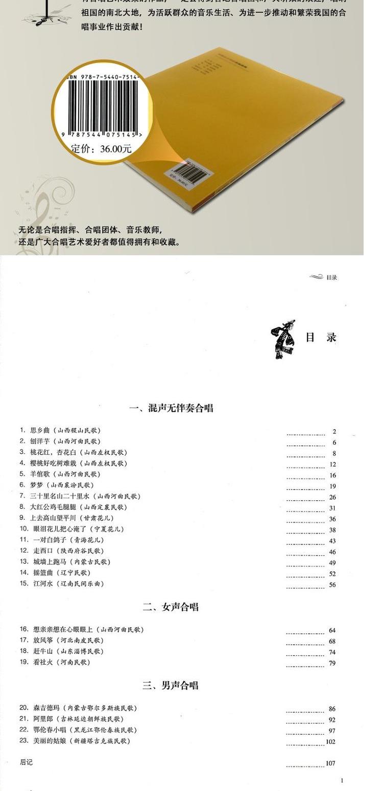 正版 中国北方民歌合唱曲集 山西师范大学烛光合唱团演唱曲目