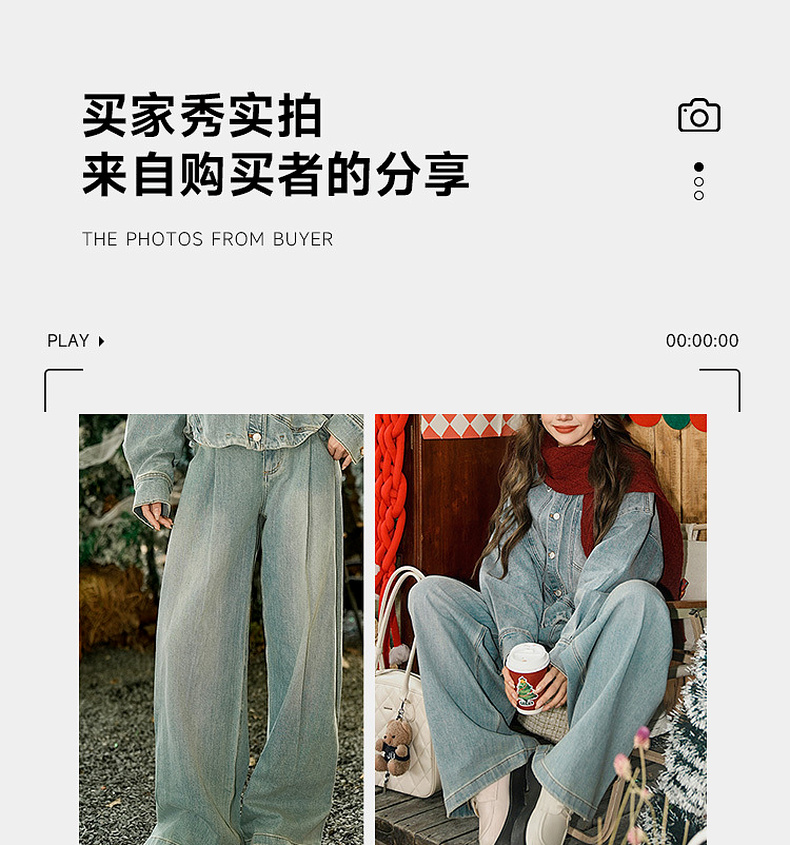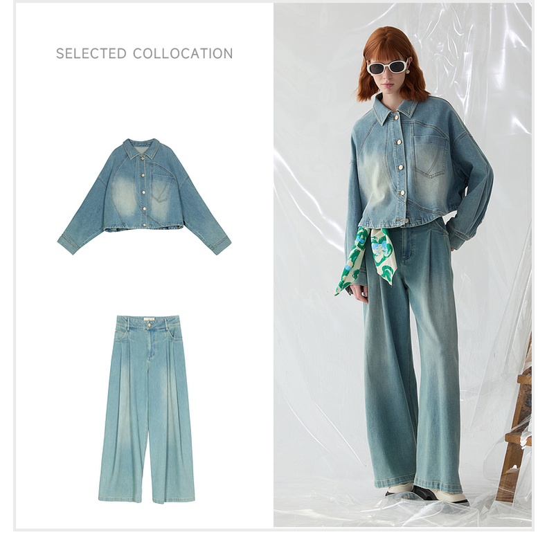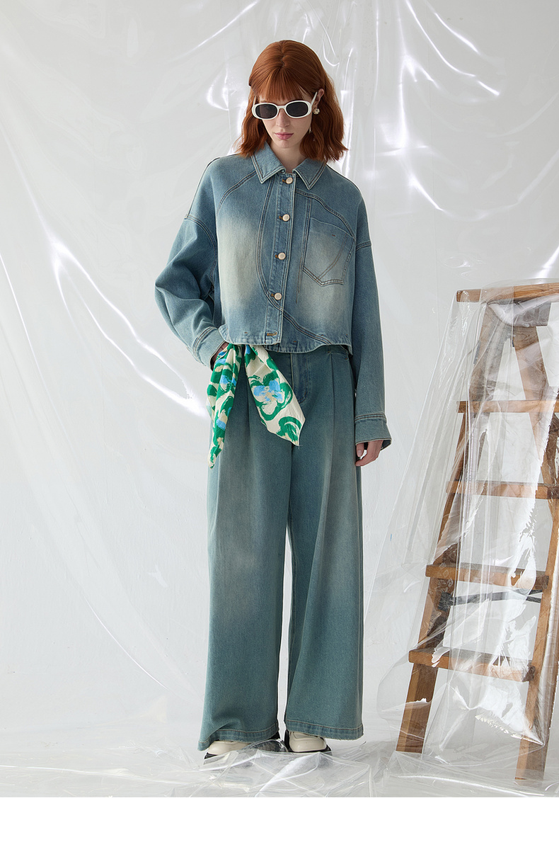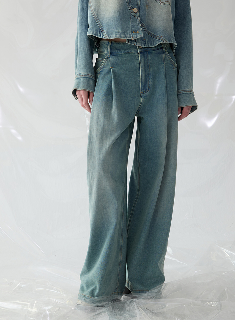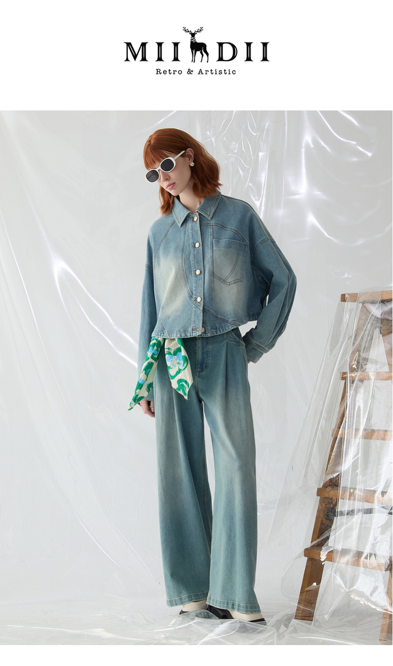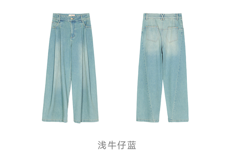 谜底牛仔阔腿裤女士2025春新品复古高腰百搭牛仔裤长裤251MK0019