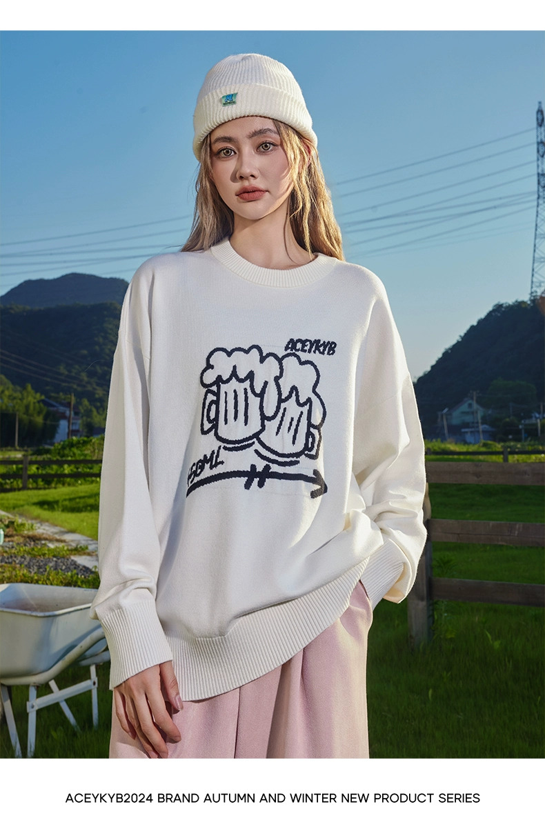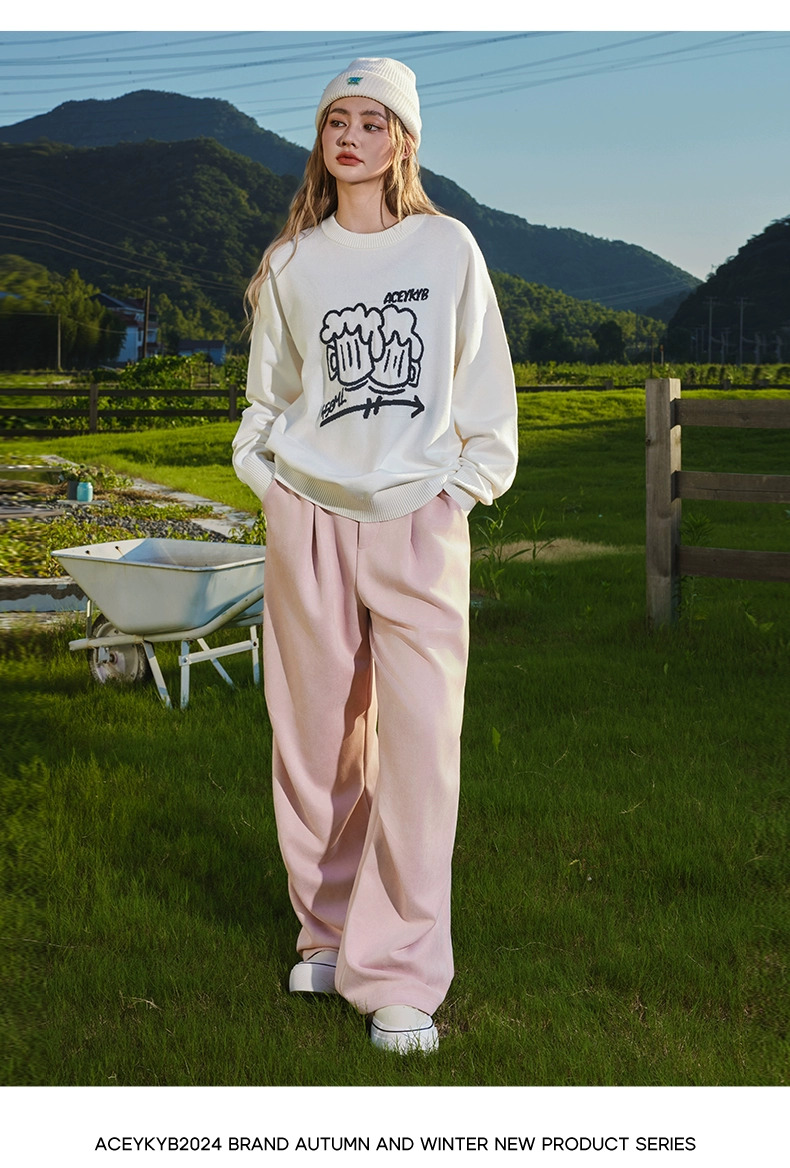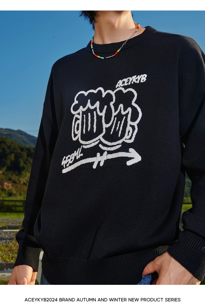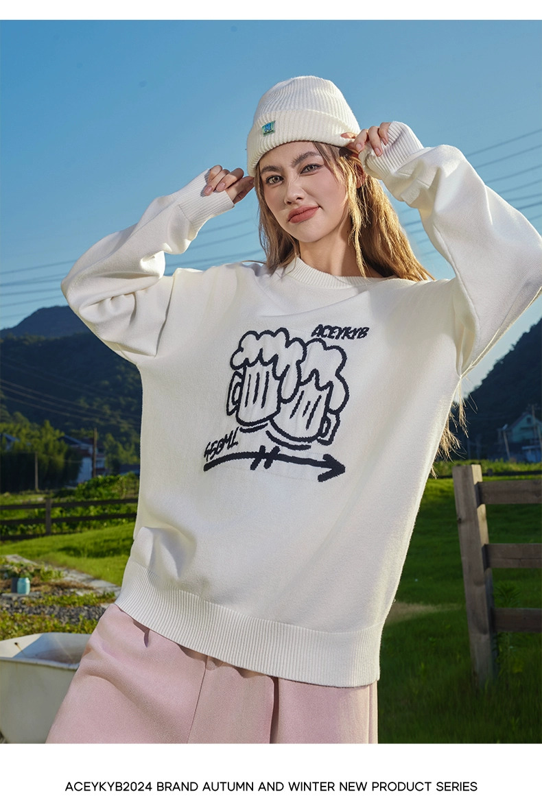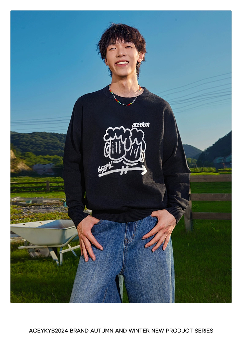 YKYB秋季2025新款针织衫多色时尚潮流上衣纯色休闲宽松毛衣情侣装