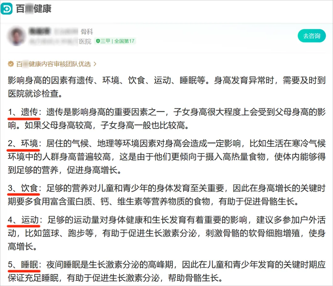‼️那首先我还是得说,影响身高的是综合因素(这是我在度度搜的👇你们也可以自己搜下)。
