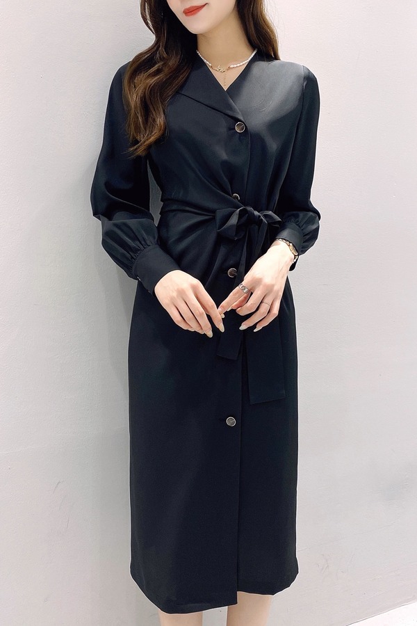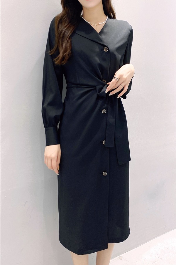 Le Malene 不对称领褶皱收腰系带连衣裙 16883