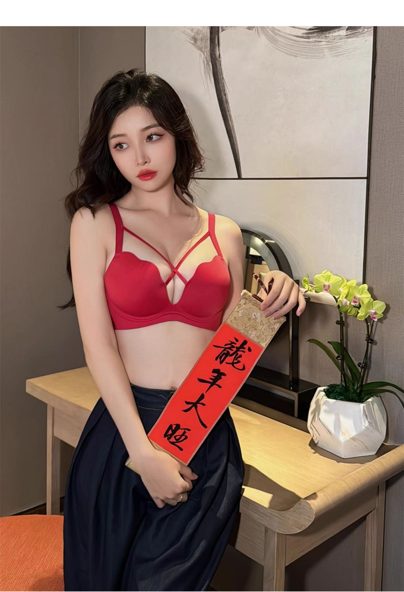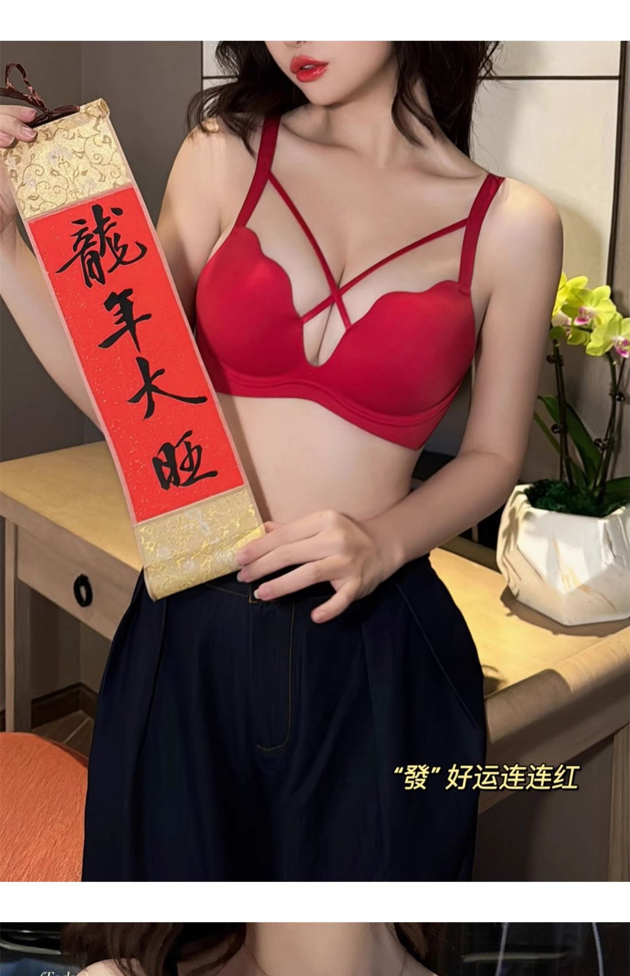 【新品福利~送同款内裤!】本命年胸前交叉性感镂空内衣,3D立体杯型设计,小胸聚拢,一秒上托,稳固胸型,性感无痕少女无钢圈防下垂上托,纯欲绑带,不空杯不跑杯!