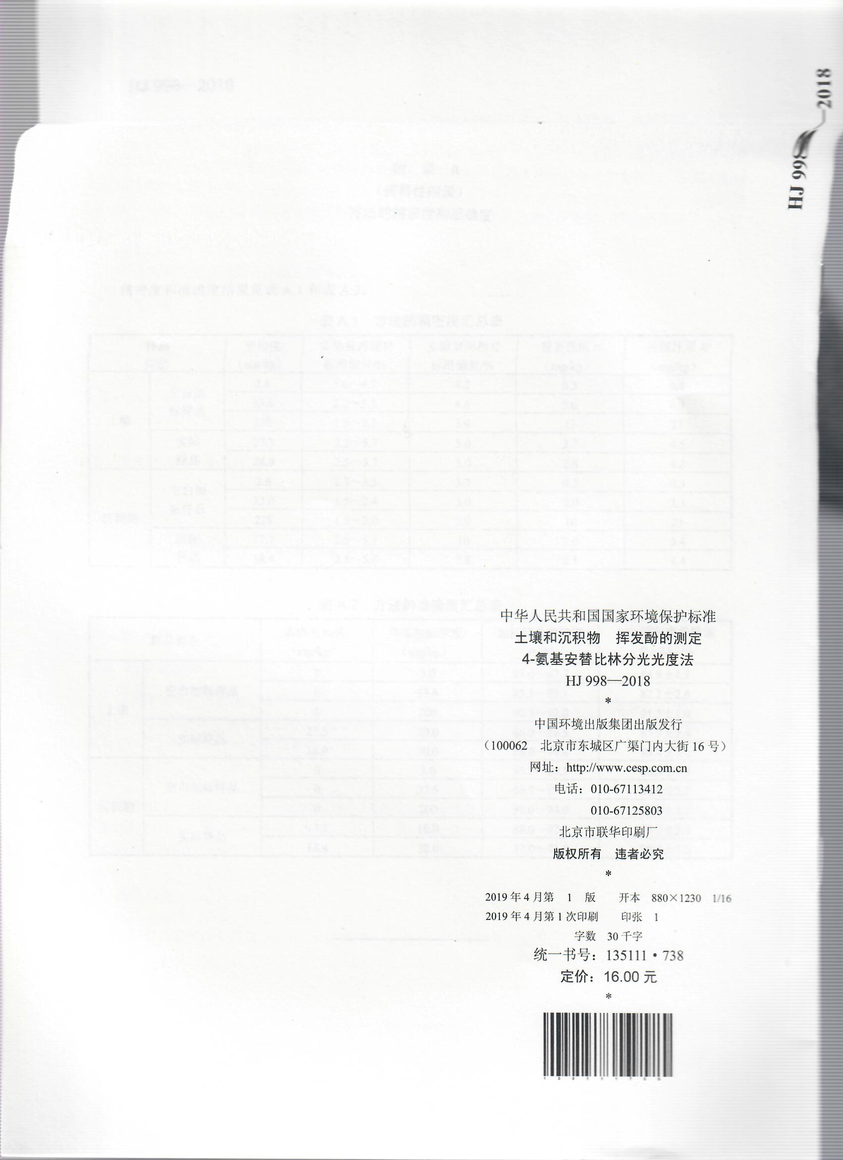 HJ 998-2018土壤和沉积物 挥发酚的测定 4-氨基安替比林分光光度法 135111738