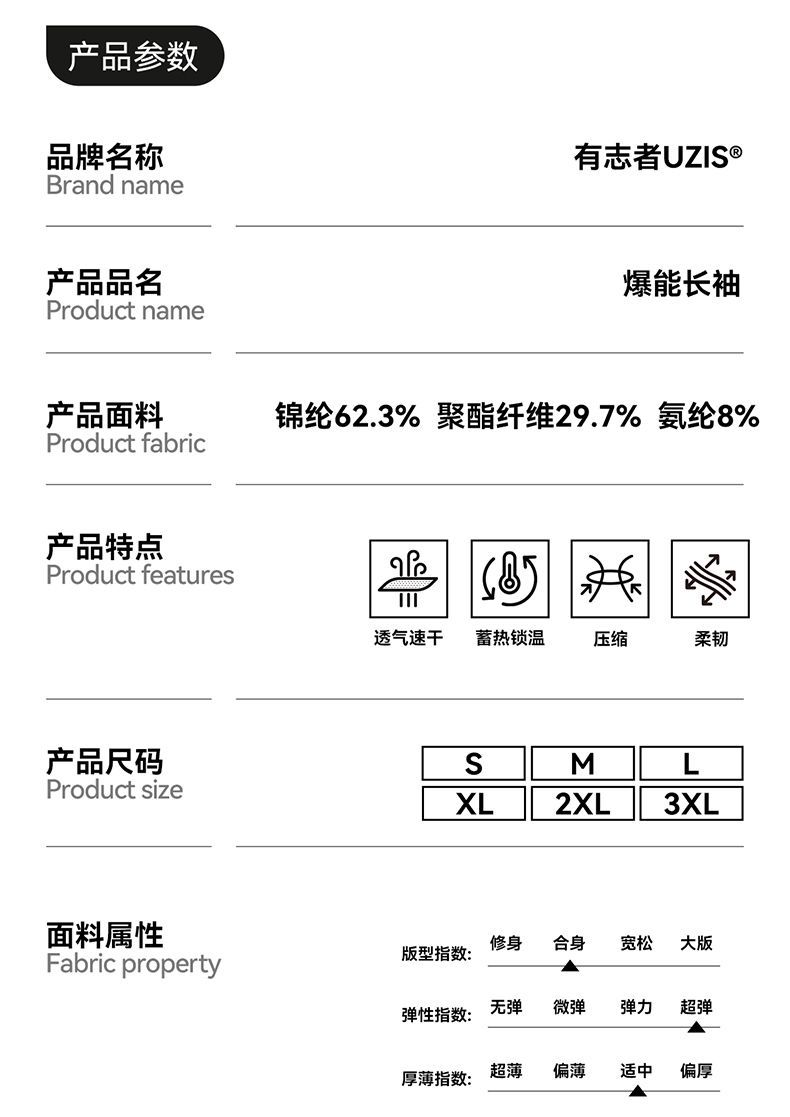 有志者UZIS新款运动紧身衣秋季长袖篮球实战男高弹专业训练服爆能