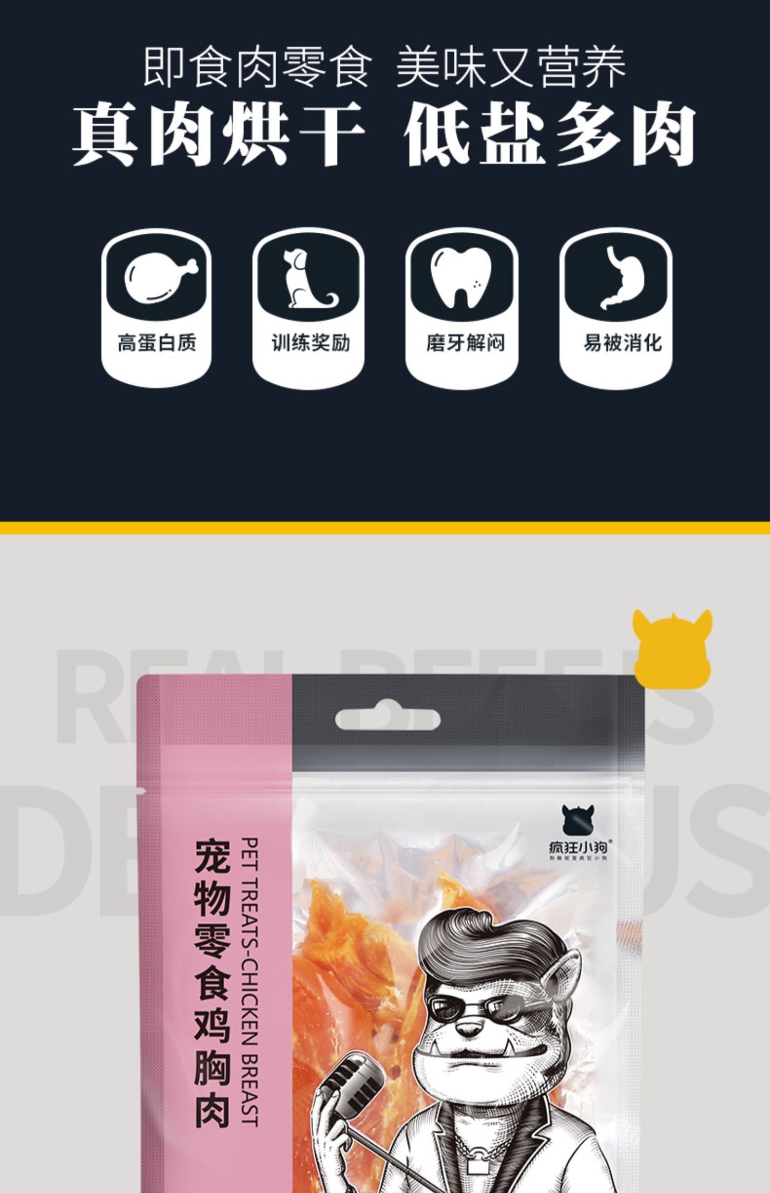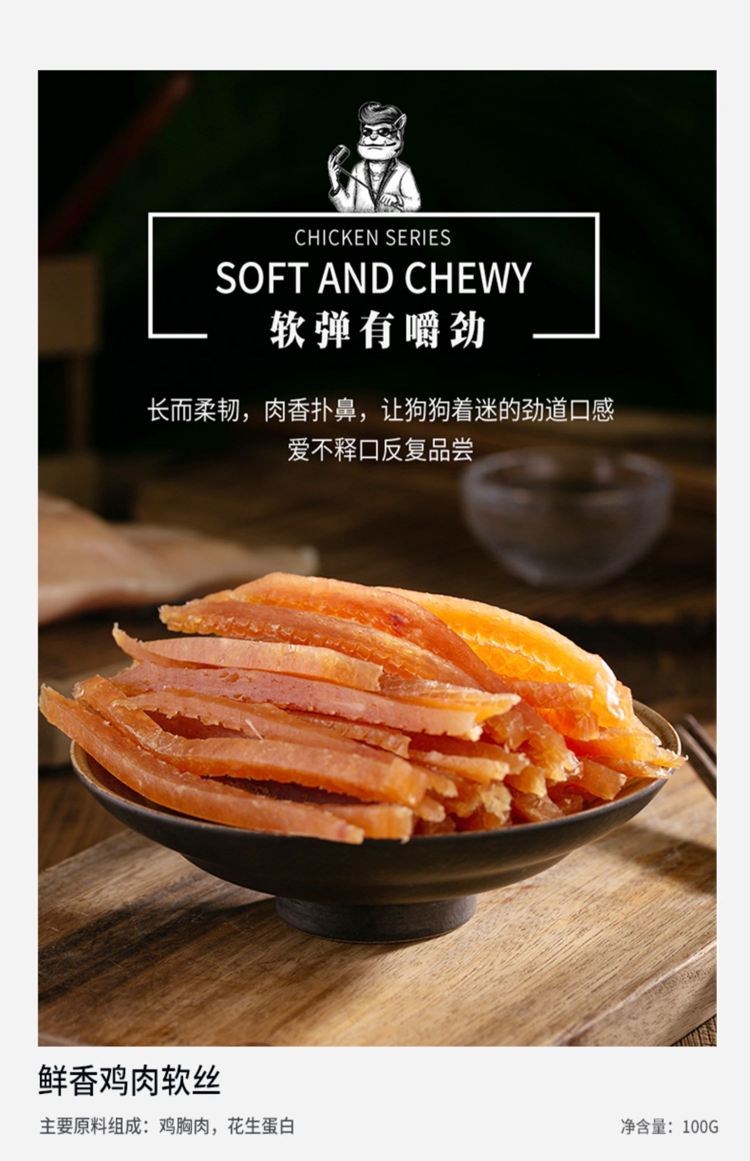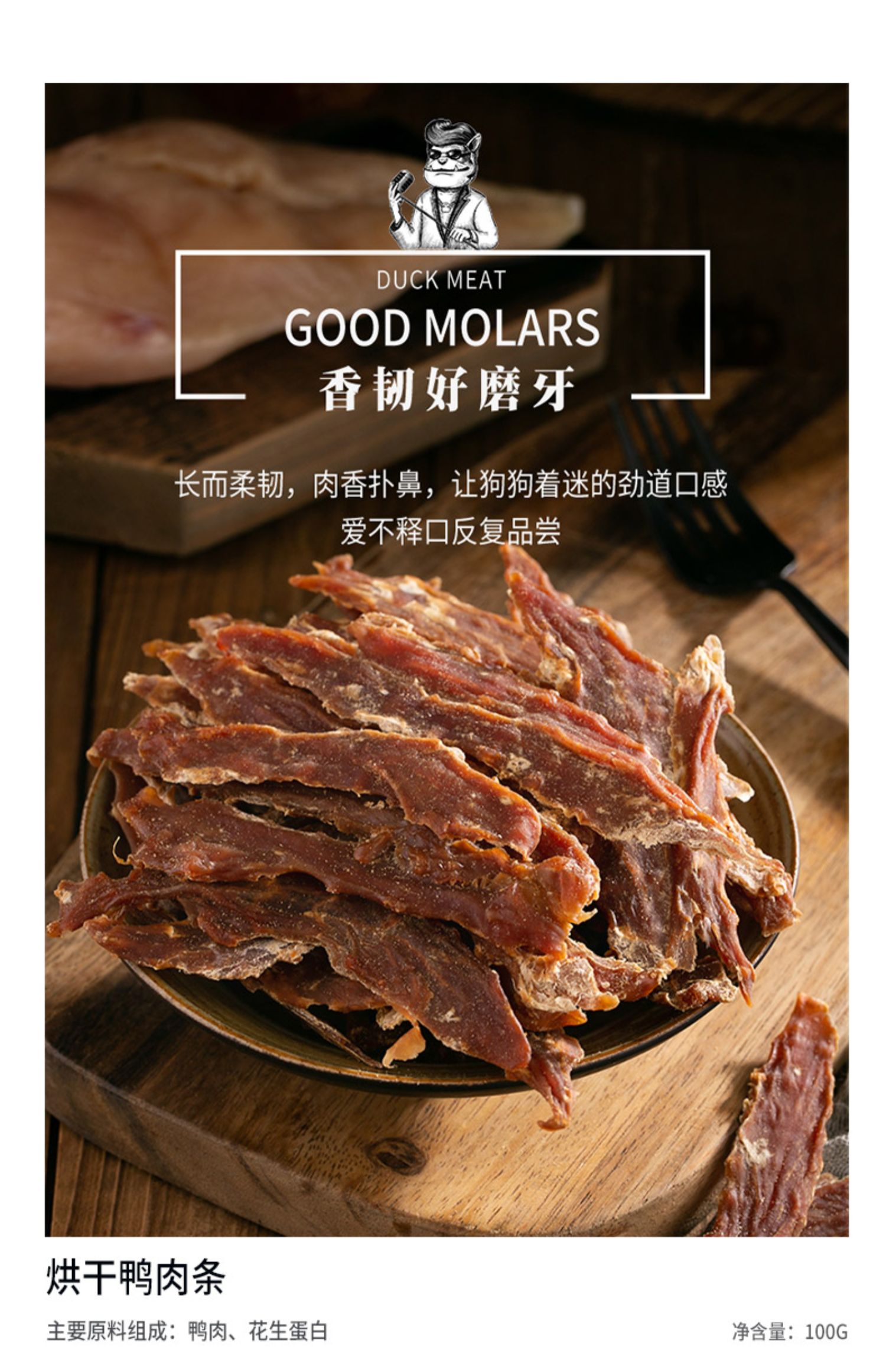 疯狂小狗 黄金鸡肉软丝/烘干鸭肉条 100g