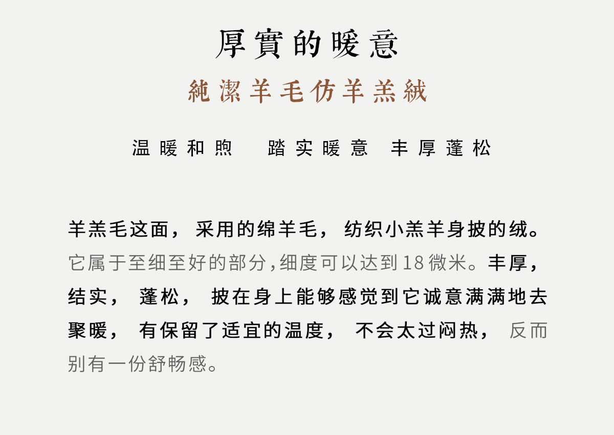- 让内心温暖,让情感自由。坚持传统的手工作物,坚持匠心的制作精神。