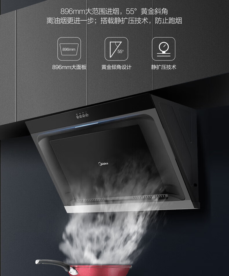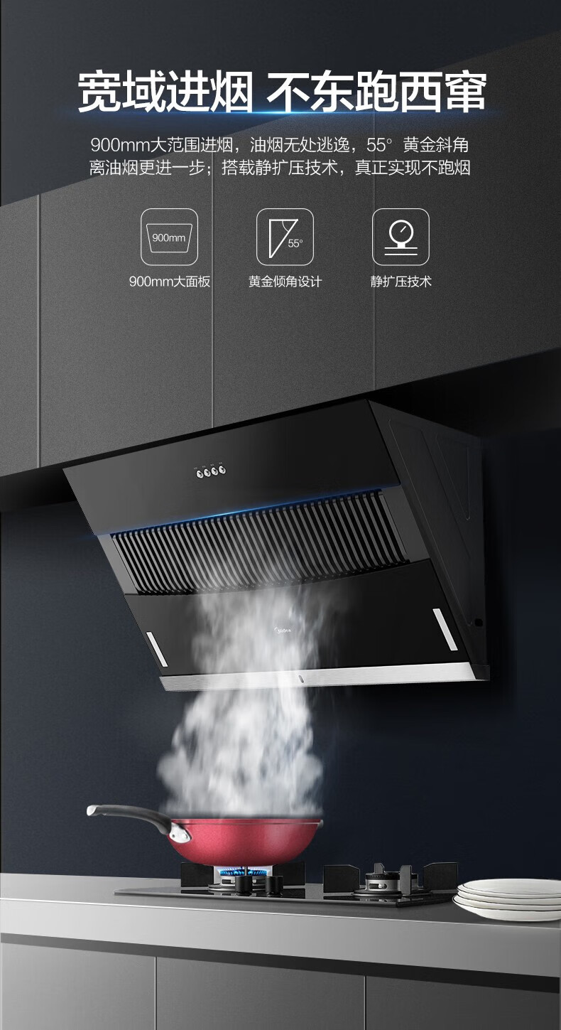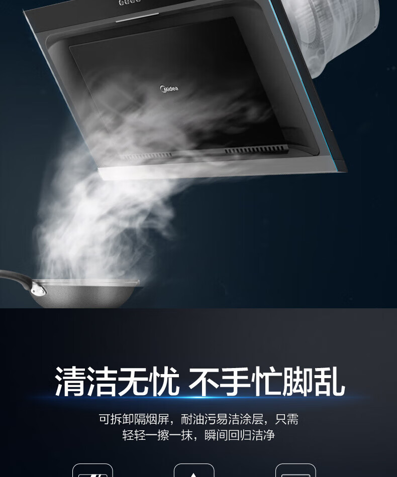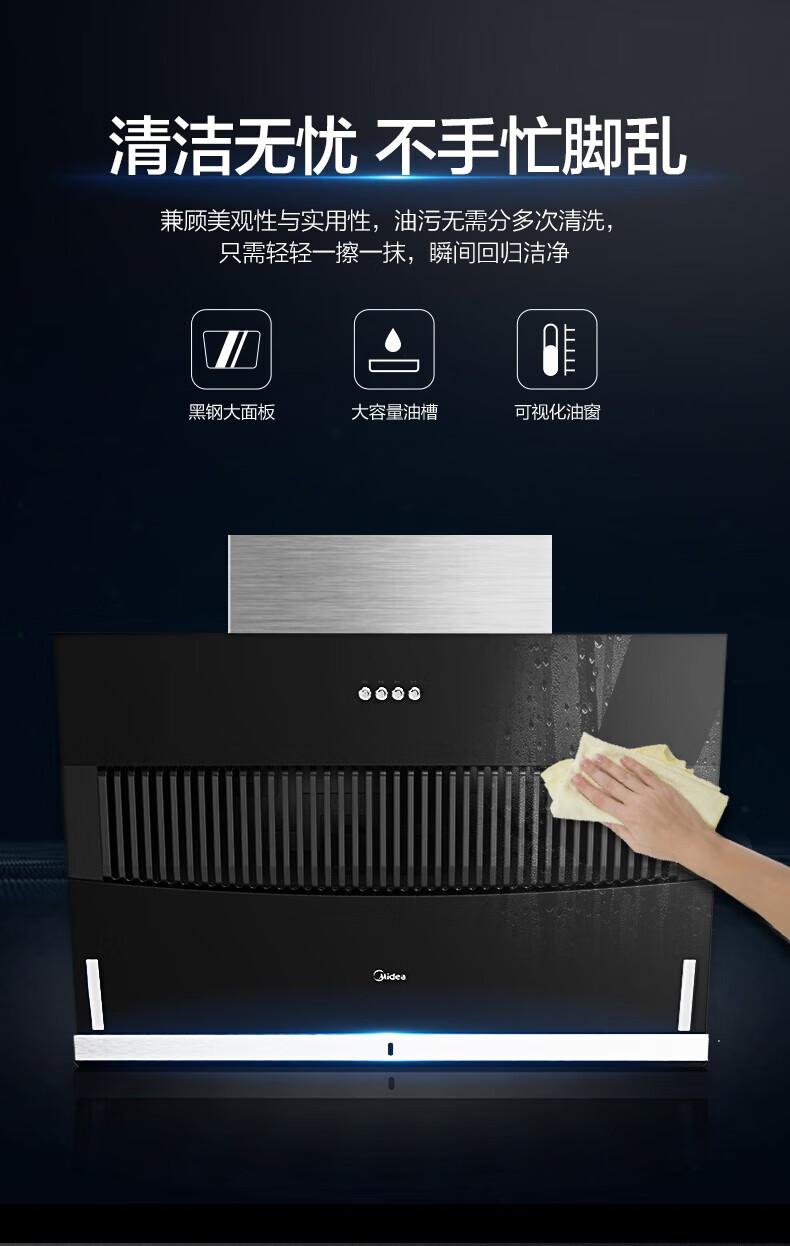 Midea美的CXW-200-JMY1侧吸型烟机 按键冷轧板喷涂玻璃大吸力JMY1 标准