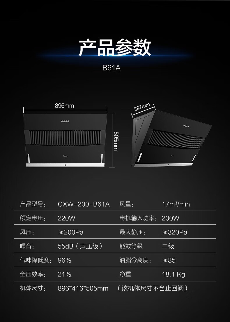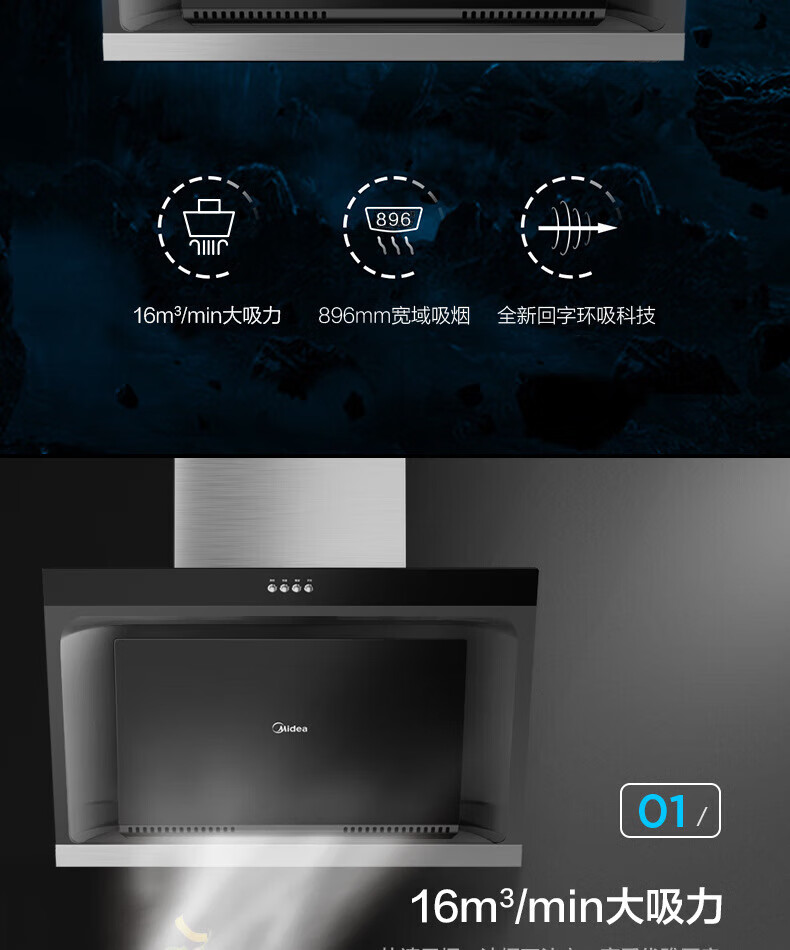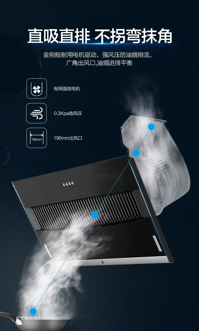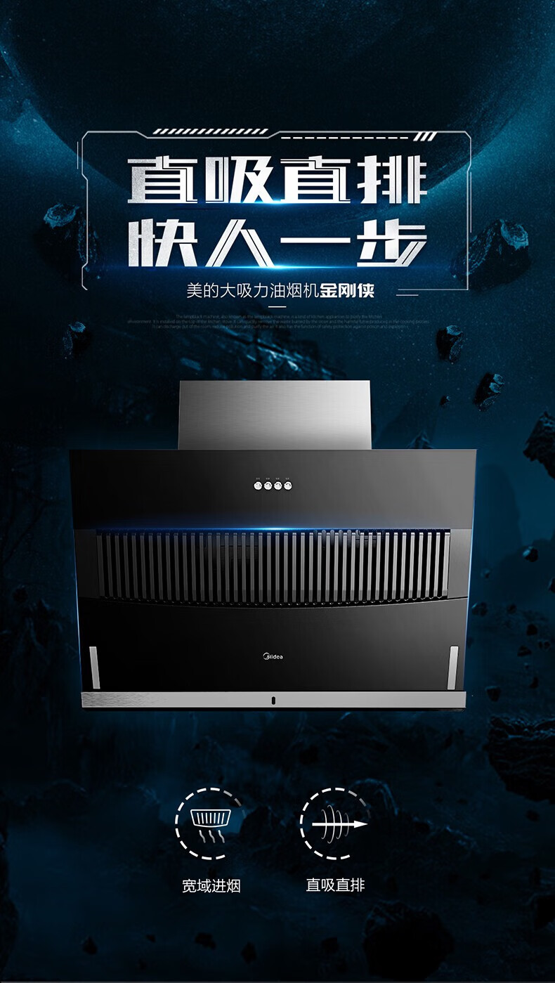 Midea美的CXW-200-JMY1侧吸型烟机 按键冷轧板喷涂玻璃大吸力JMY1 标准