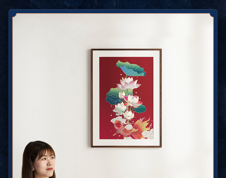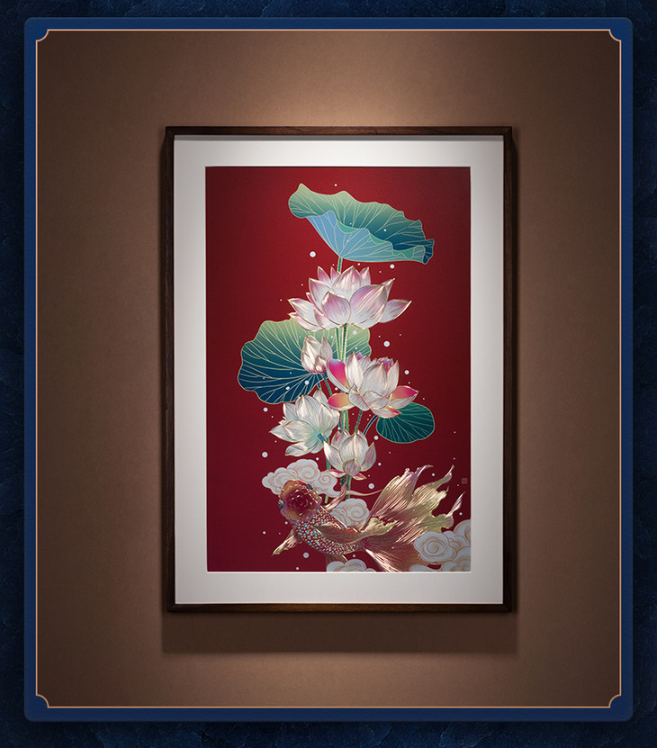 铜师傅 手工錾刻 铜雕画《荷花金鱼》玄关沙发背景墙客厅装饰画