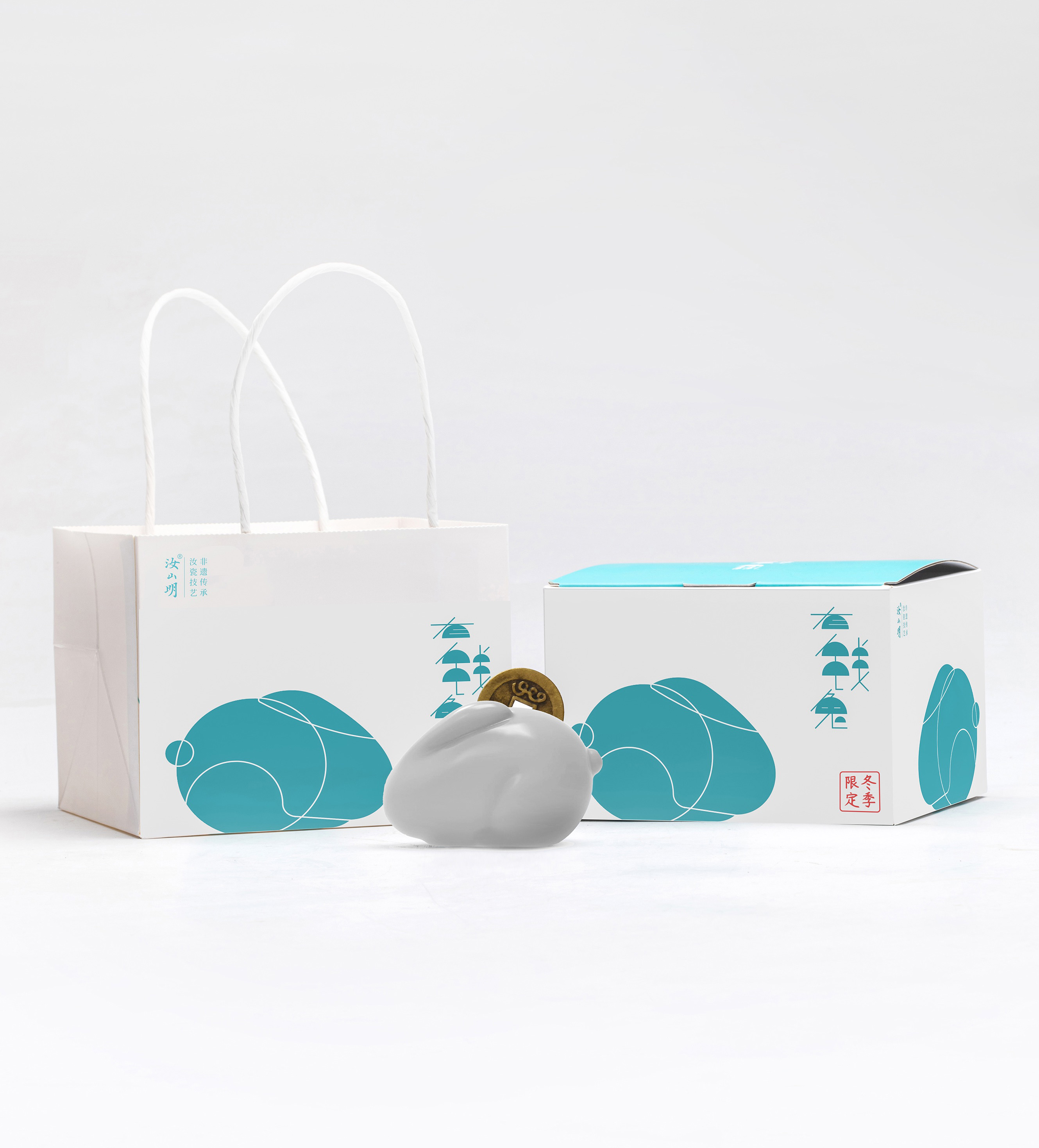汝窑摆件卯兔年新品(有钱兔),汝窑小摆件,背后背着钱币,寓意:too rich 兔有钱来