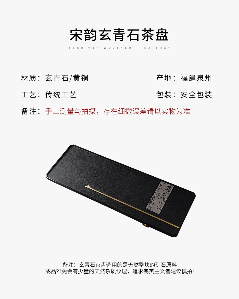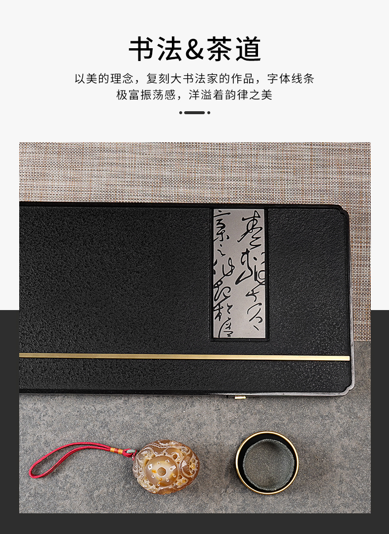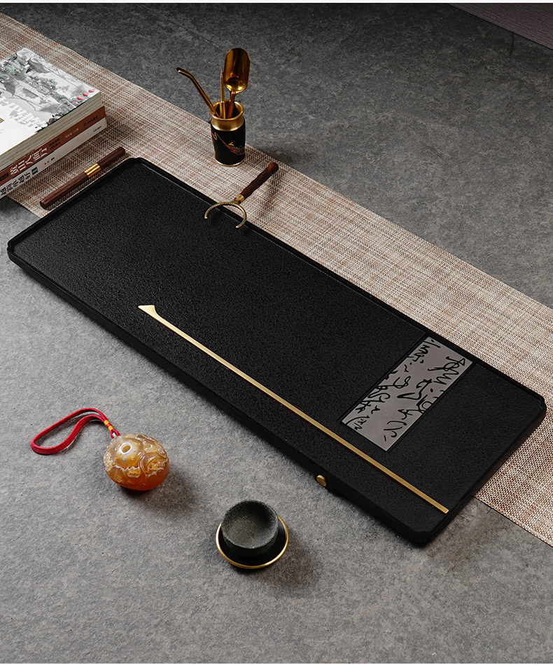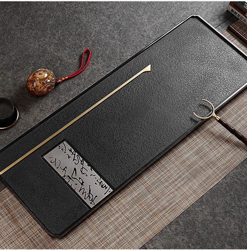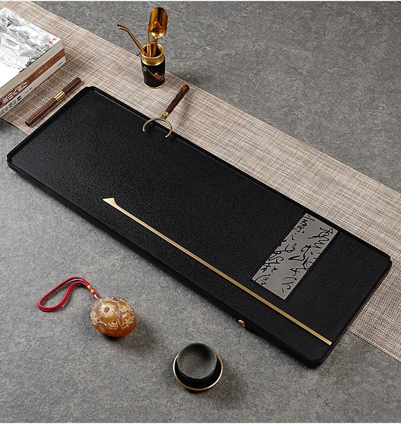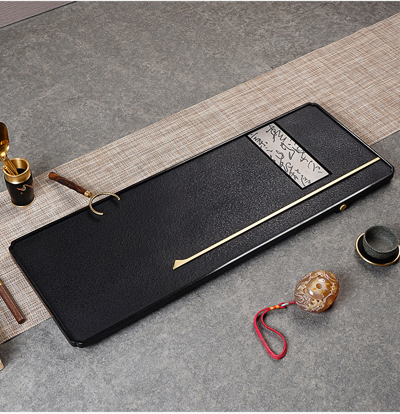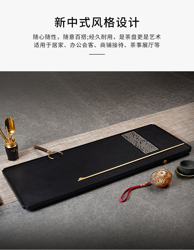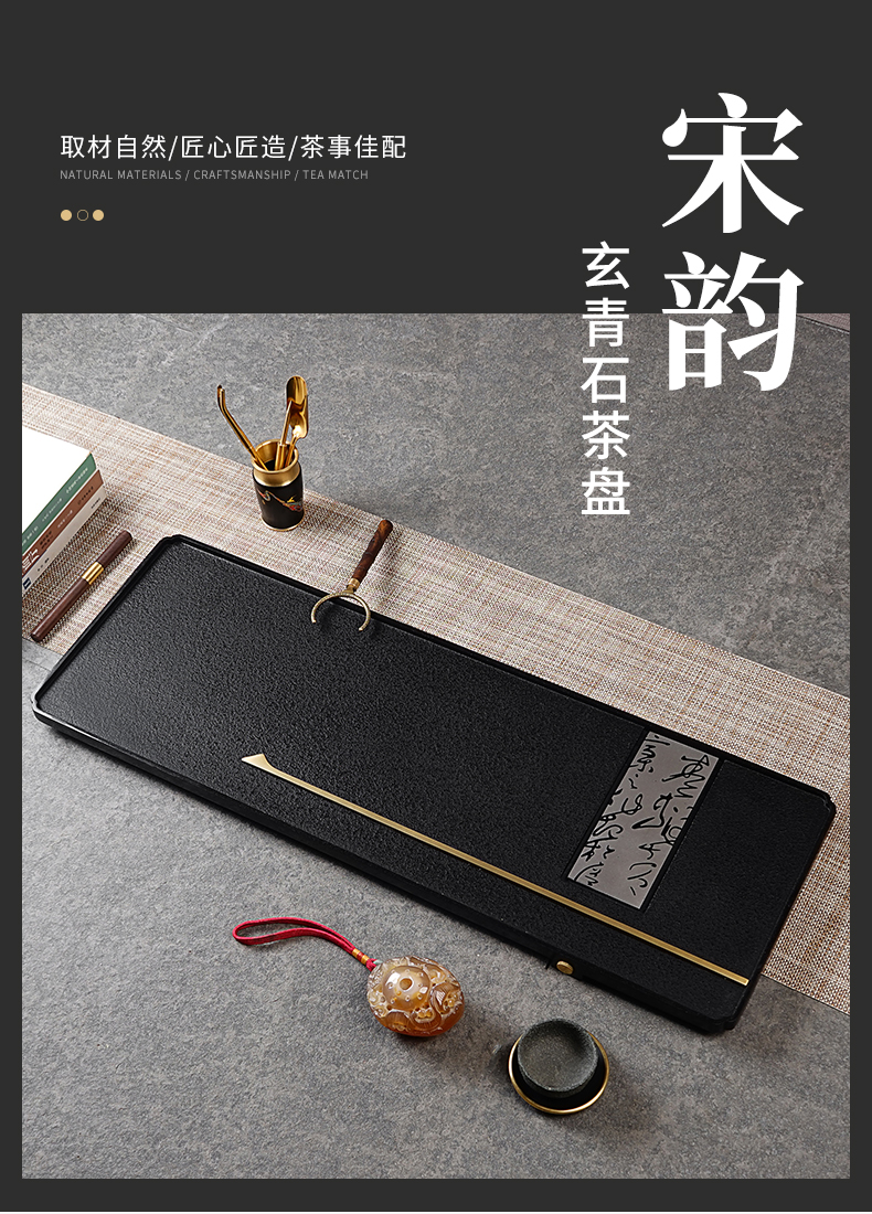 【预订款三天内发货】锦绣-宋韵天然玄青石茶盘家用简约排水式茶具(80*30*3cm)整块石头茶台