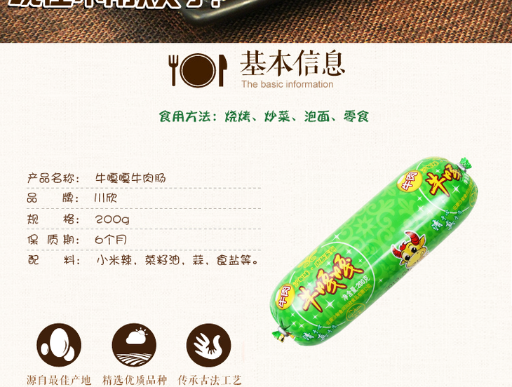 云南沙甸清真食品川欣牛嘎嘎肉肠200g