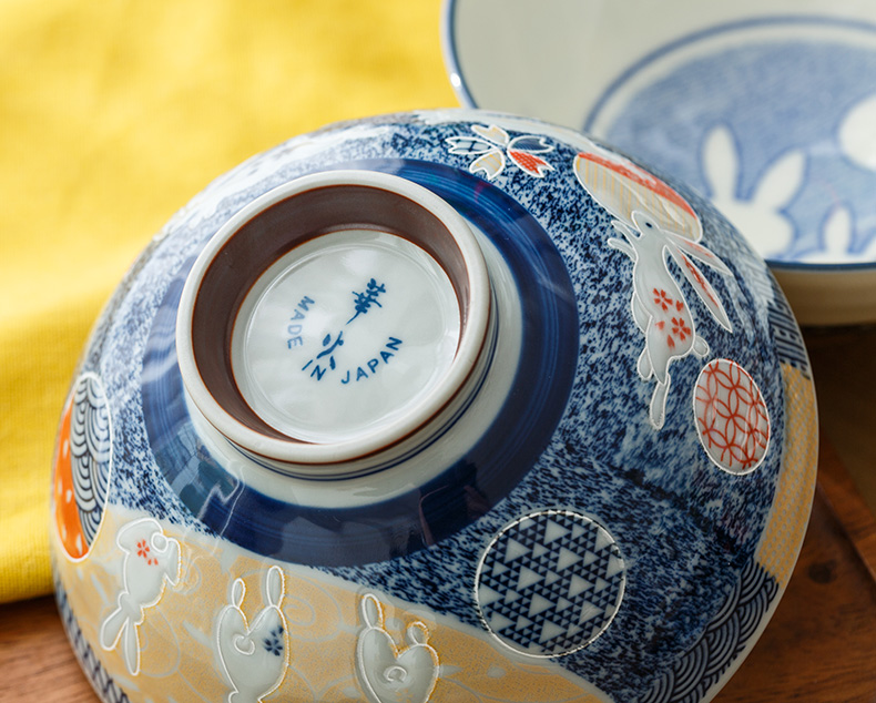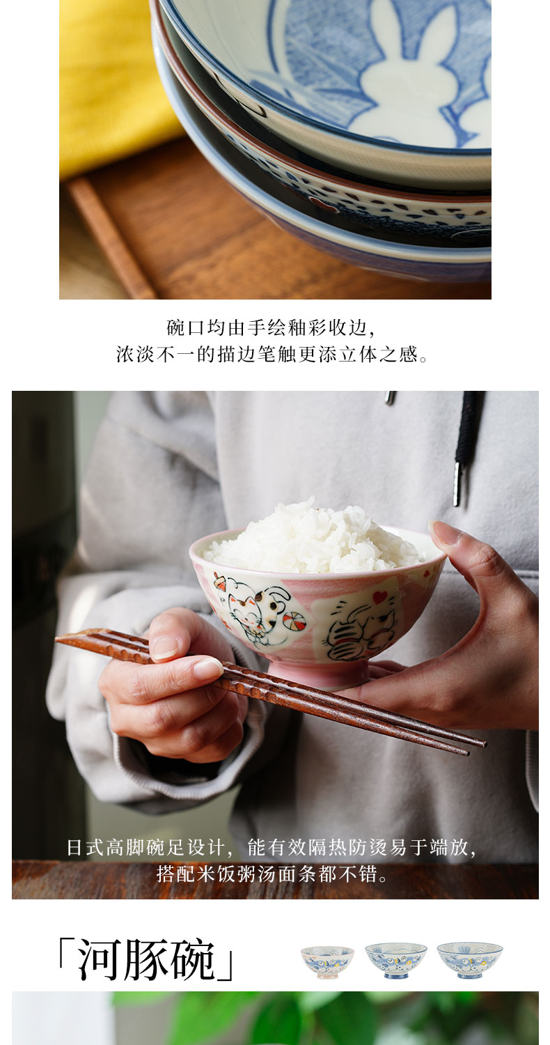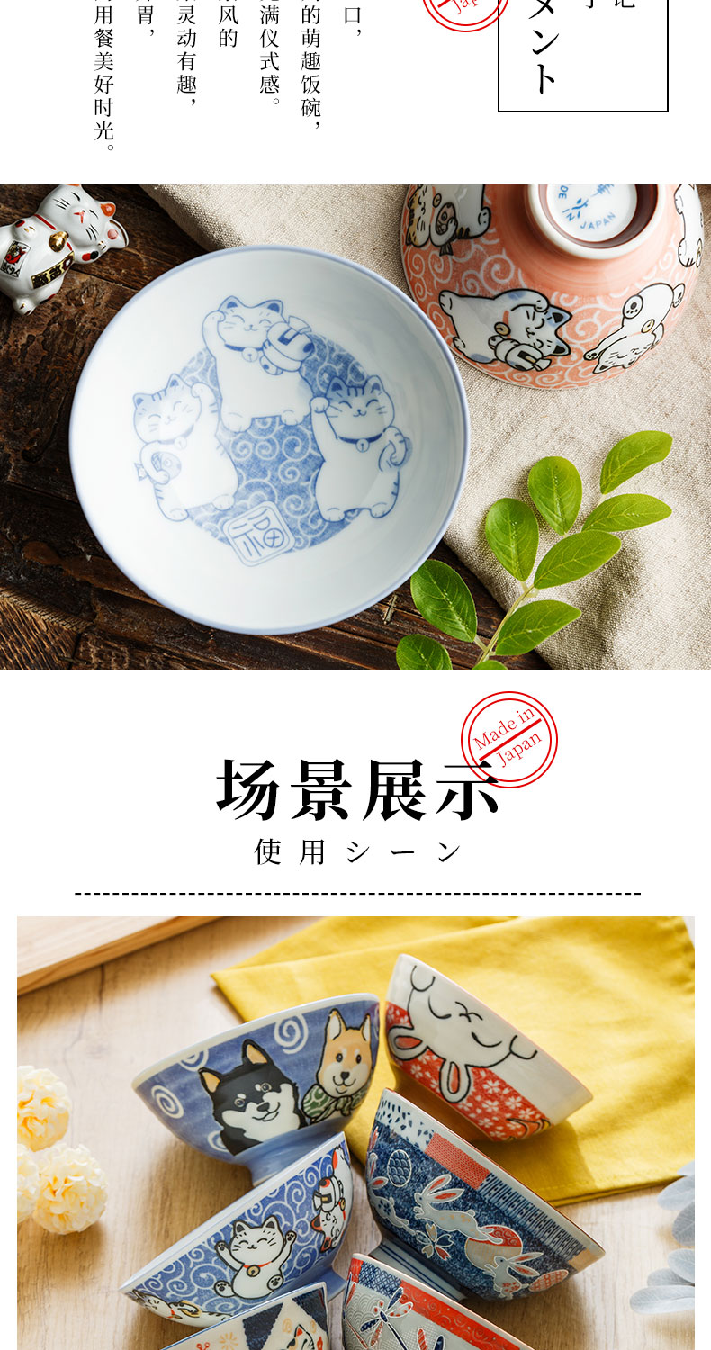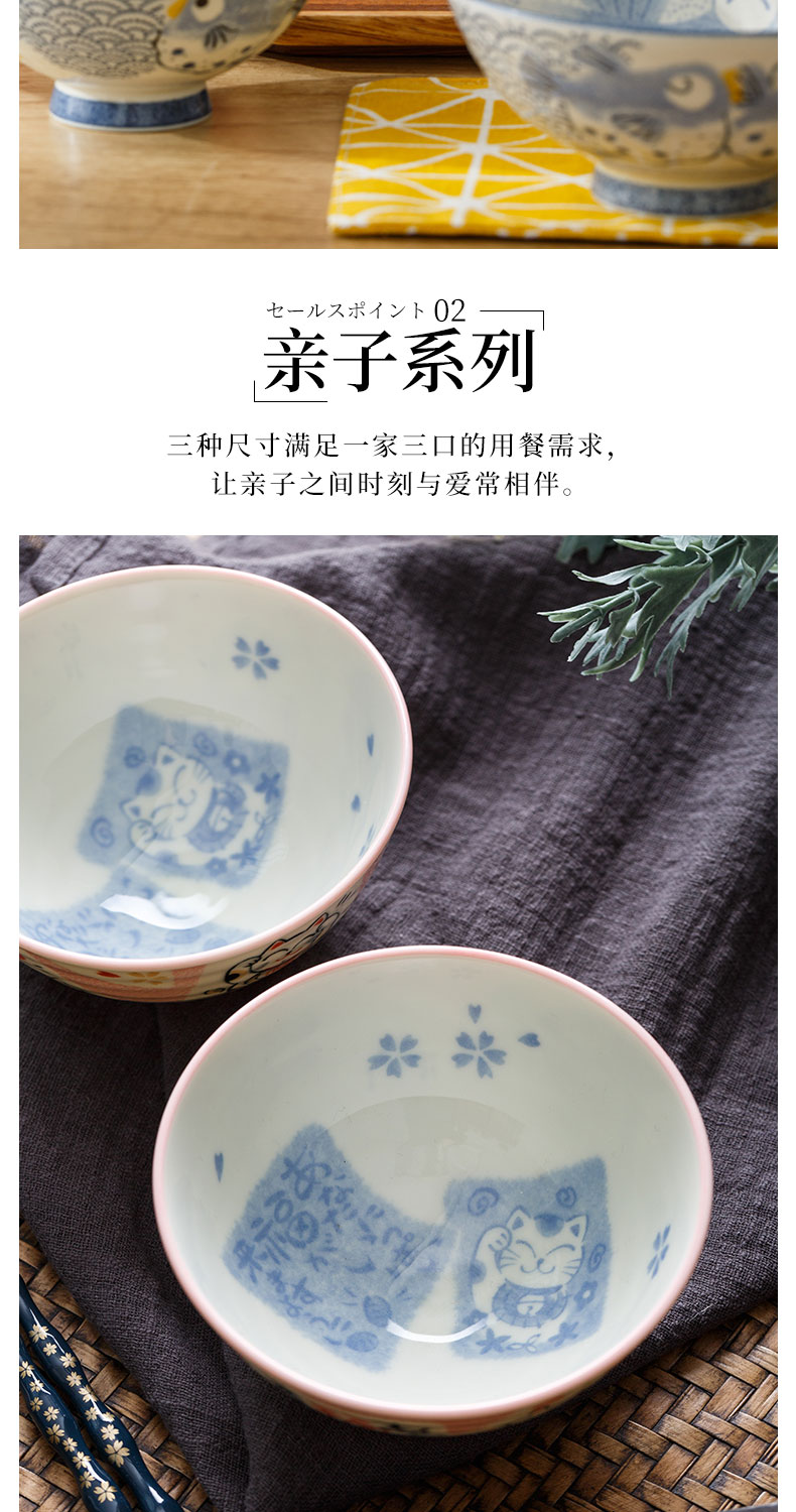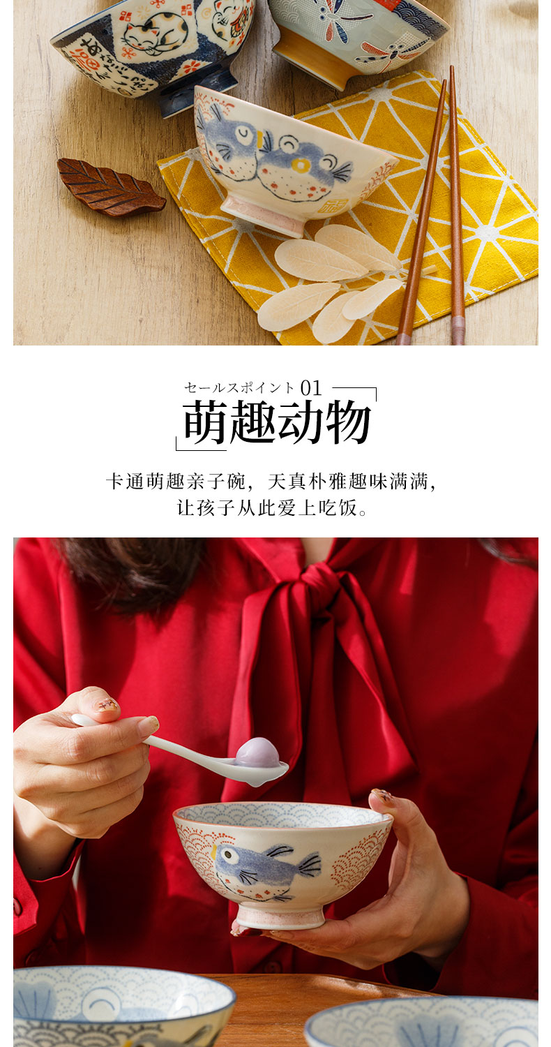 美浓烧儿童饭碗日本原装进口餐具家用日式可爱瓷碗陶瓷碗釉下彩散件碗