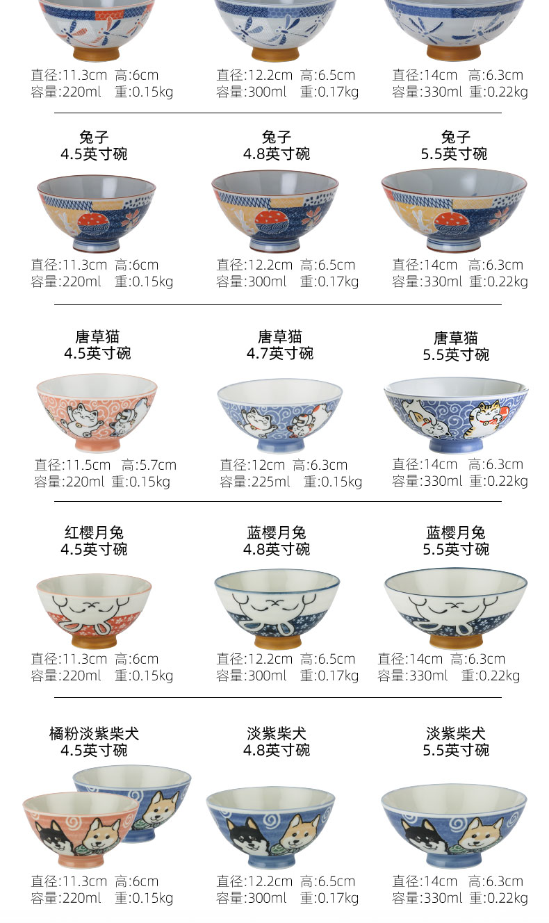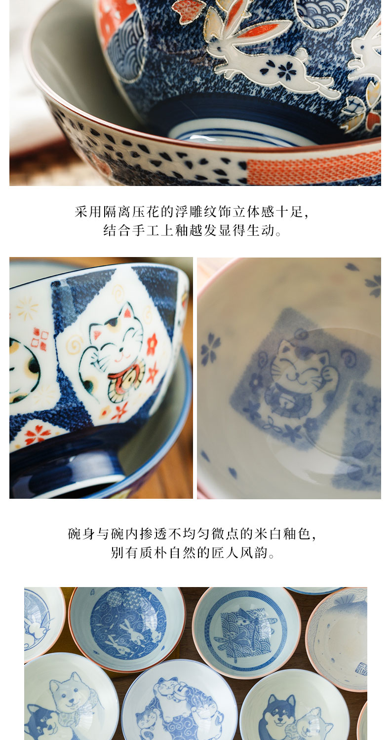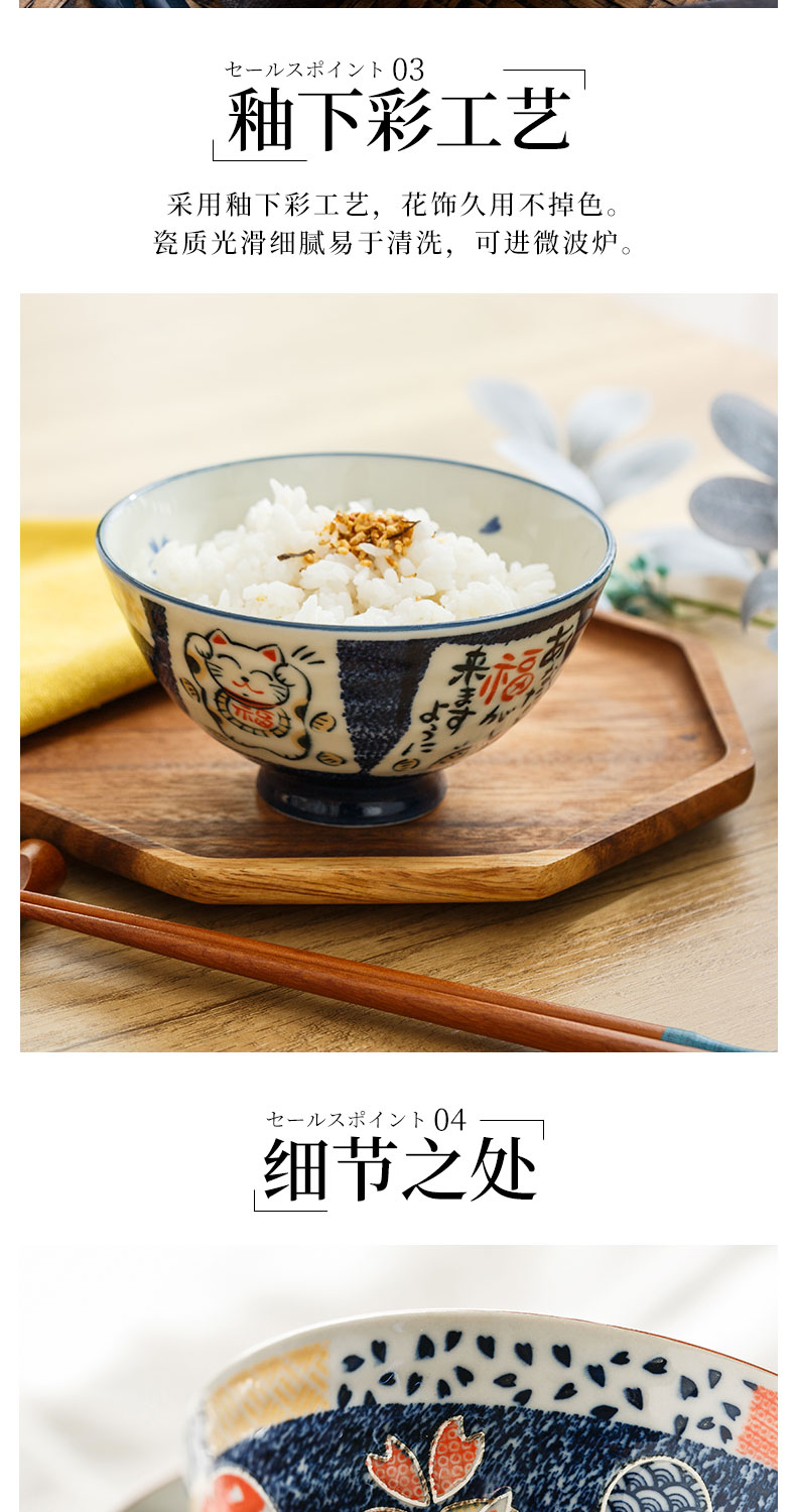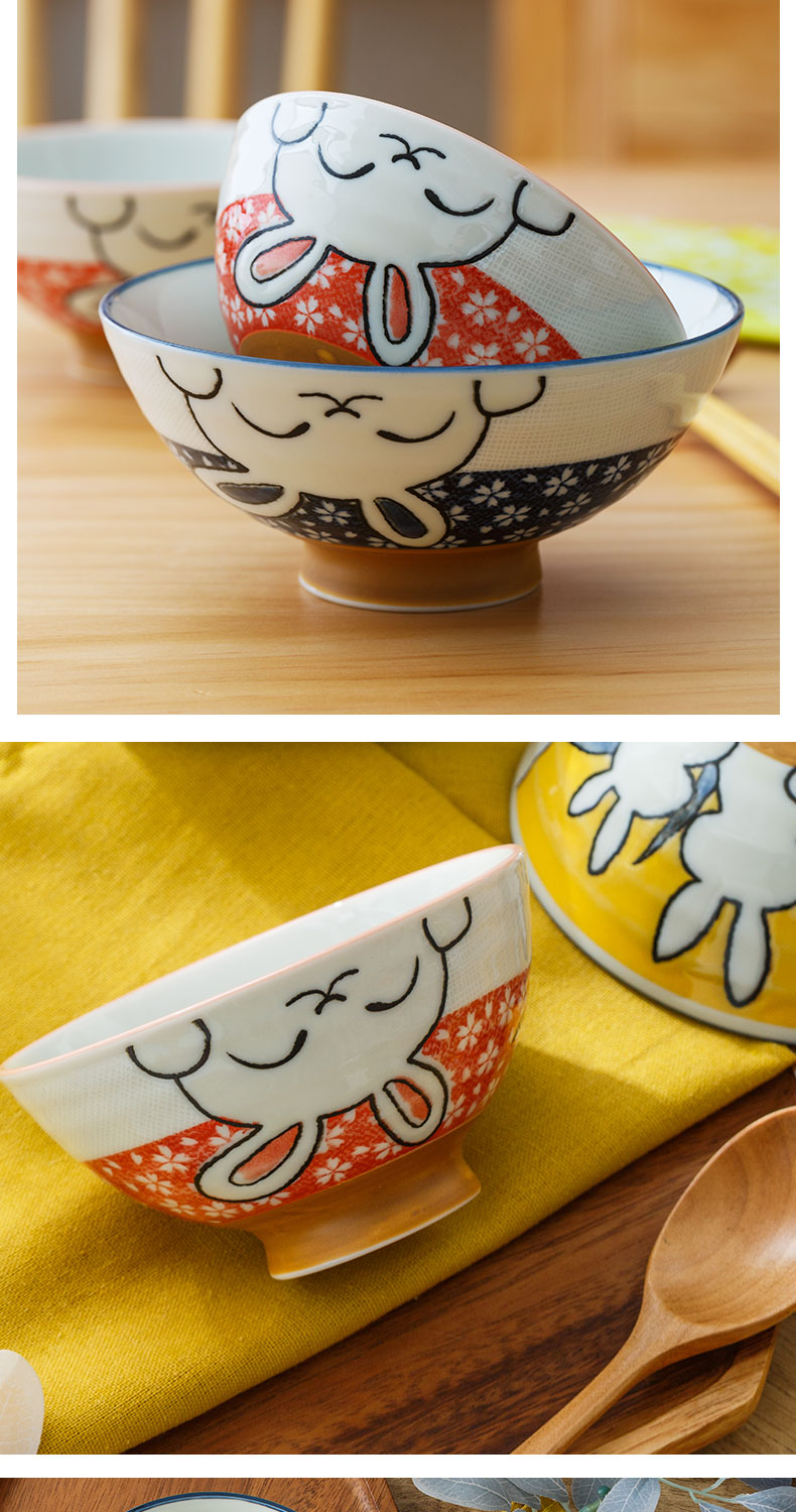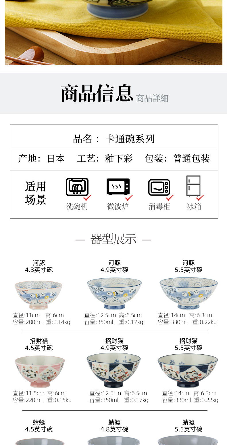 美浓烧儿童饭碗日本原装进口餐具家用日式可爱瓷碗陶瓷碗釉下彩散件碗