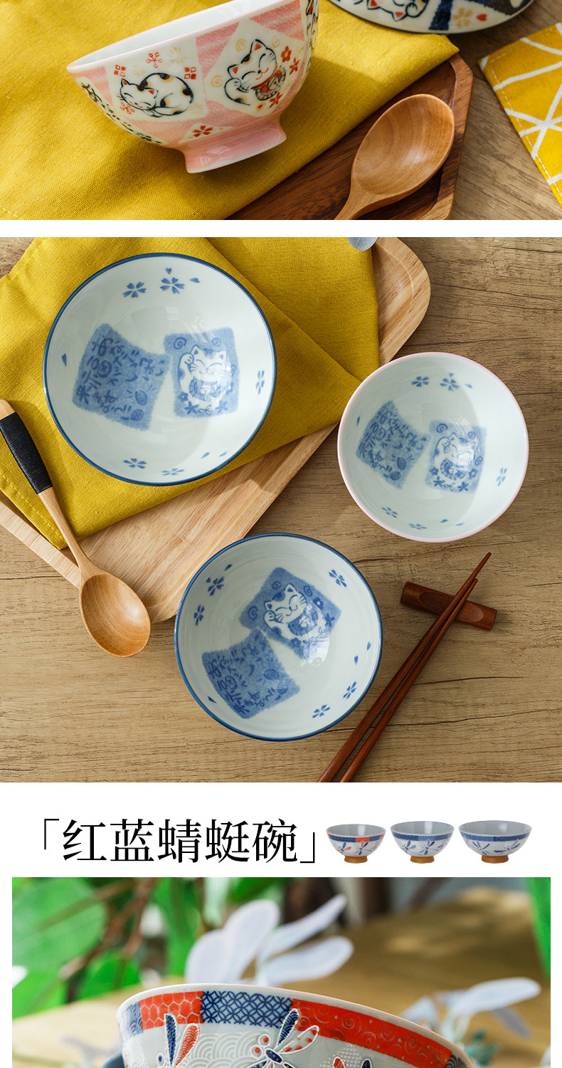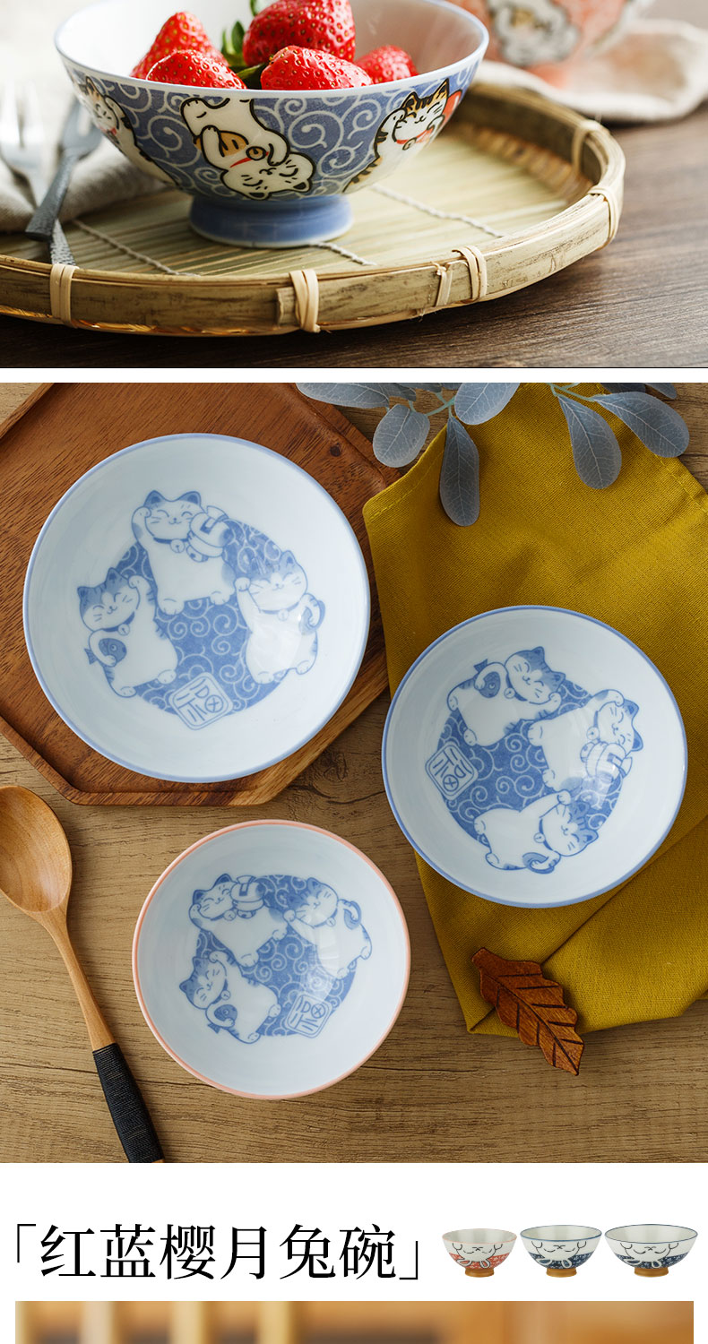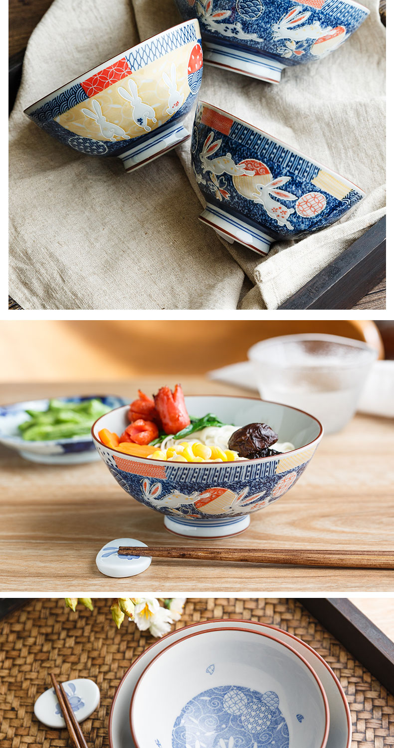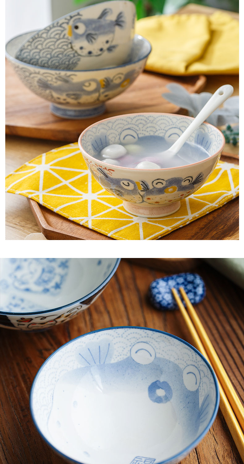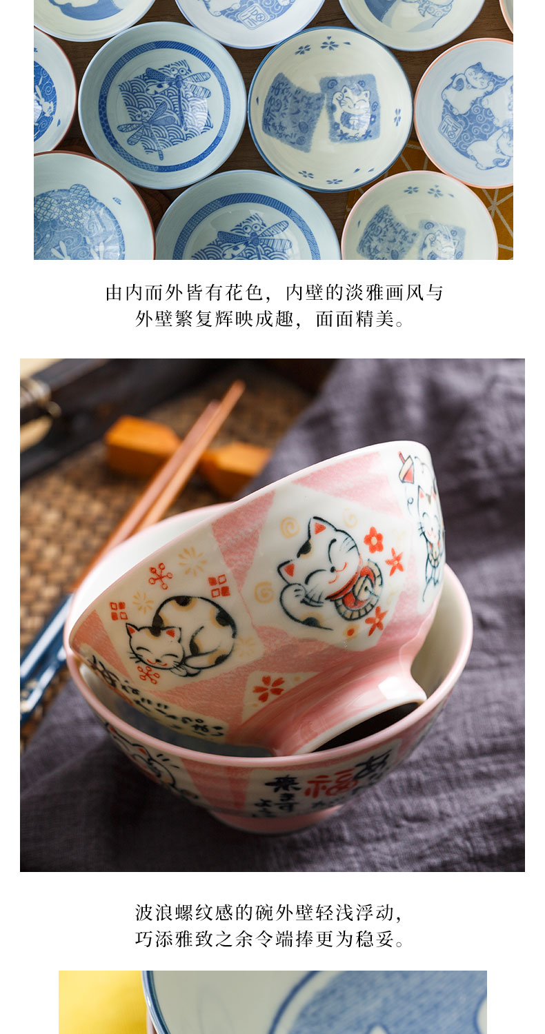美浓烧儿童饭碗日本原装进口餐具家用日式可爱瓷碗陶瓷碗釉下彩散件碗