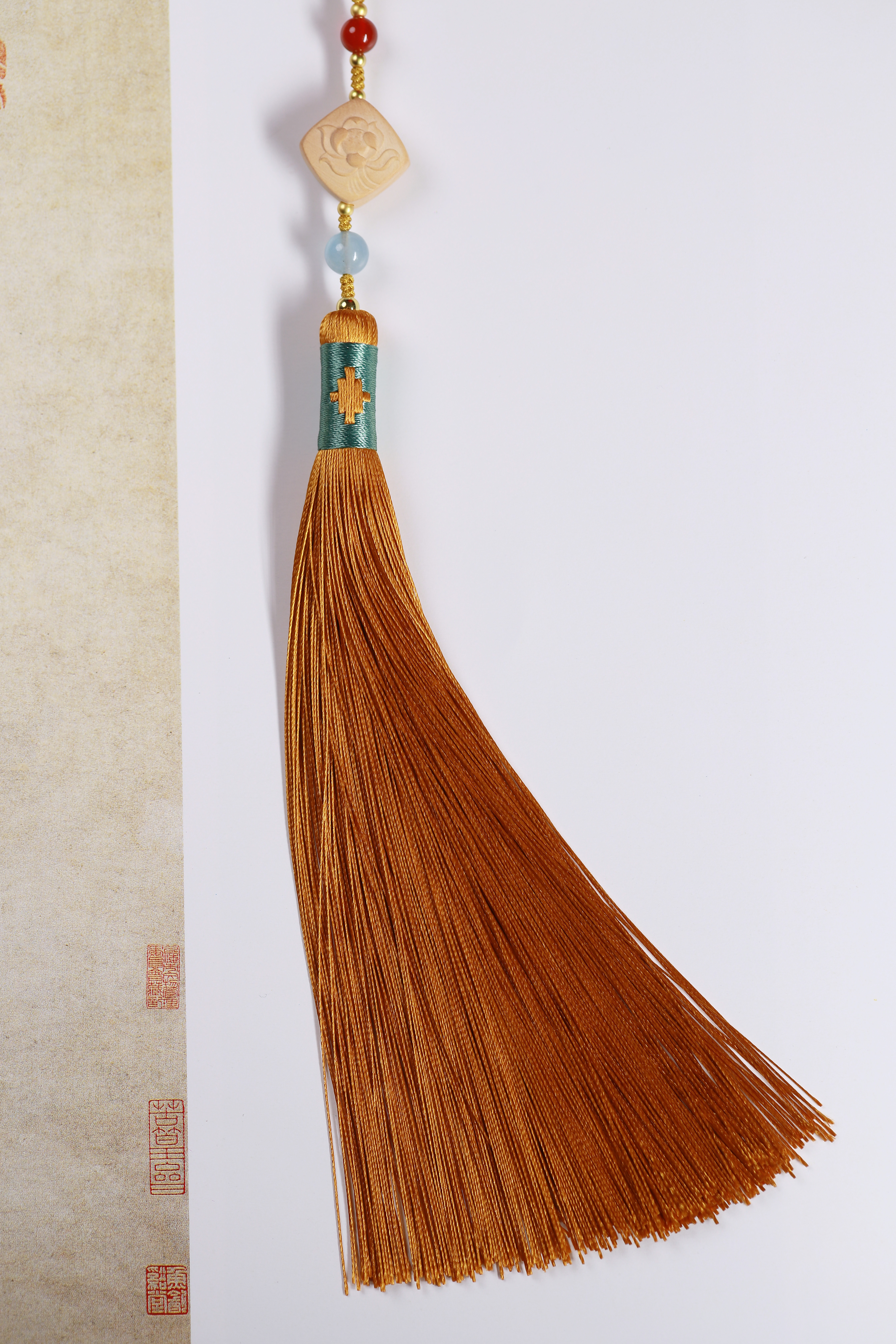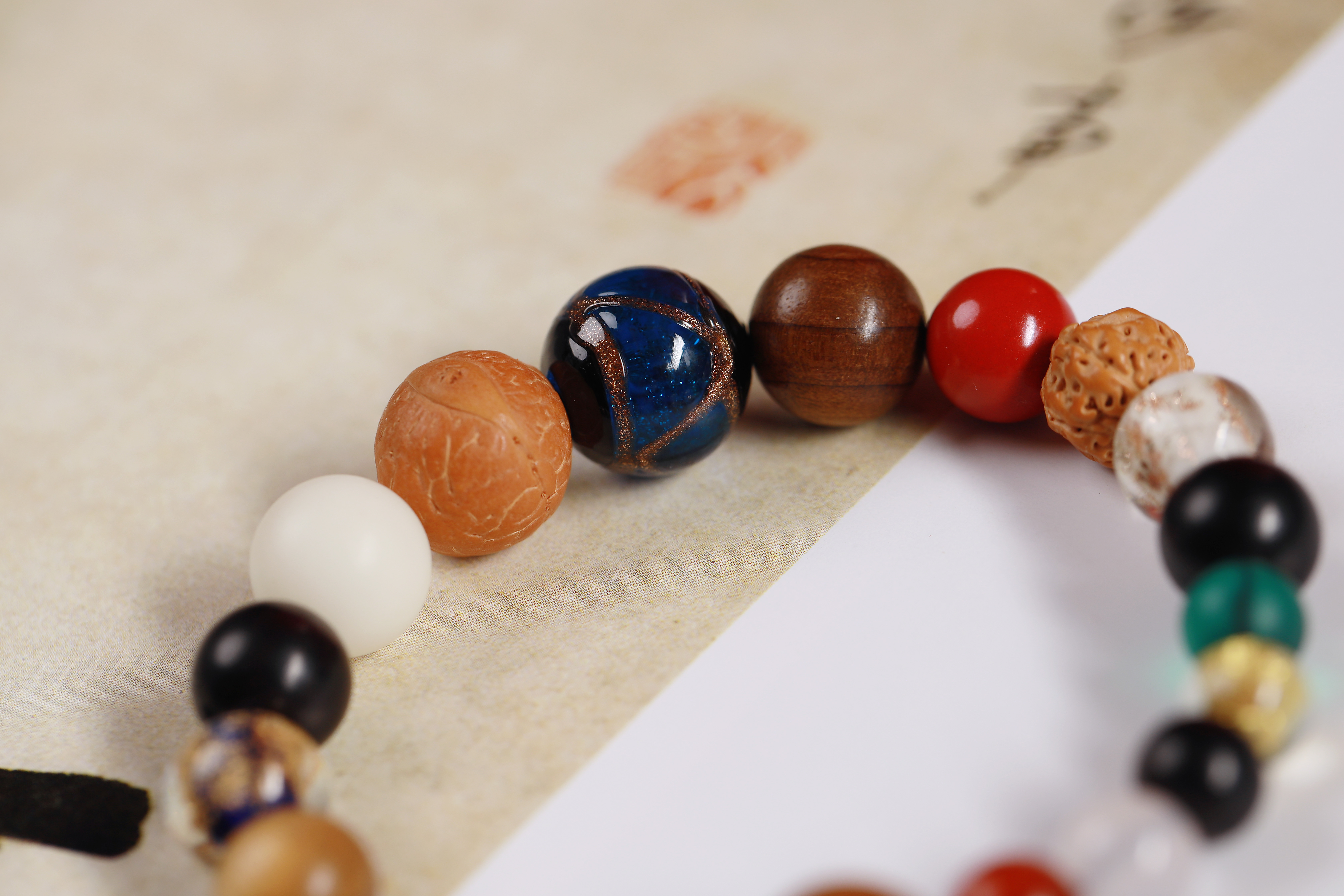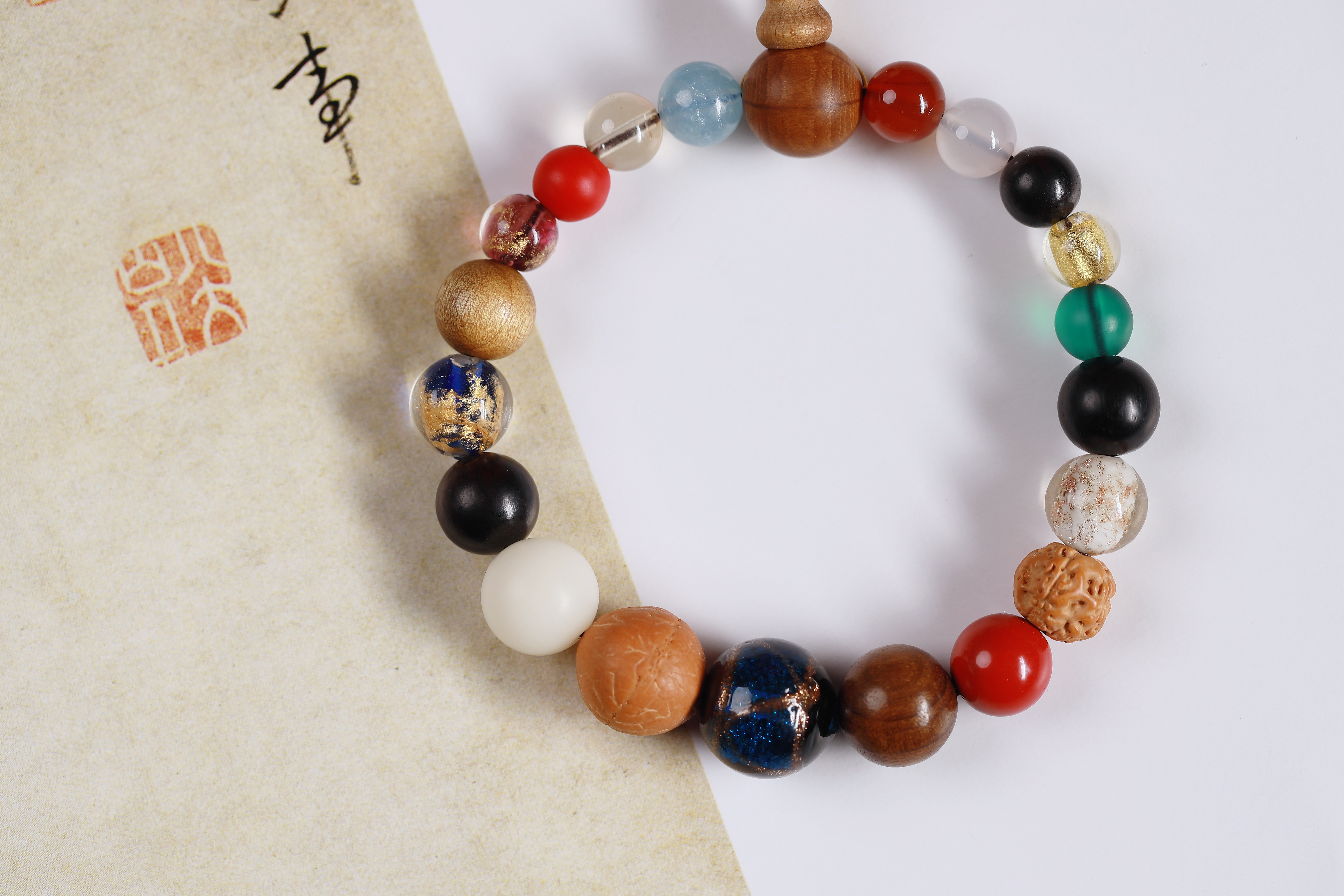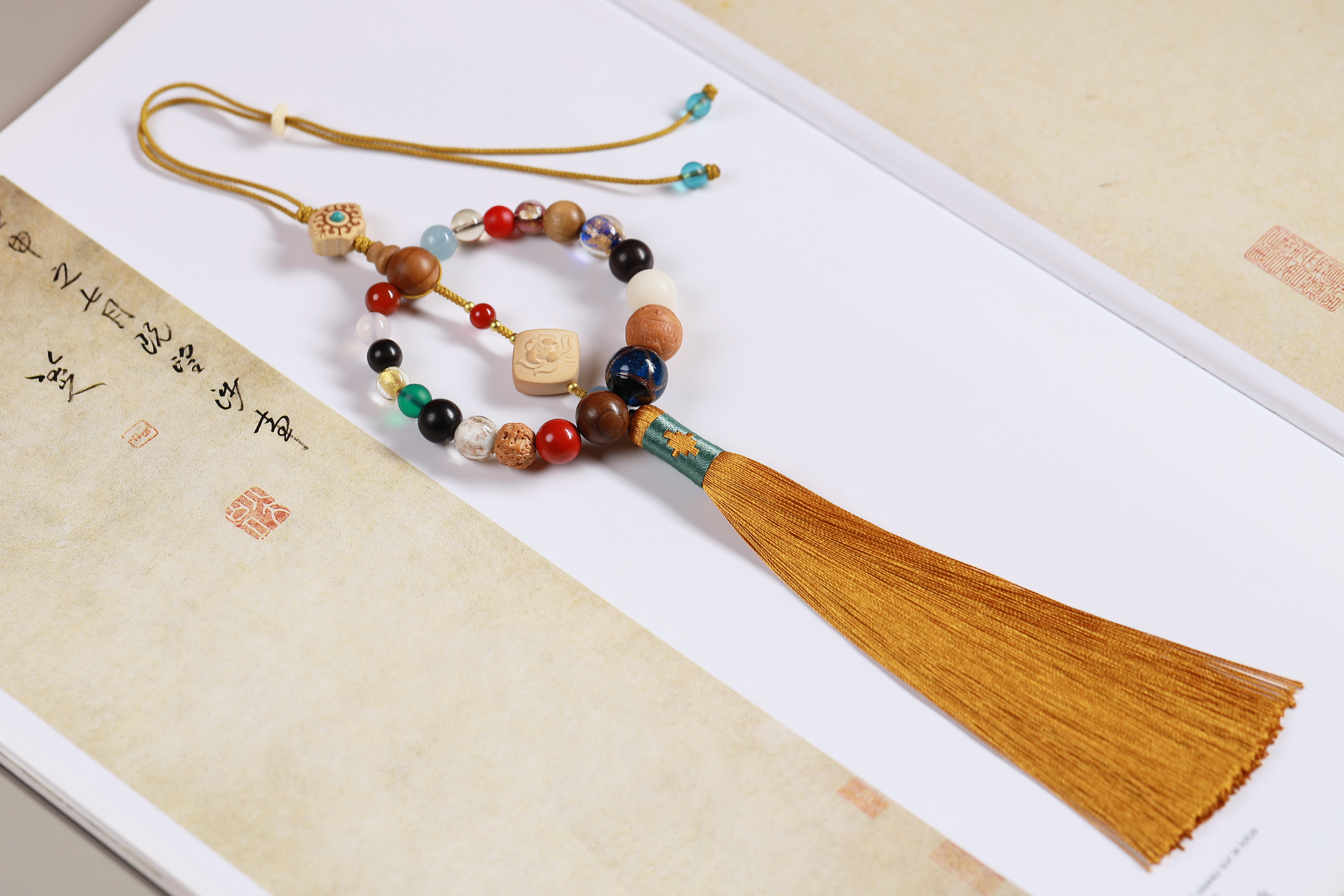 配件:六道木三通/金丝楠佛塔/紫光檀/凤眼菩提/白菩提根/老料金丝楠/红玛瑙/白玛瑙/黄水晶/海蓝宝/红琉璃雪巴/朱砂/金刚菩提/琉璃绿/蓝/黄杨木镶绿松尖角如意/黄杨木方块莲花/象牙果隔片/铜珠/透明香灰珠/香灰珠蓝/丰字单流苏(黄)