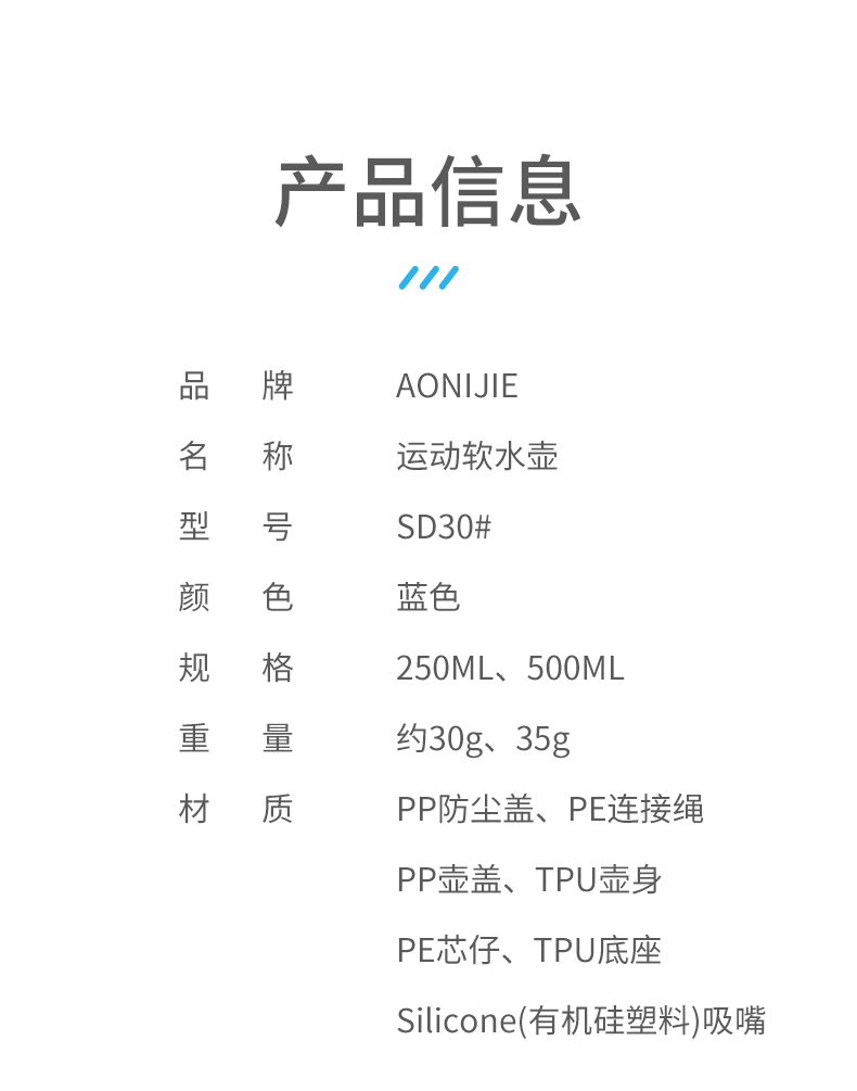 奥尼捷新款软水壶运动水壶硅胶可折叠越野马拉松补给水壶骑行水囊250ml/500ml
