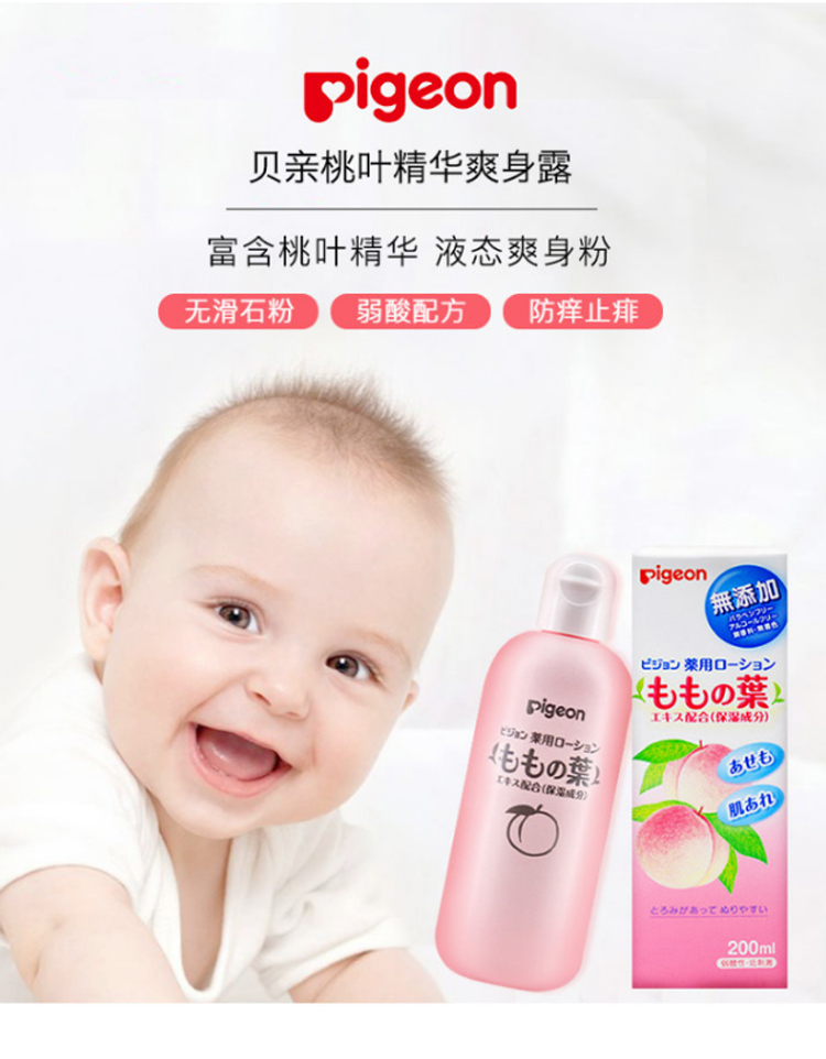 【保税仓】贝亲/pigeon 新生婴儿桃叶精华爽身露 防痱 桃子水精华洗发沐浴二合一 200ml(有效期25年10月至26年1月)