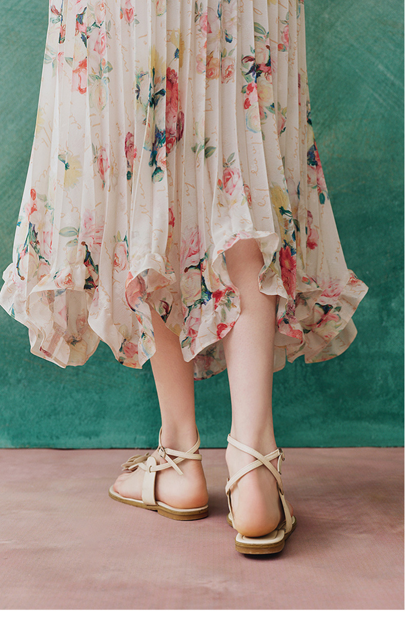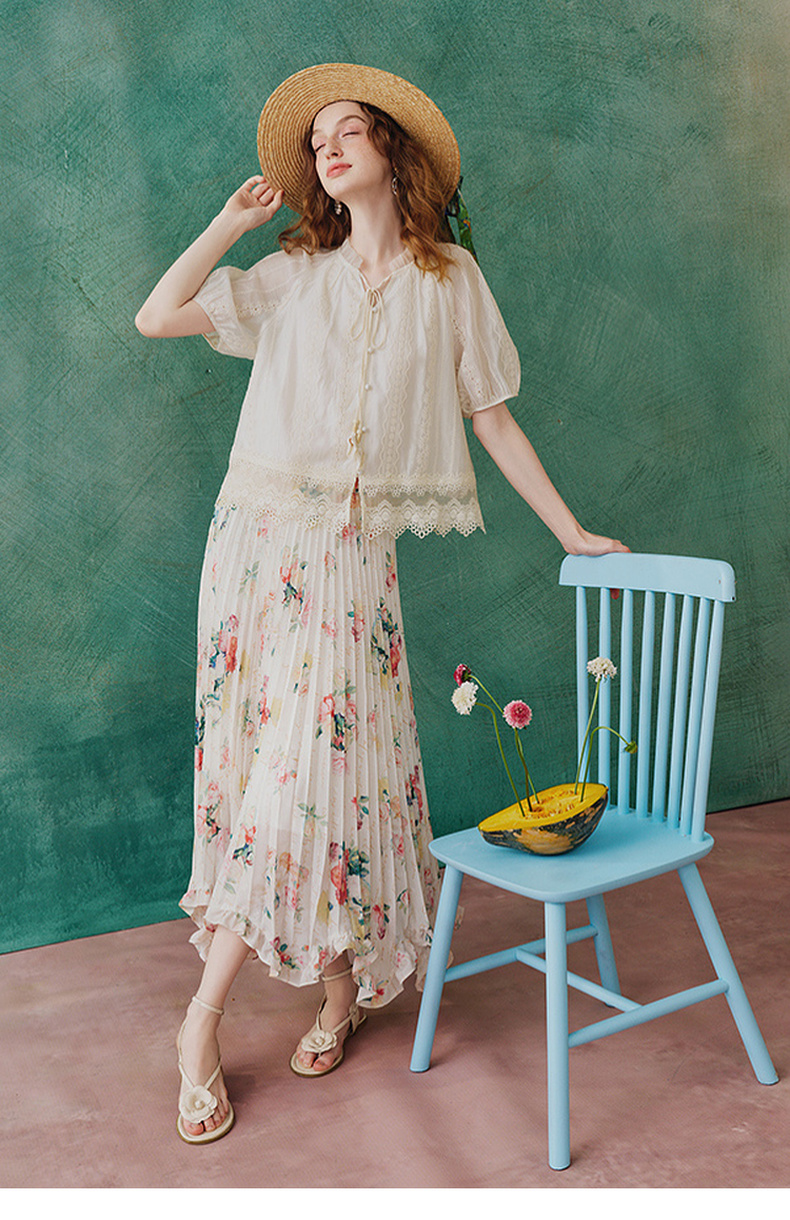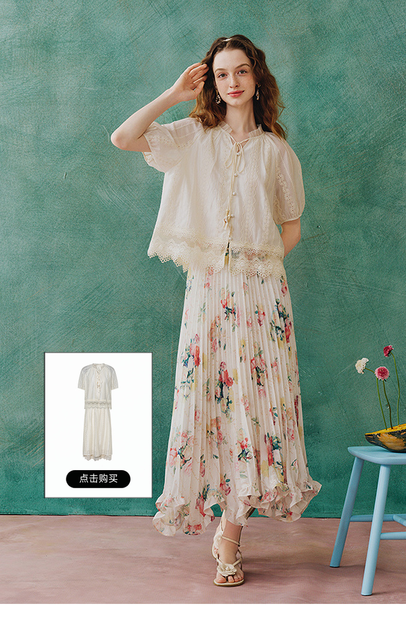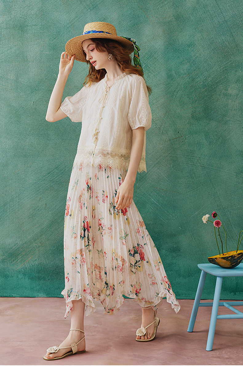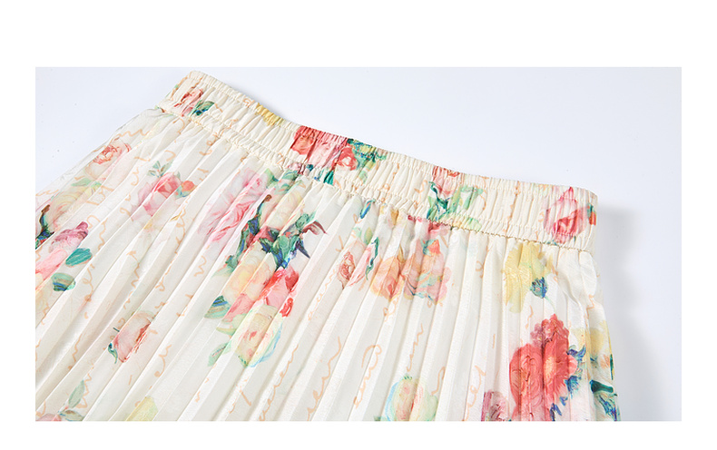 两三事馥香流动2025夏季新款复古荷叶边裙摆印花百褶裙长款半身裙