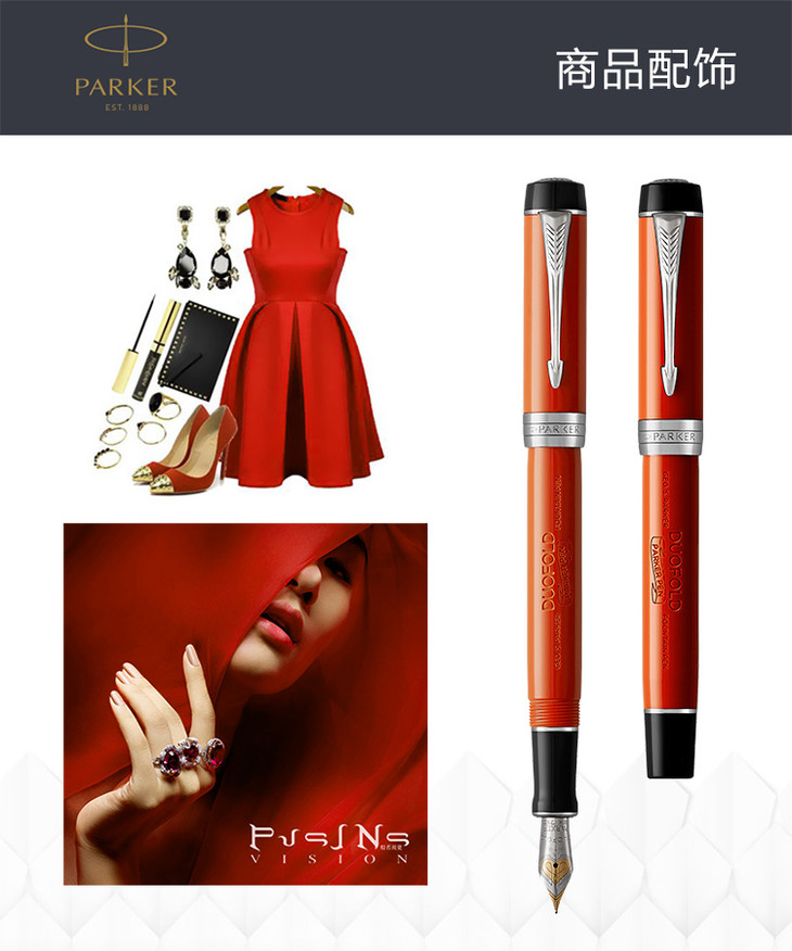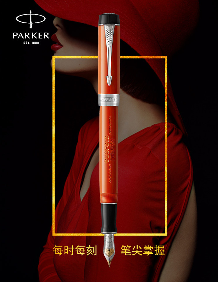派克世纪玛瑙红白夹墨水笔