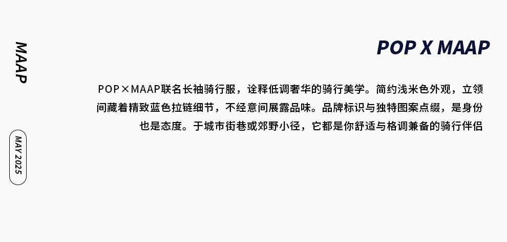 - MAAP作为澳洲功能性骑行服,其出色的时尚设计元素为骑行生活增添色彩。MAAP在为专业车手提升性能表现方面也毫不妥协。