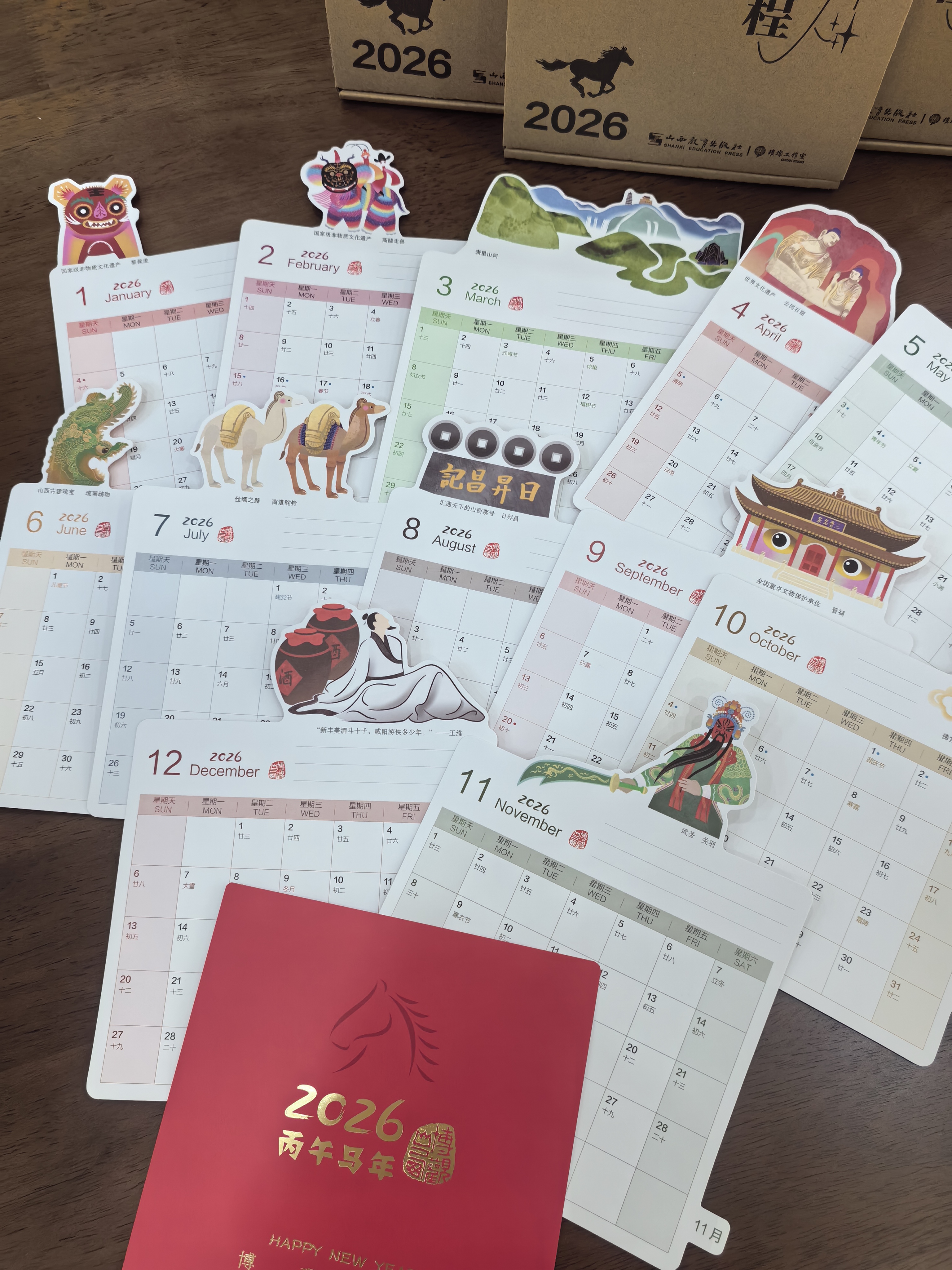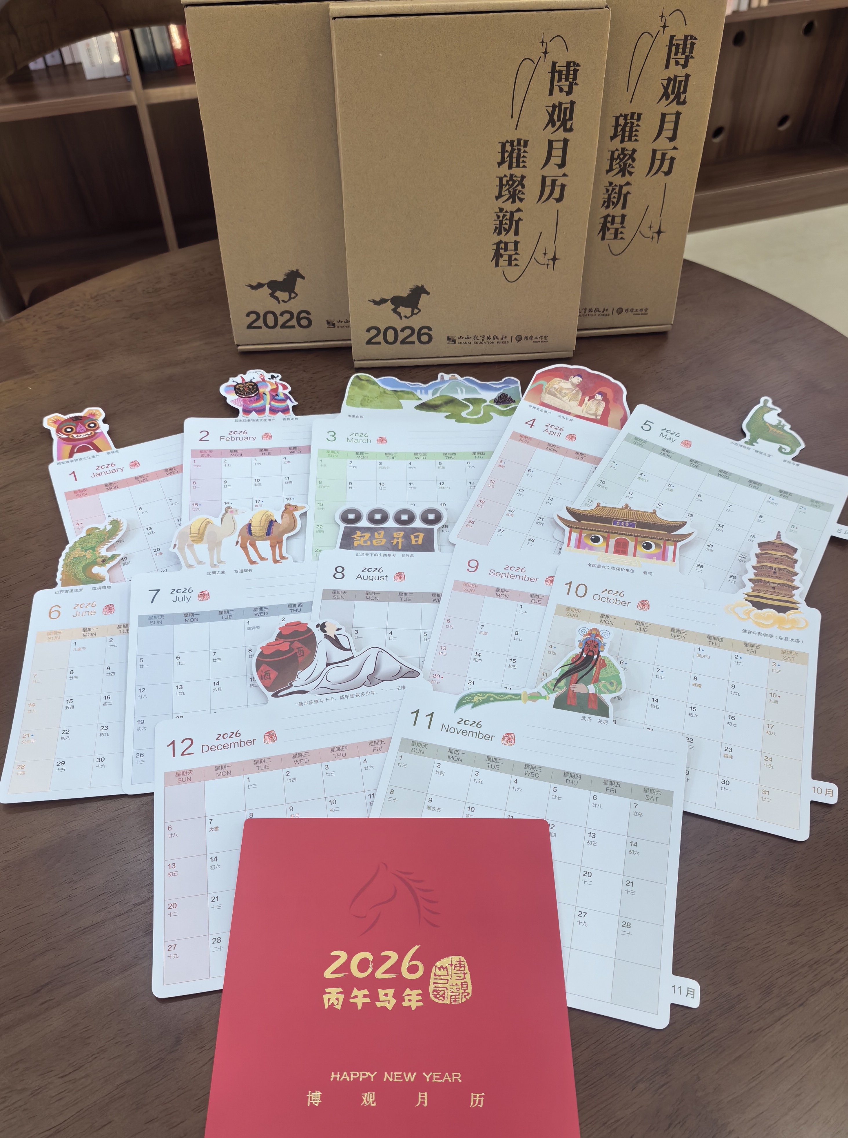 工作室推出的《2026博观月历》,融入山西文化元素,实实在在的好看+实用: